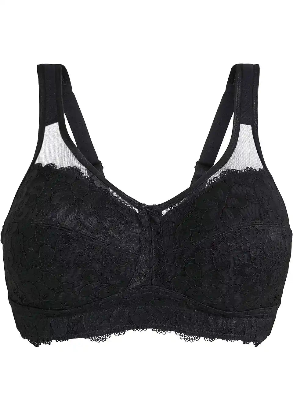 Prefinjen razbremenilni nedrček obljublja olajšanje za hrbet predvsem ženskam z večjim oprsjem. Kroji ter oblazinjene naramnice in nastavljiva zapirala so zasnovana za optimalno oporo in varen občutek. Lep dizajn iz čipke in mrežnih vložkov povzdigne visoko udobje.