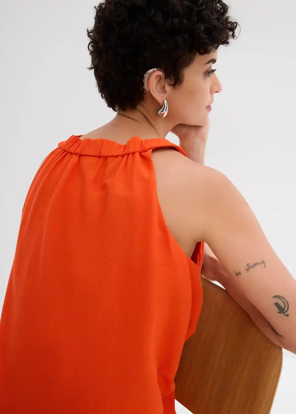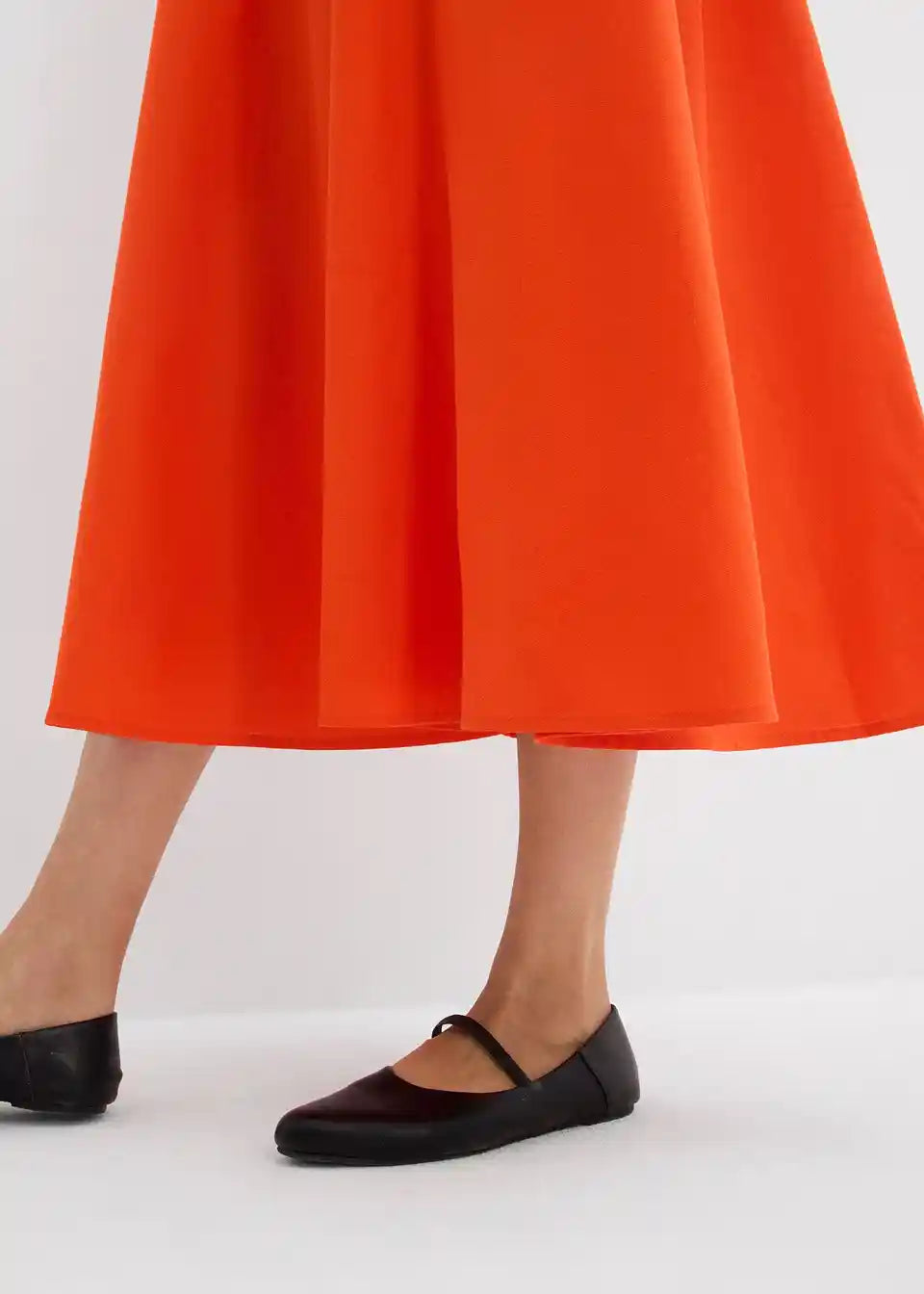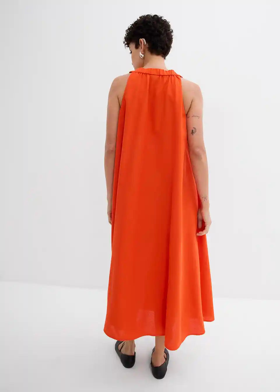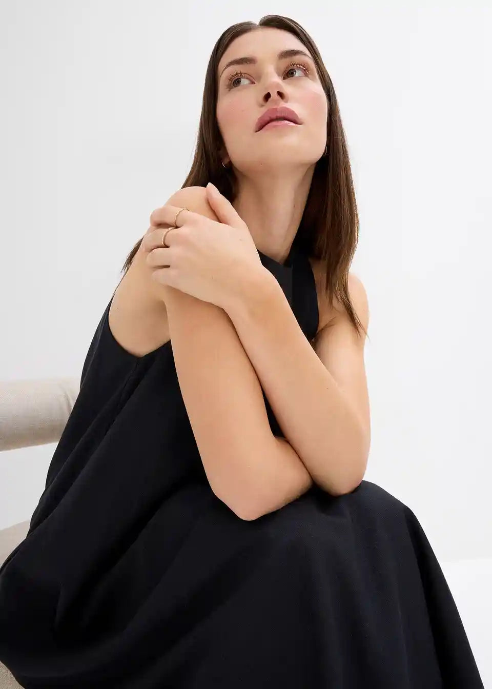 Midi obleka z ohlapnim krojem, elastičnim izrezom in stranskimi všitimi žepi