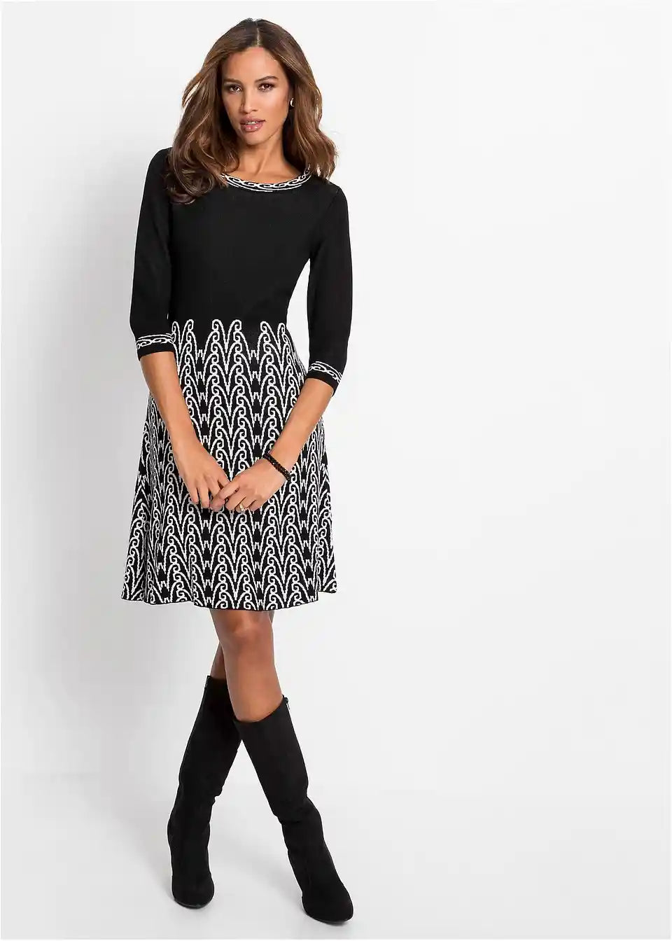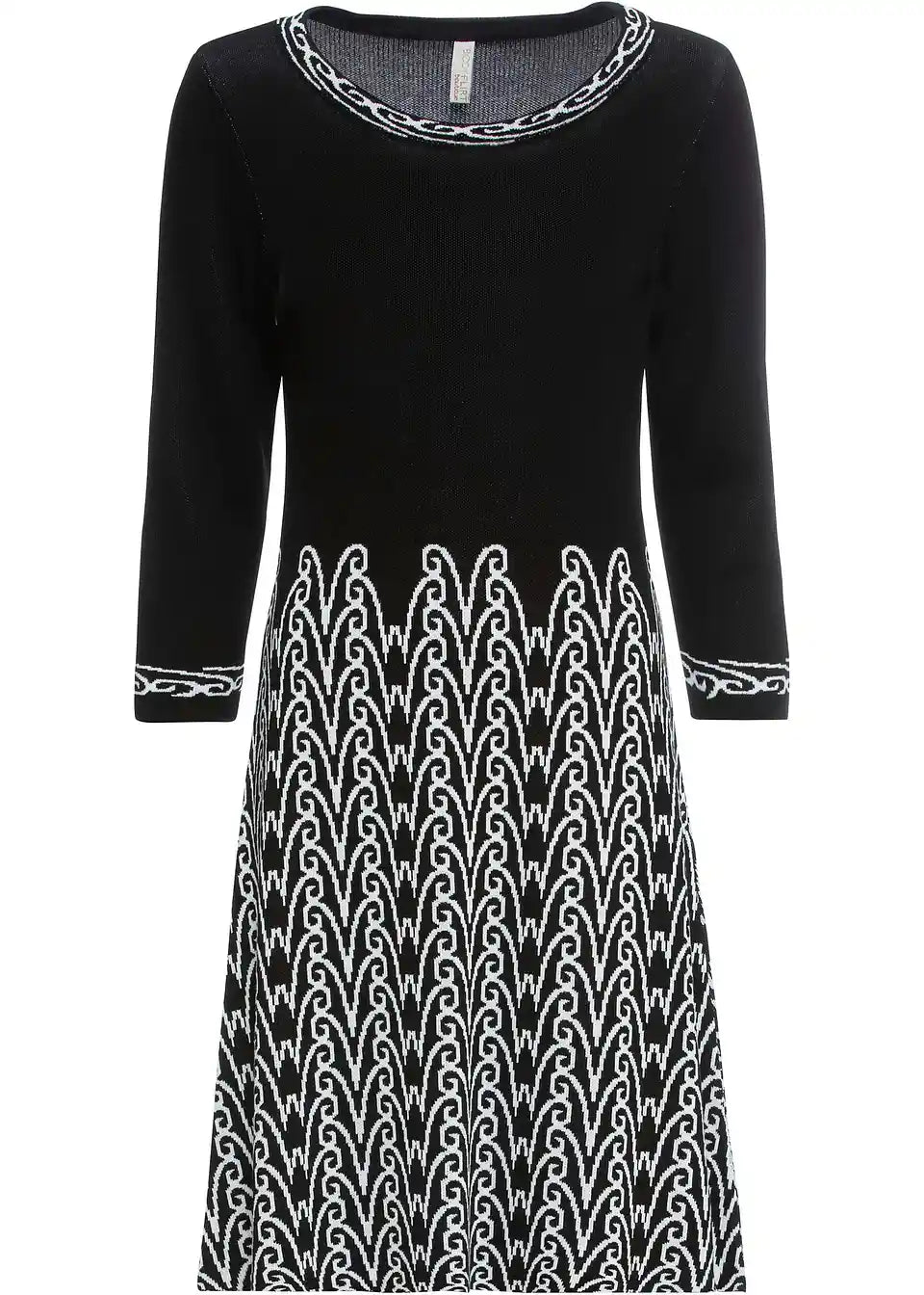 Pletena obleka z razširjenim spodnjim robom in žakarjem