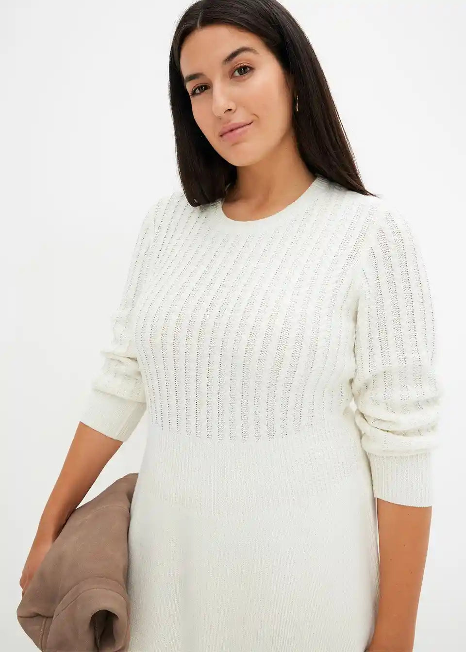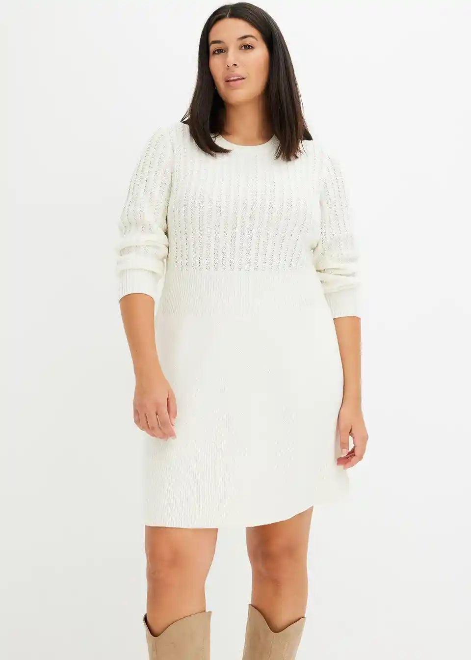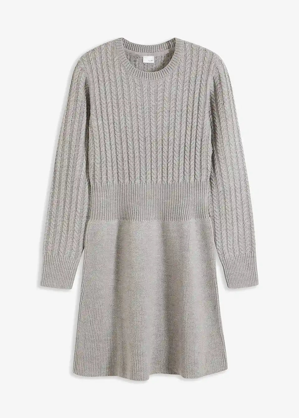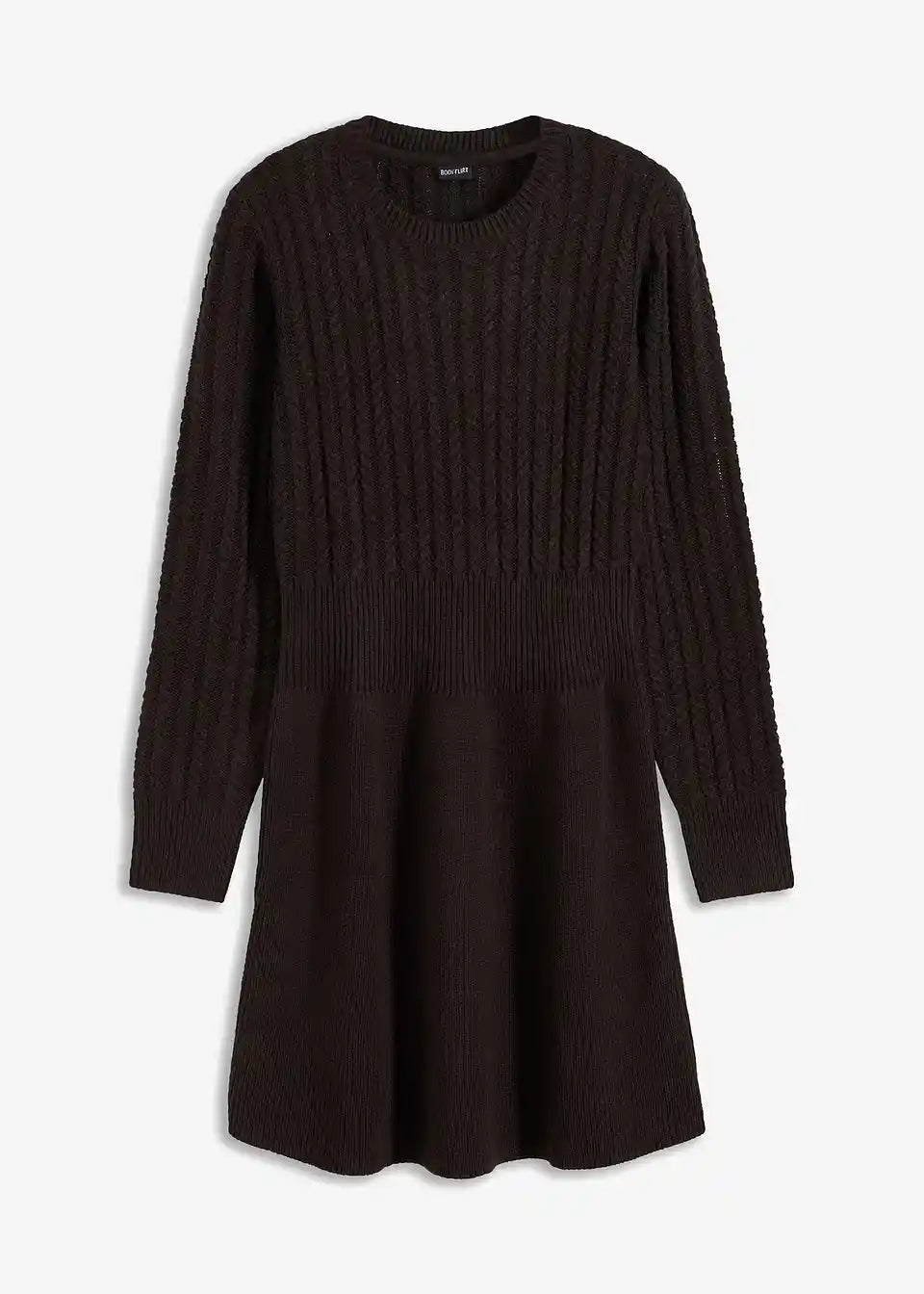 Pletena obleka z razširjenim spodnjim robom s kitastim vzorcem