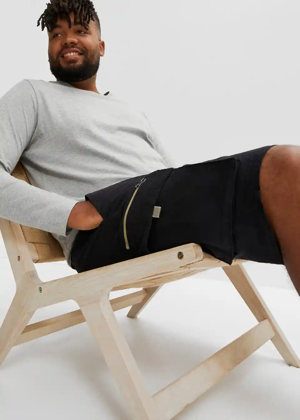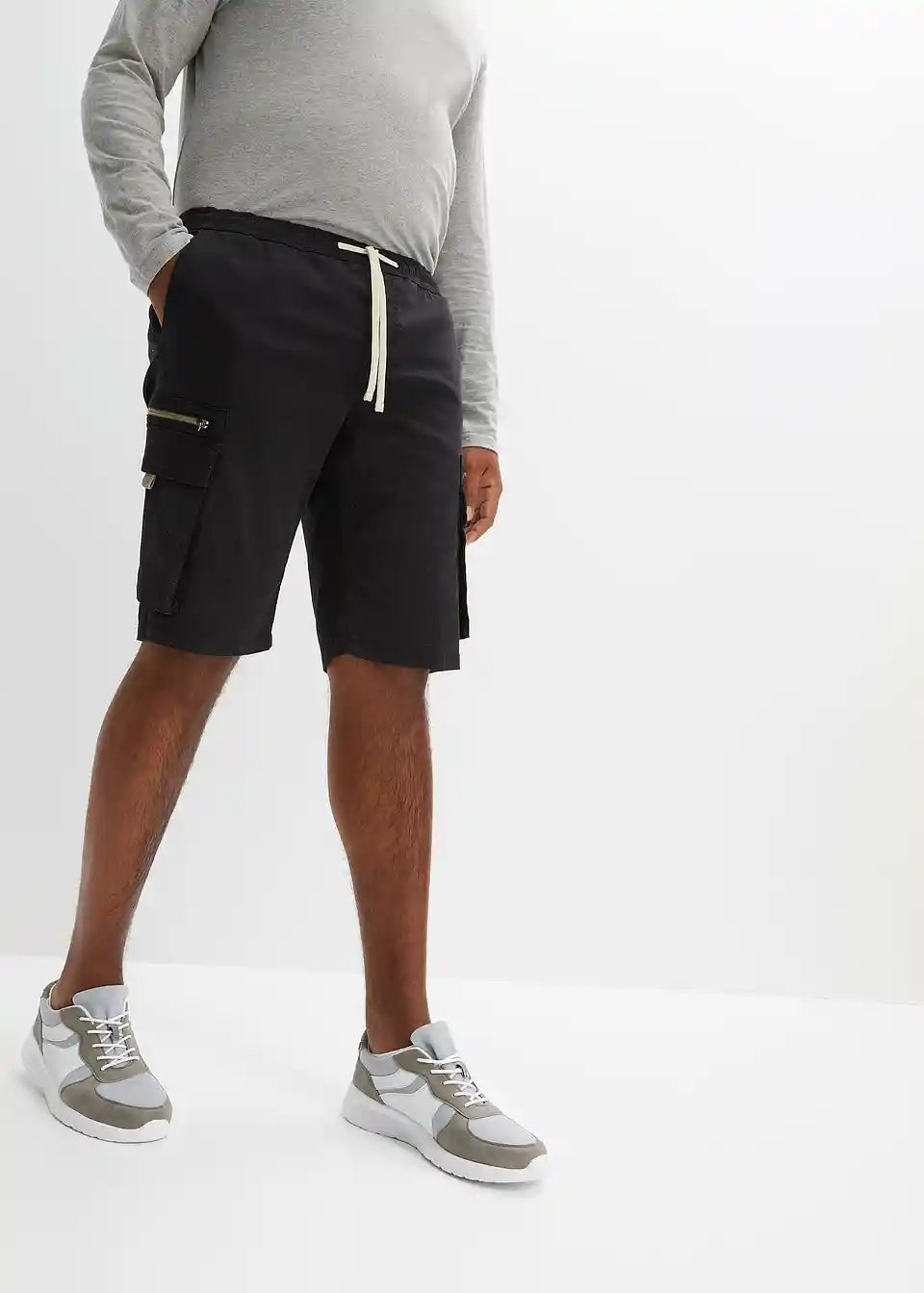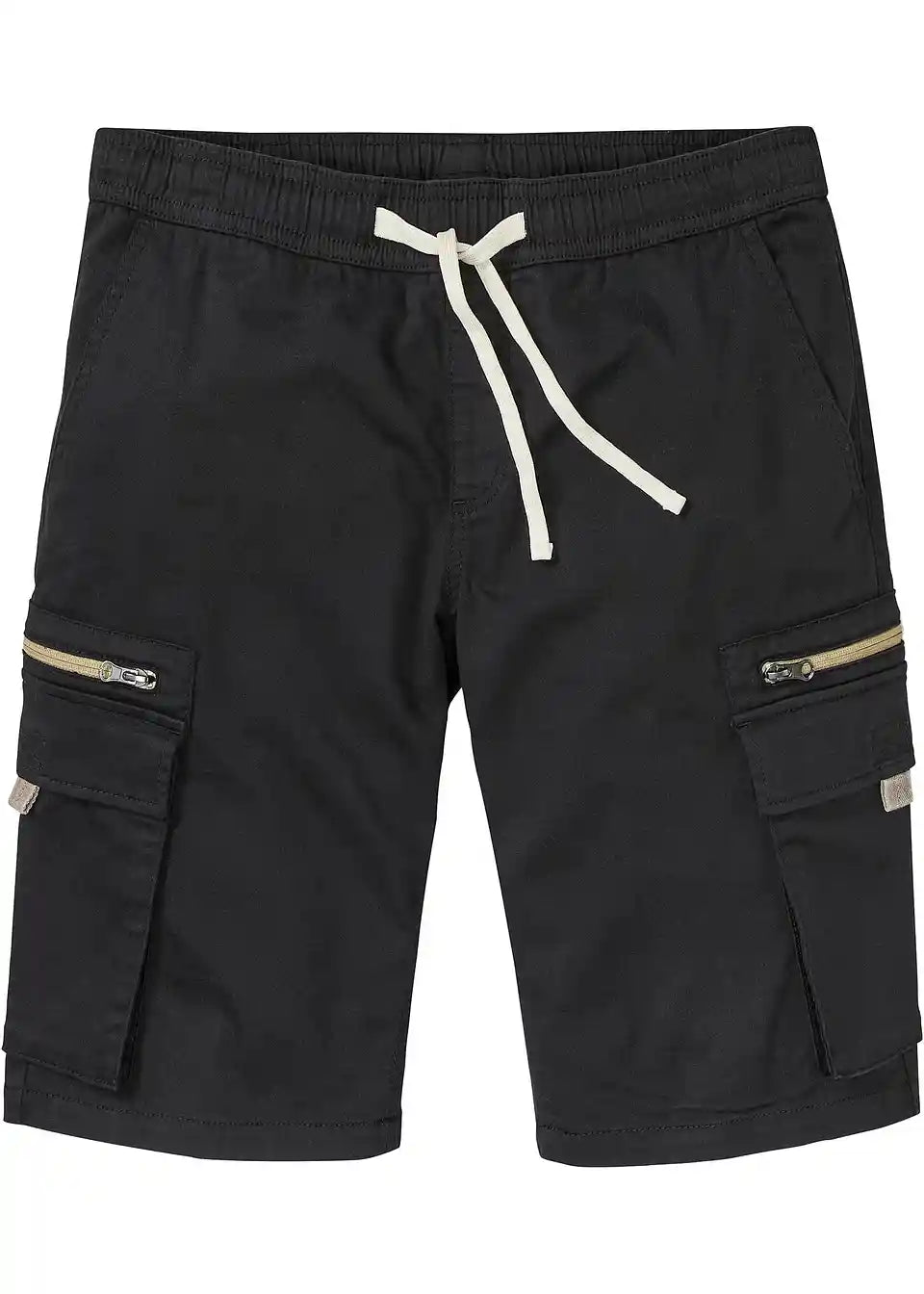 Stretch bermuda hlače brez zapenjanja s cargo žepi v klasičnem kroju