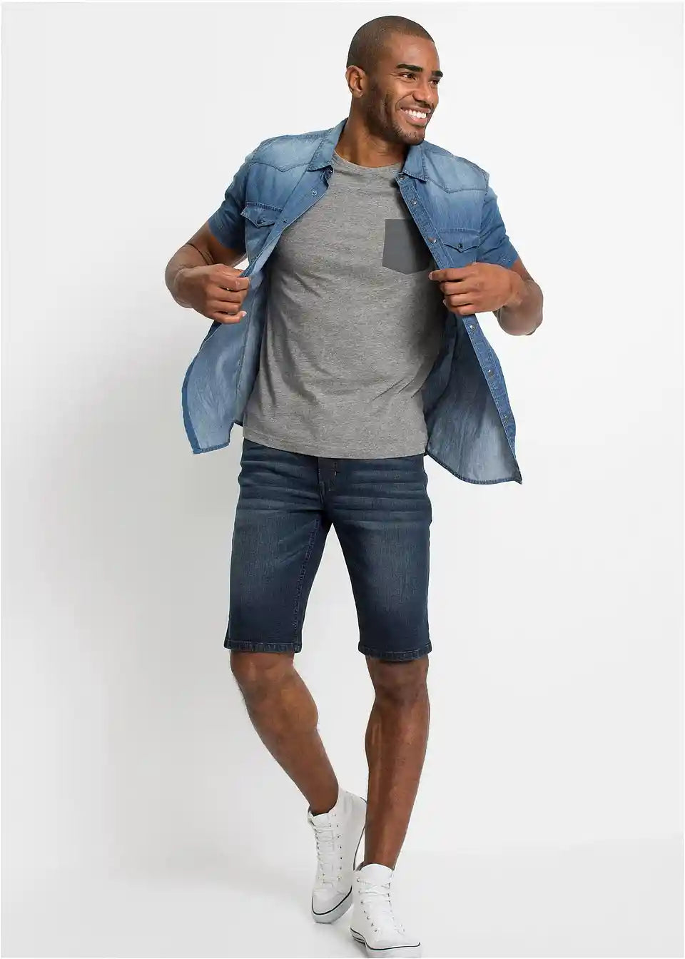 Raztegljive bermude iz jeansa Slim Fit z rahlo spranim videzom in majhnim žepom z zadrgo.