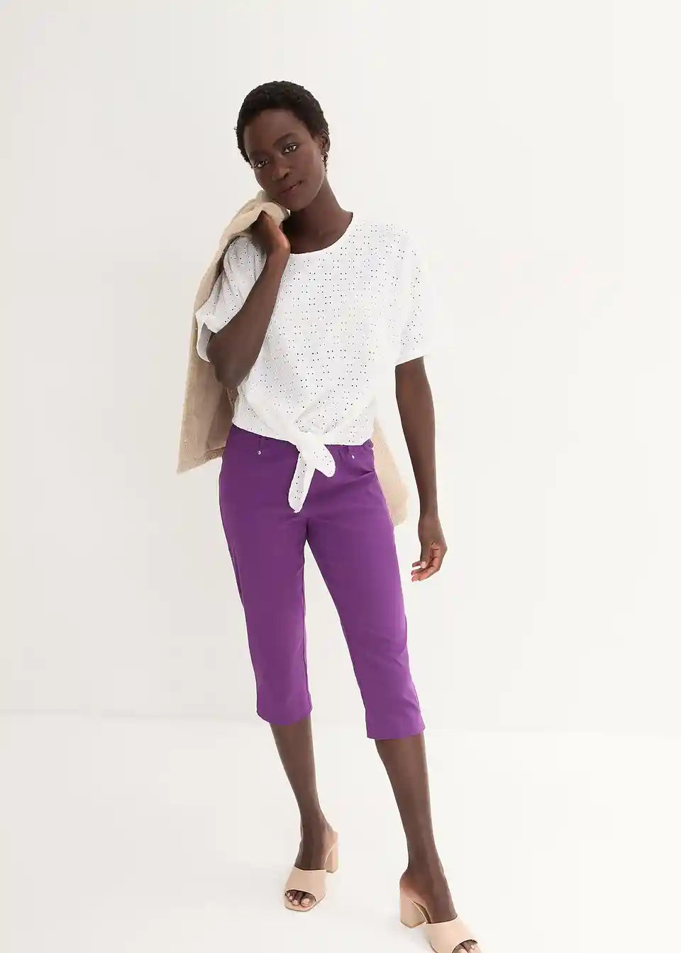 Stretch capri hlače brez zapenjanja