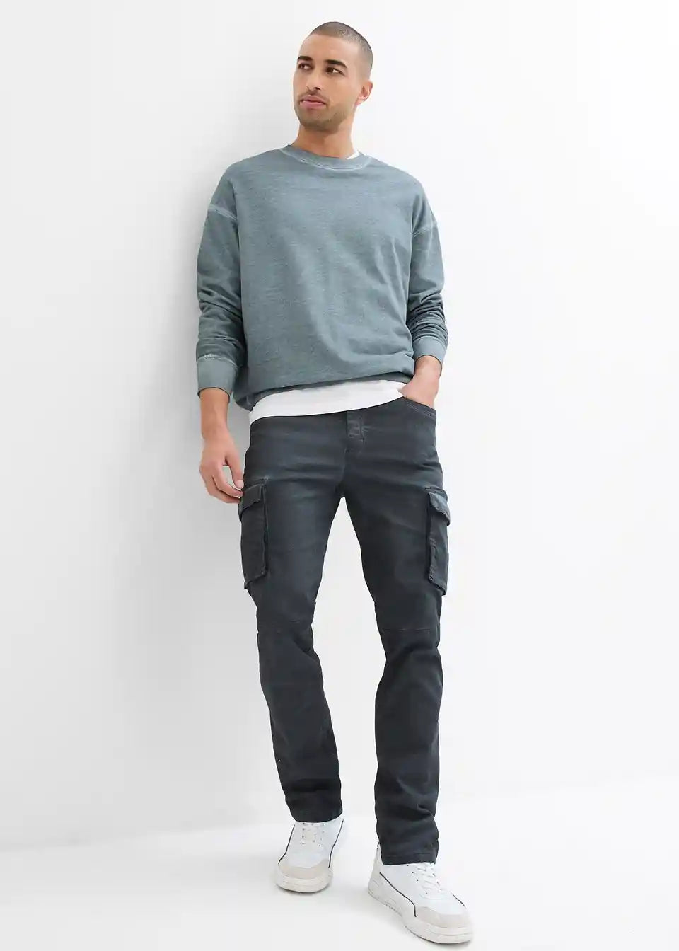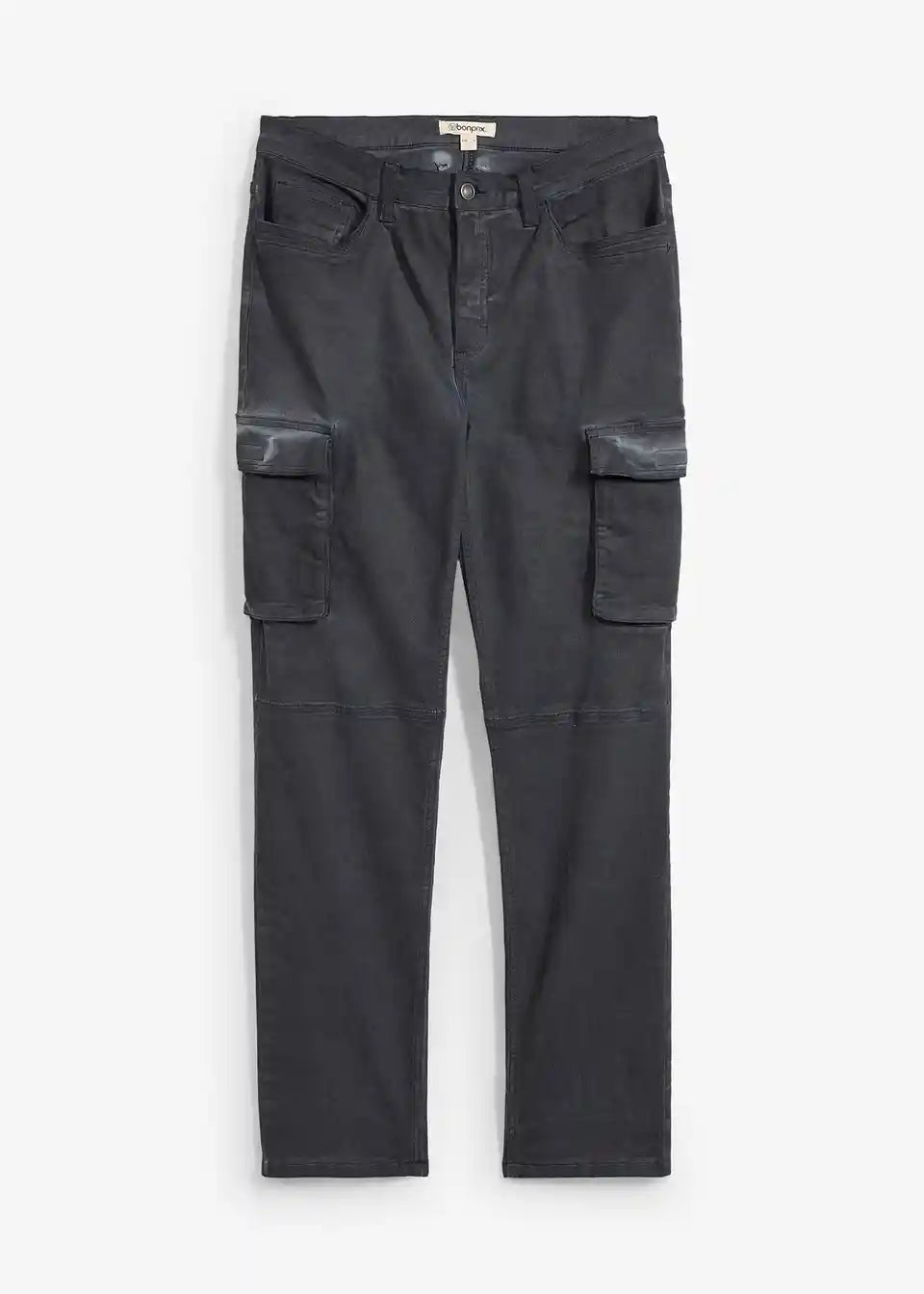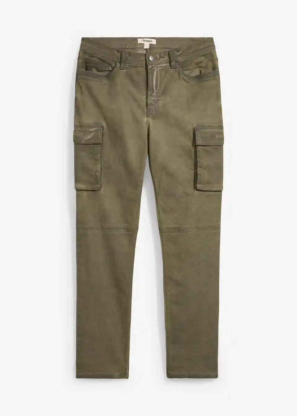 Stretch hlače s cargo žepi v spranem videzu v ravnem kroju