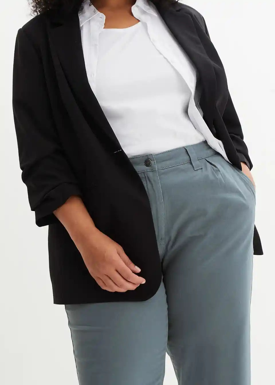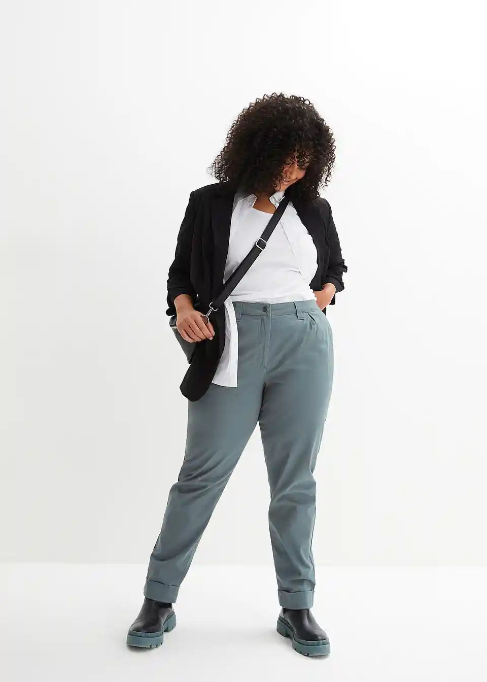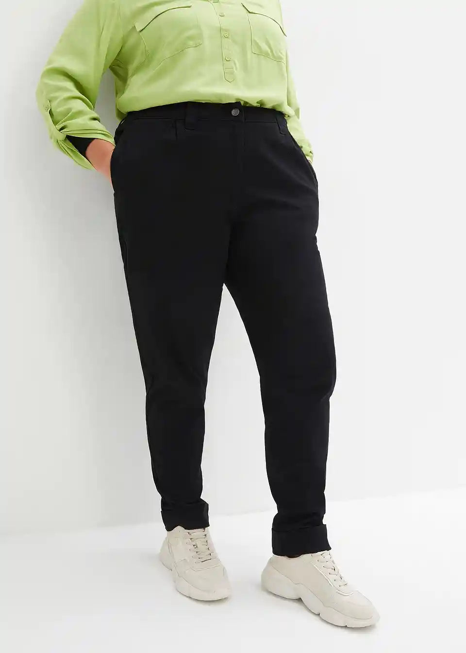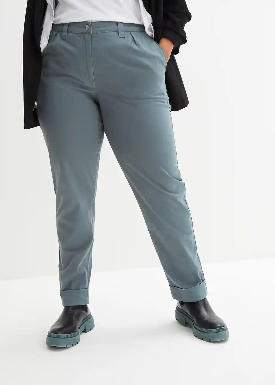 Stretch chino hlače z udobnim pasom in zavihanim spodnjim robom