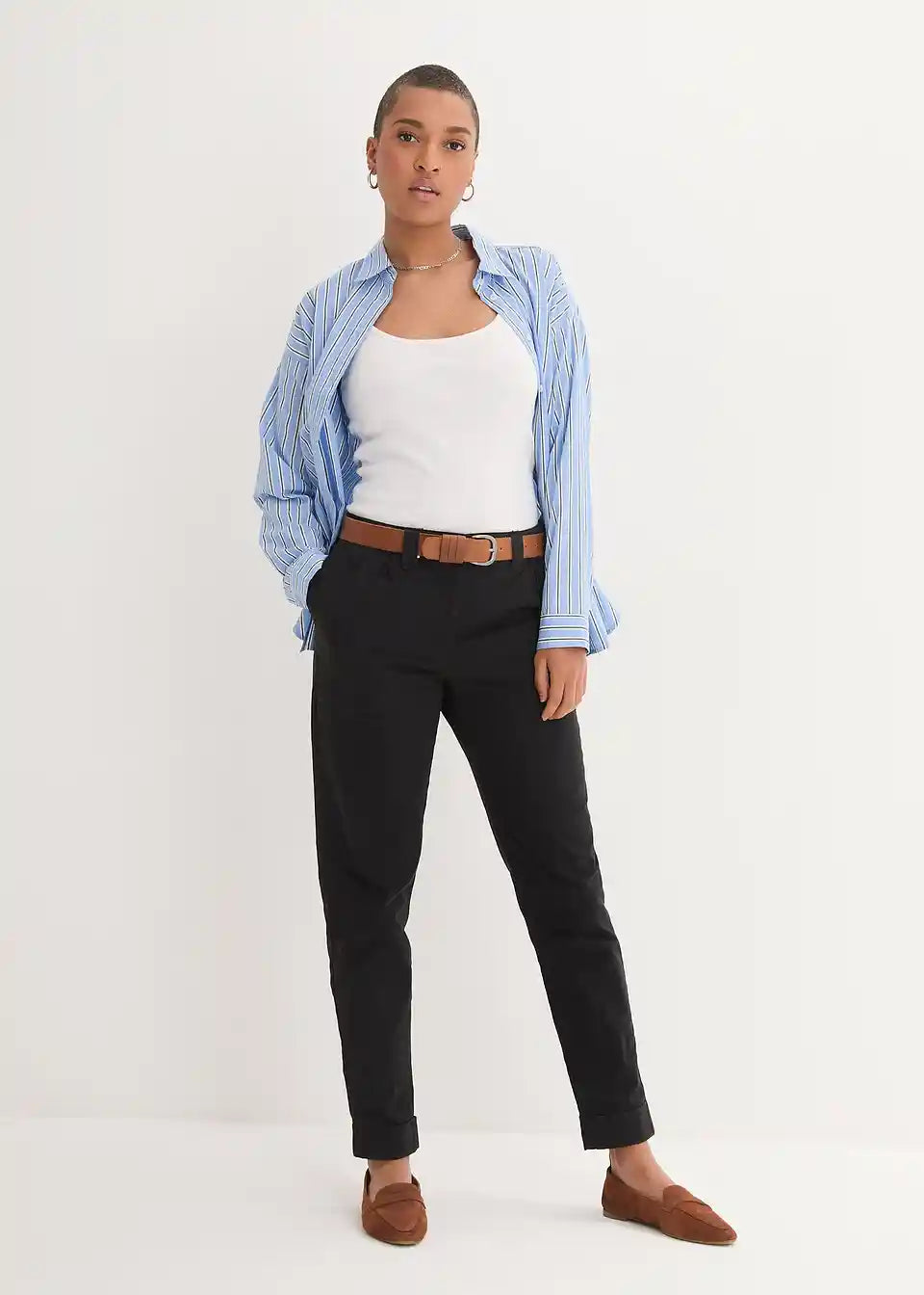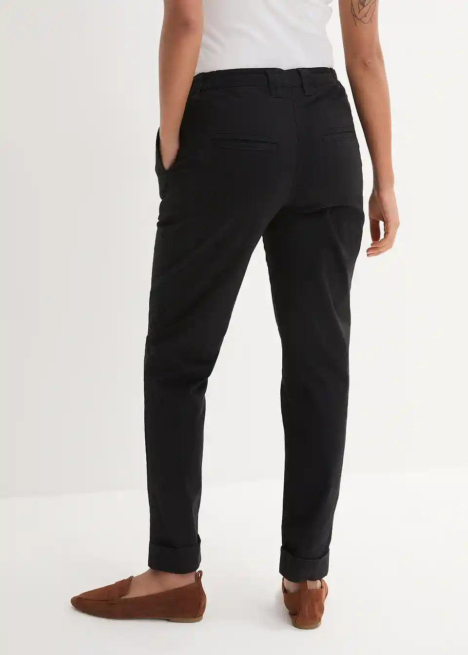 Stretch chino hlače z udobnim pasom in zavihanim spodnjim robom