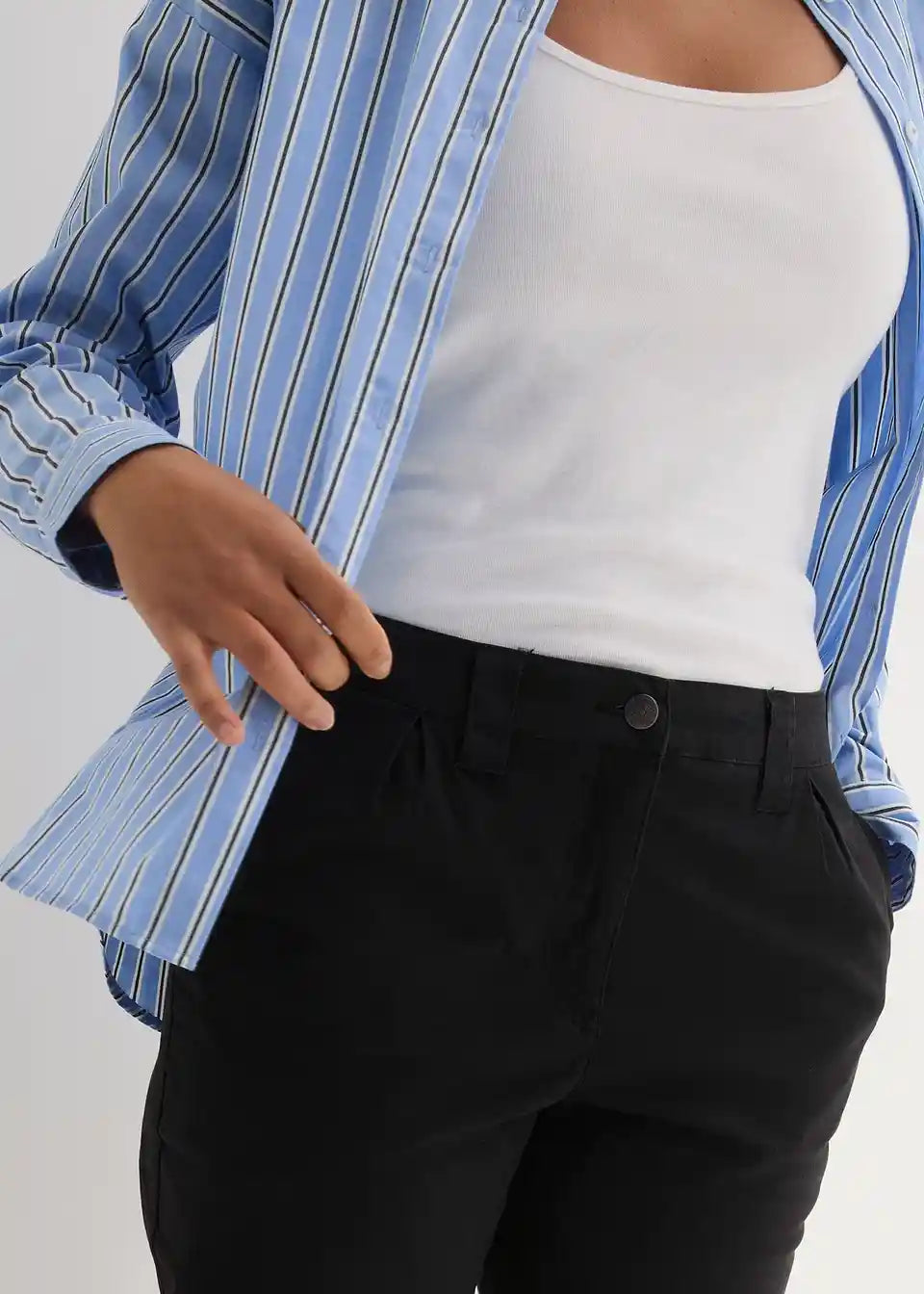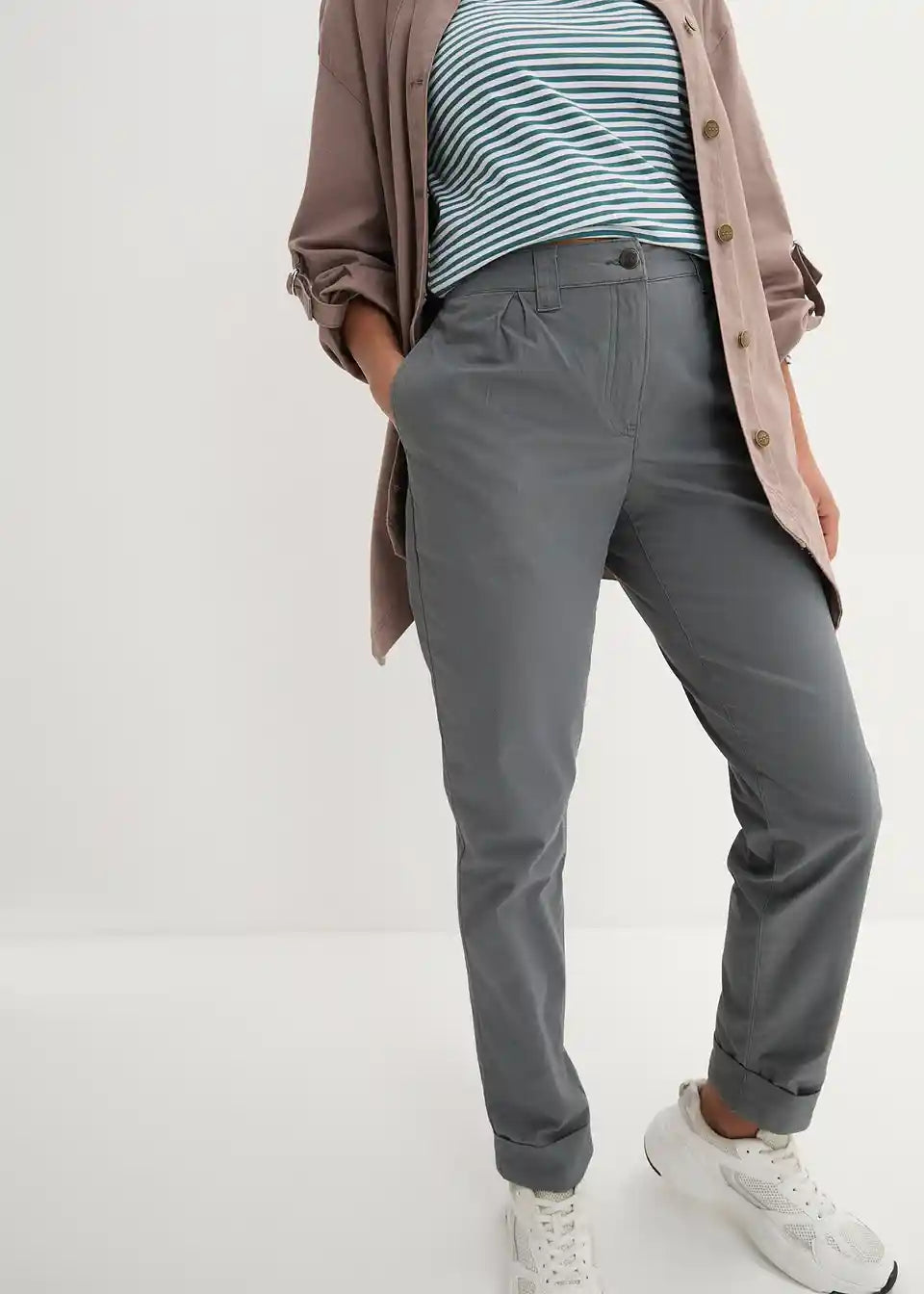 Trendovske raztegljive Chino hlače z žepi in udobnim pasom