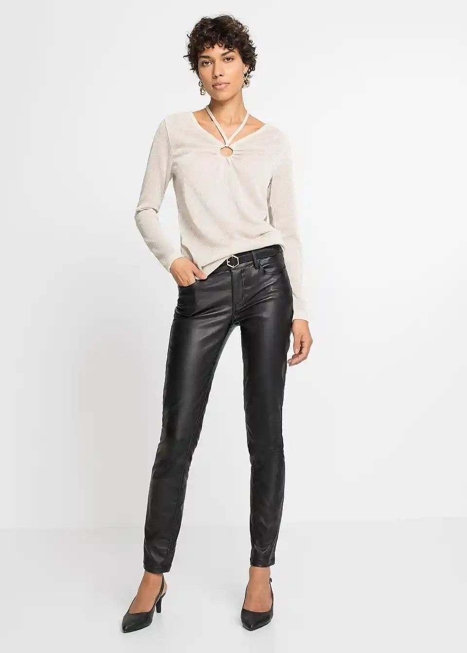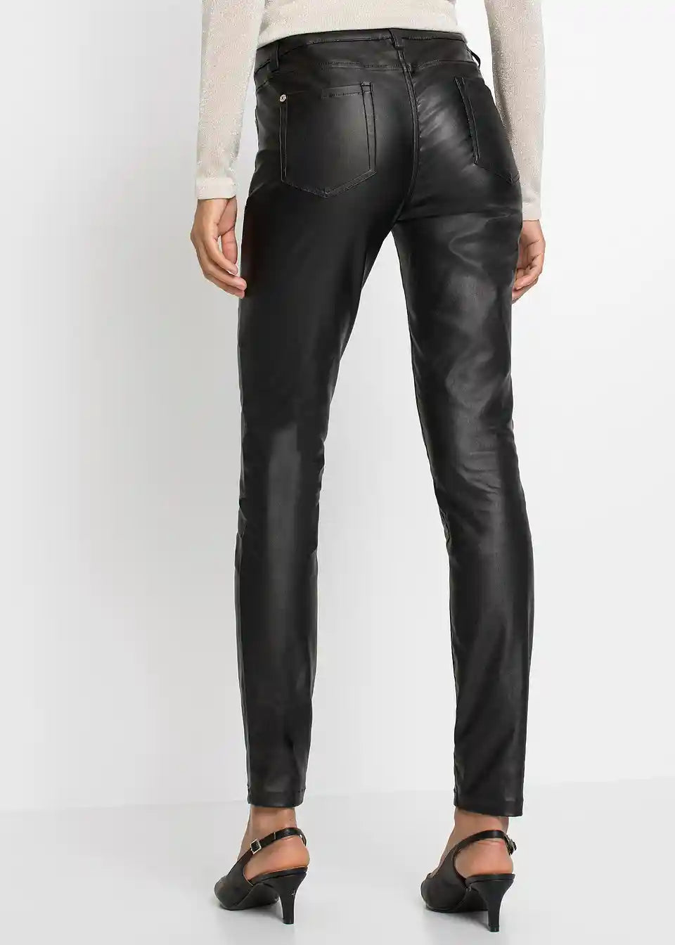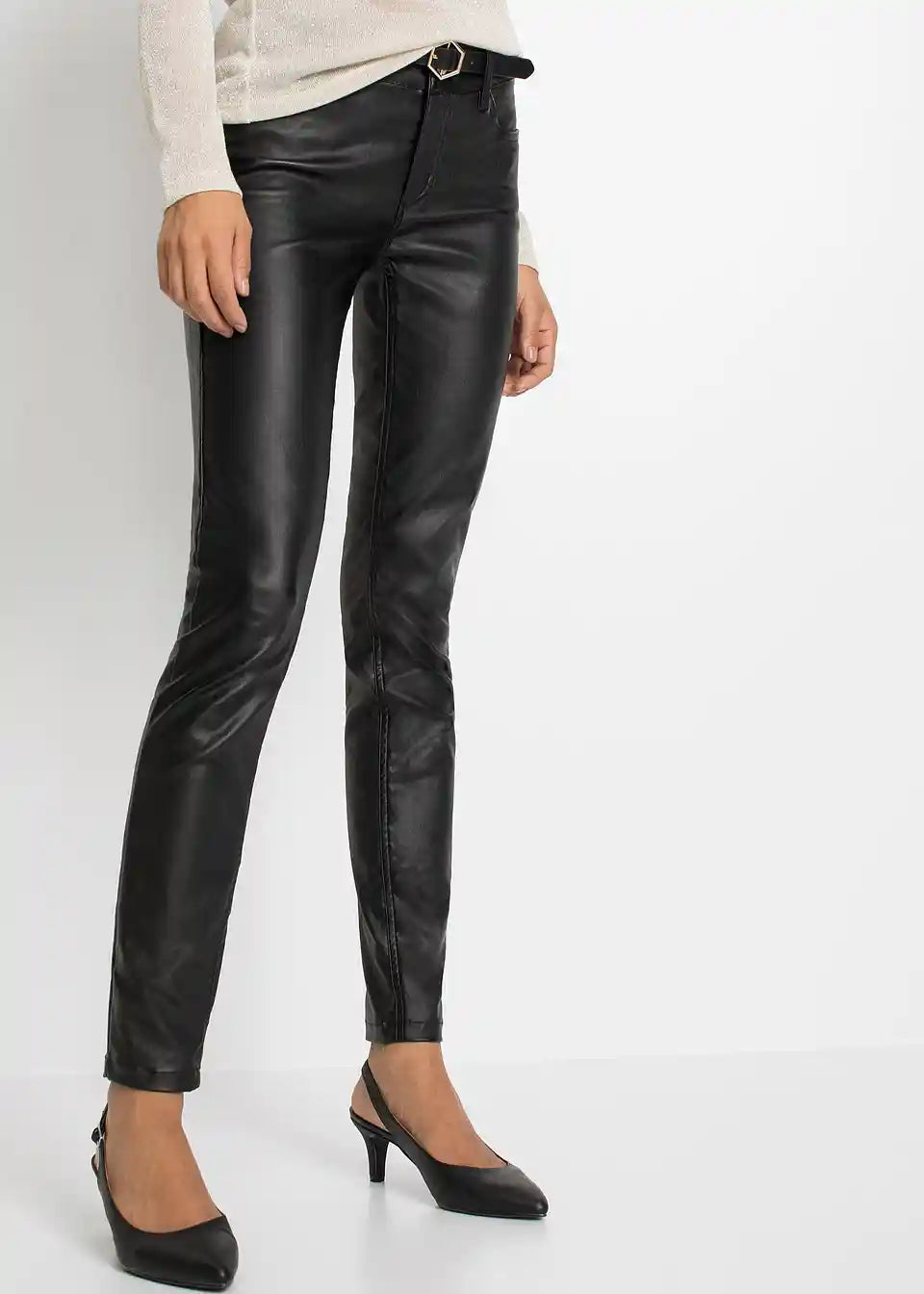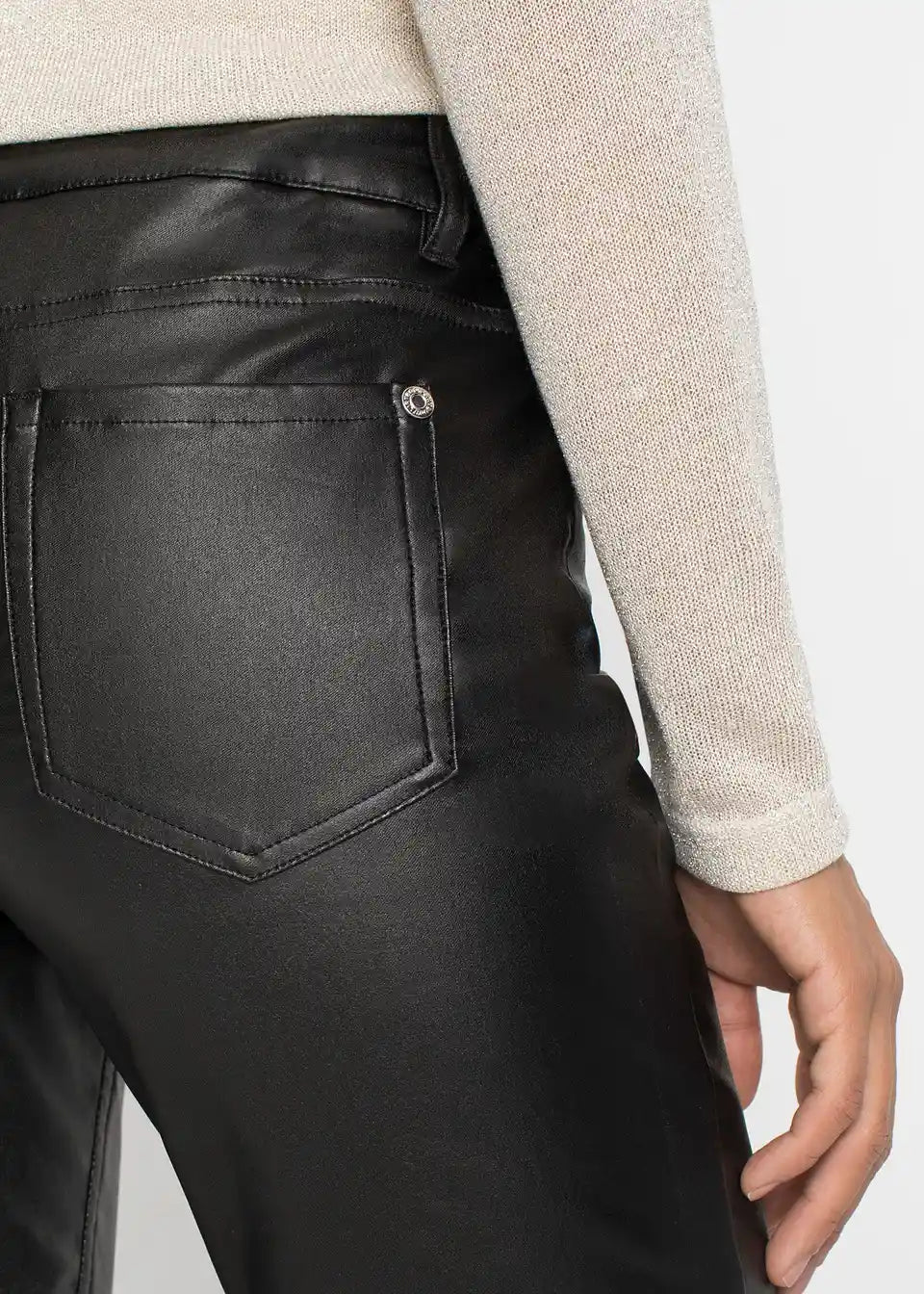 Modne raztegljive hlače znamke BODYFLIRT. Hlače imajo diskretne stranske žepke. Dolžina notranjega šiva pri št. 38 približno 77,5 cm.