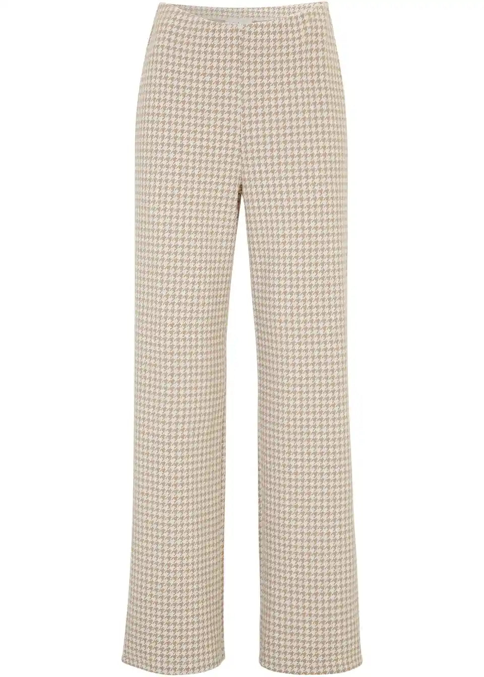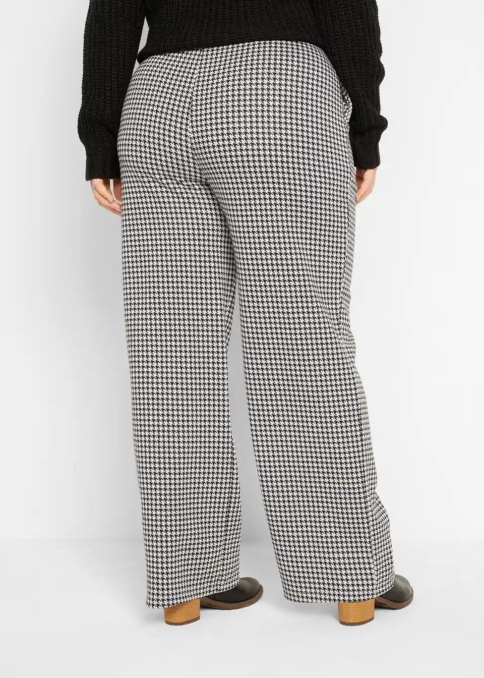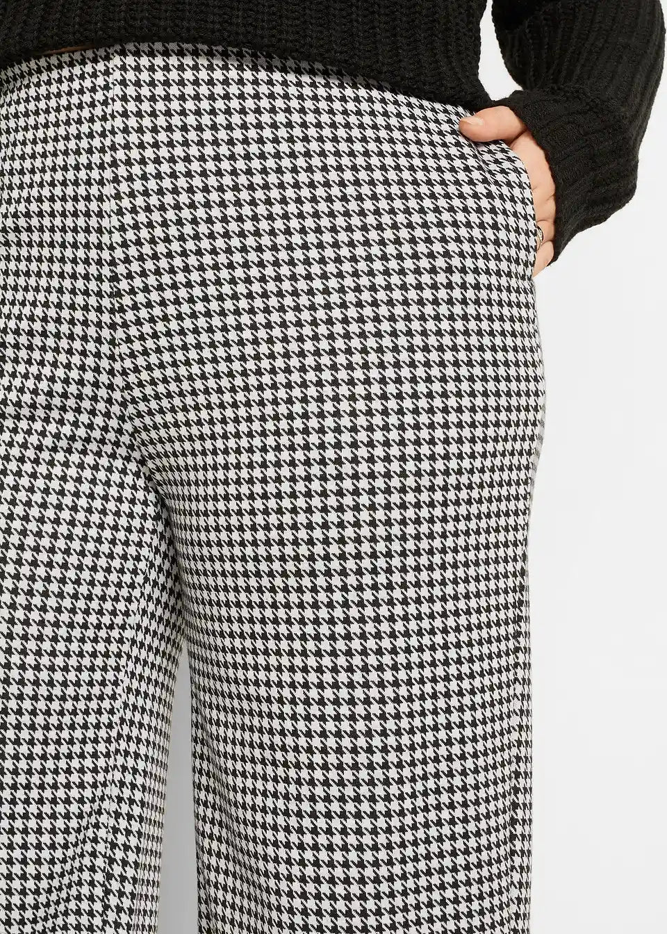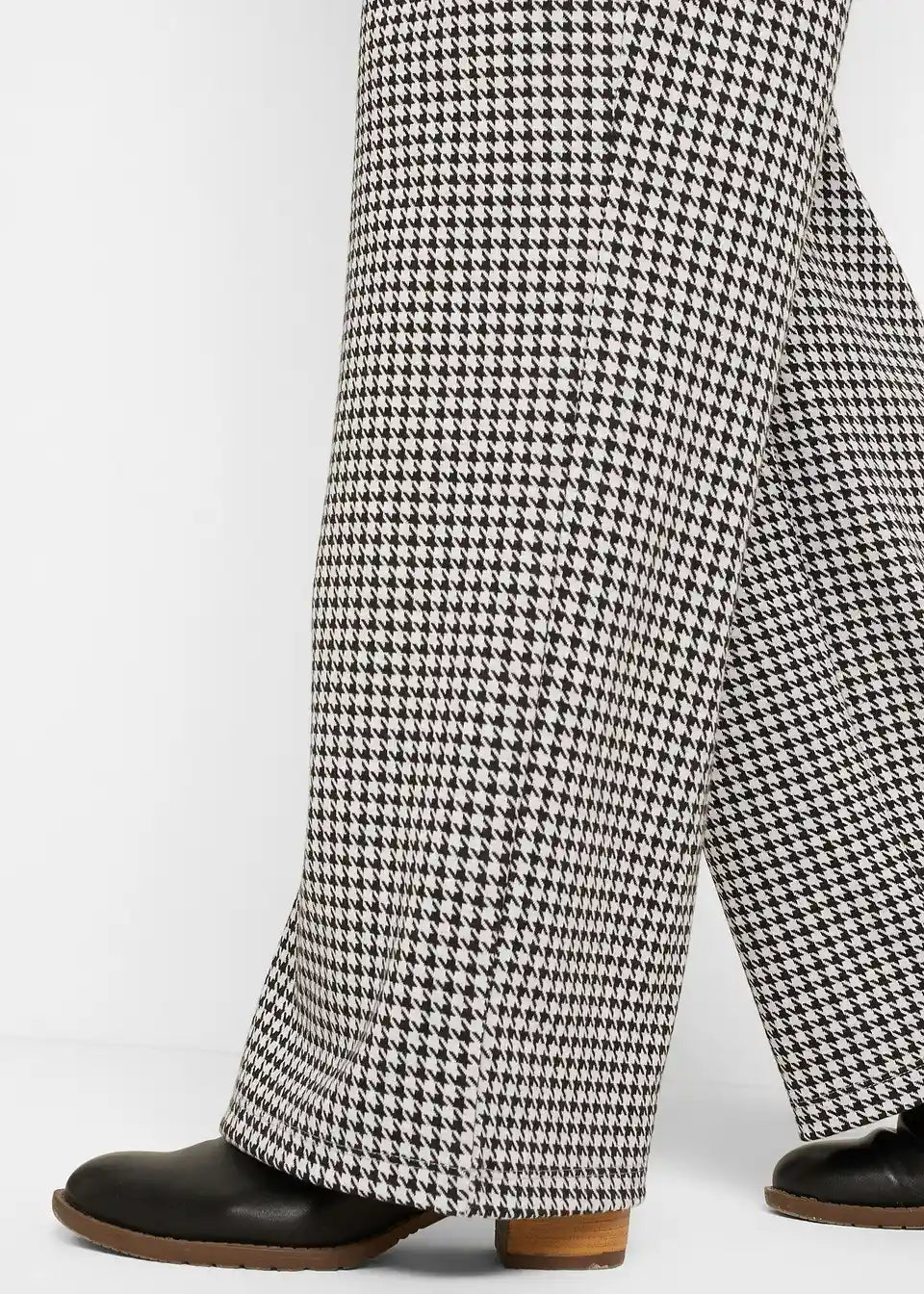 Stretch hlače s pepitastim vzorcem s širokimi hlačnicami