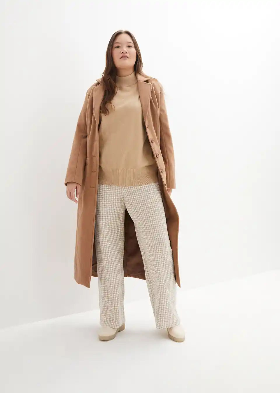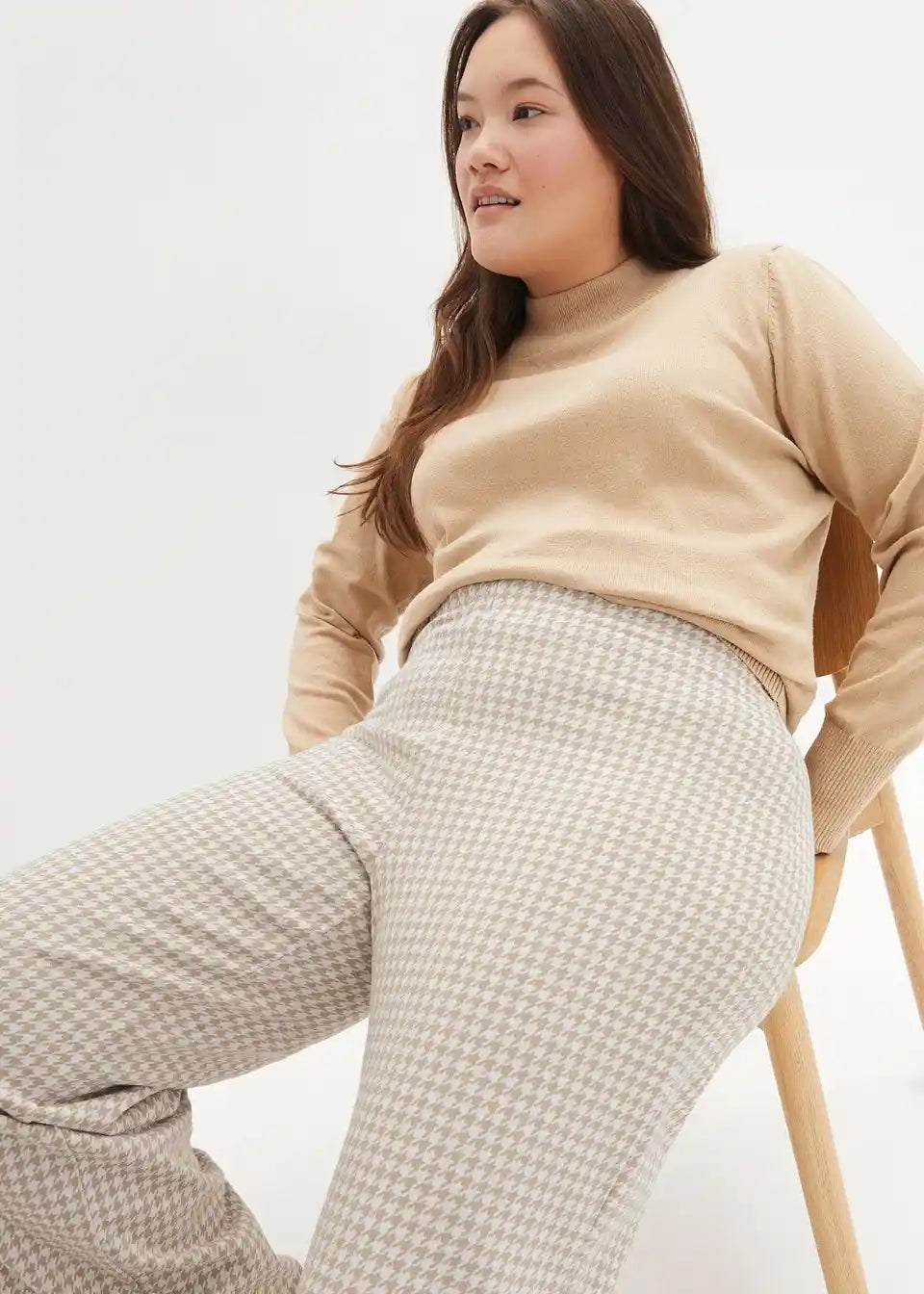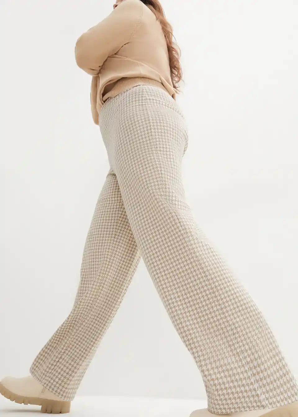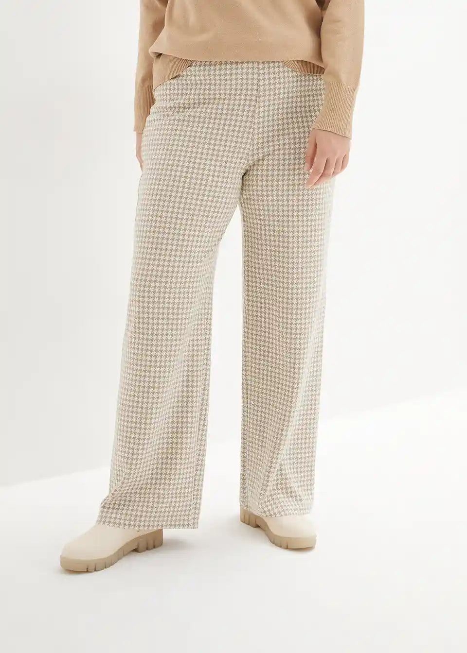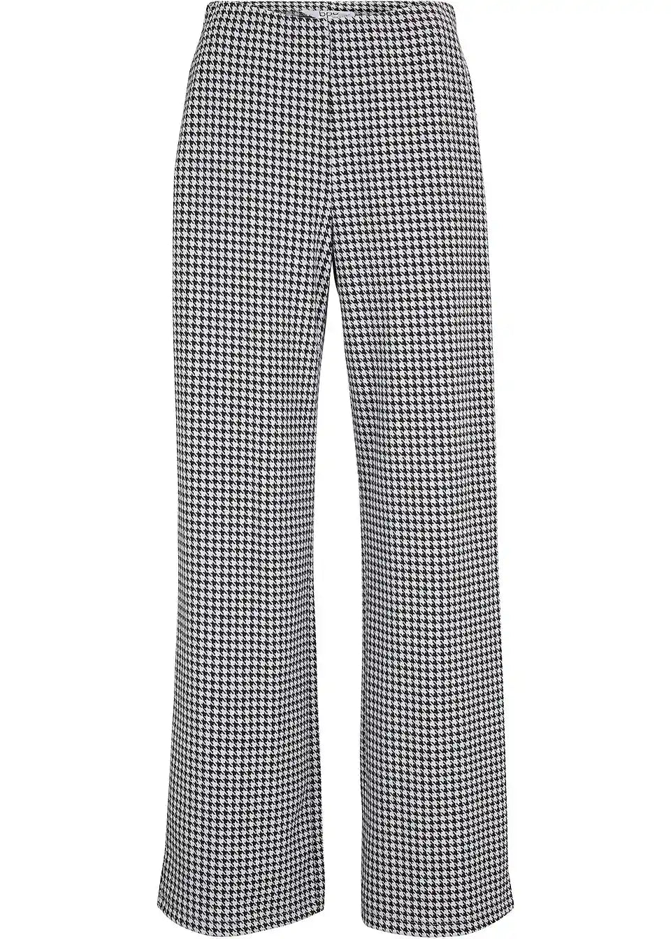 Stretch hlače s pepitastim vzorcem s širokimi hlačnicami