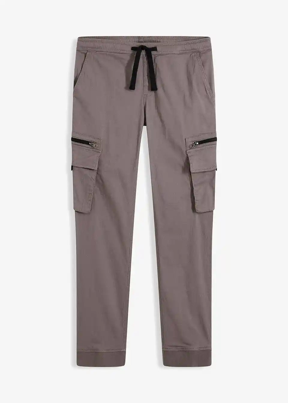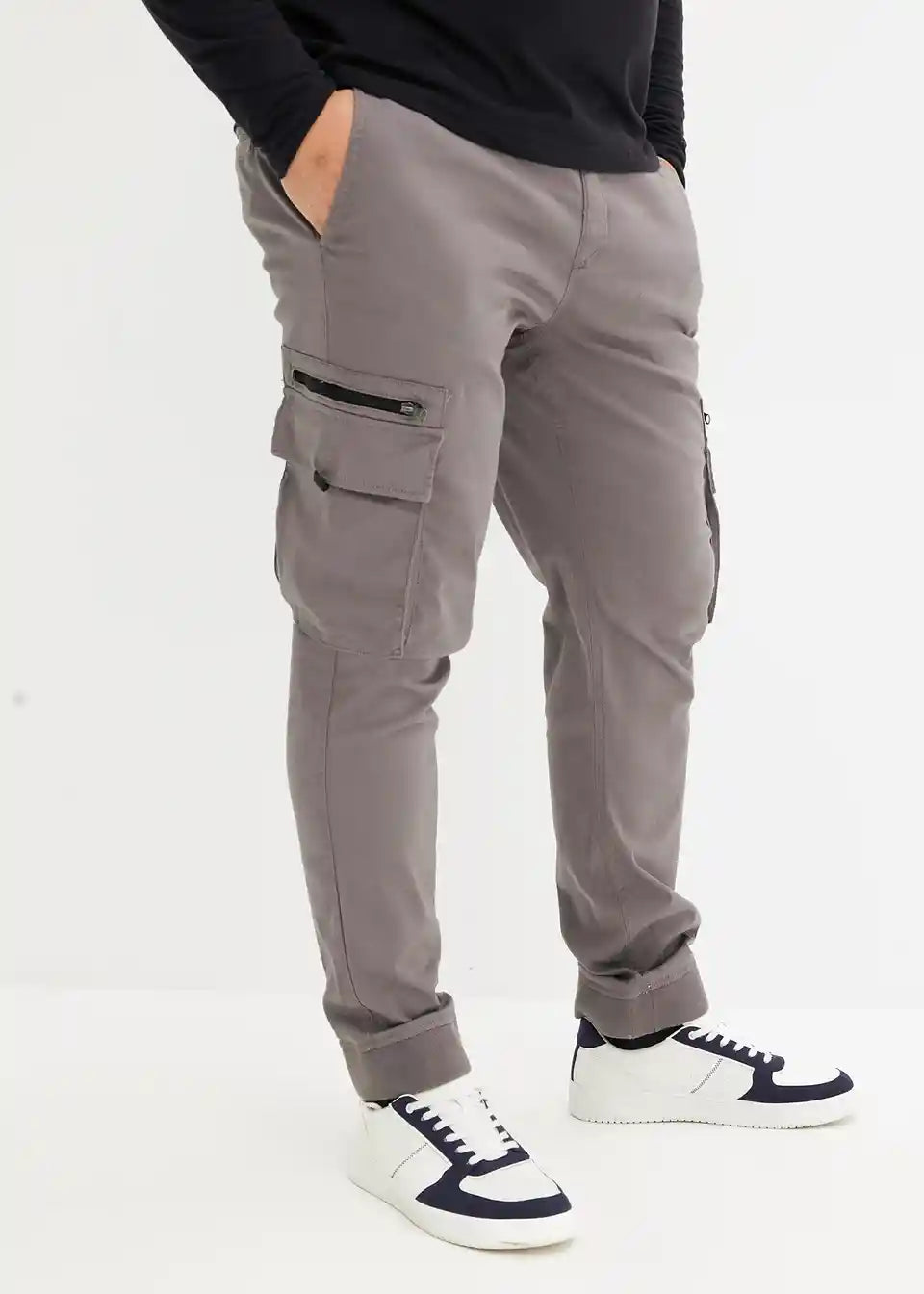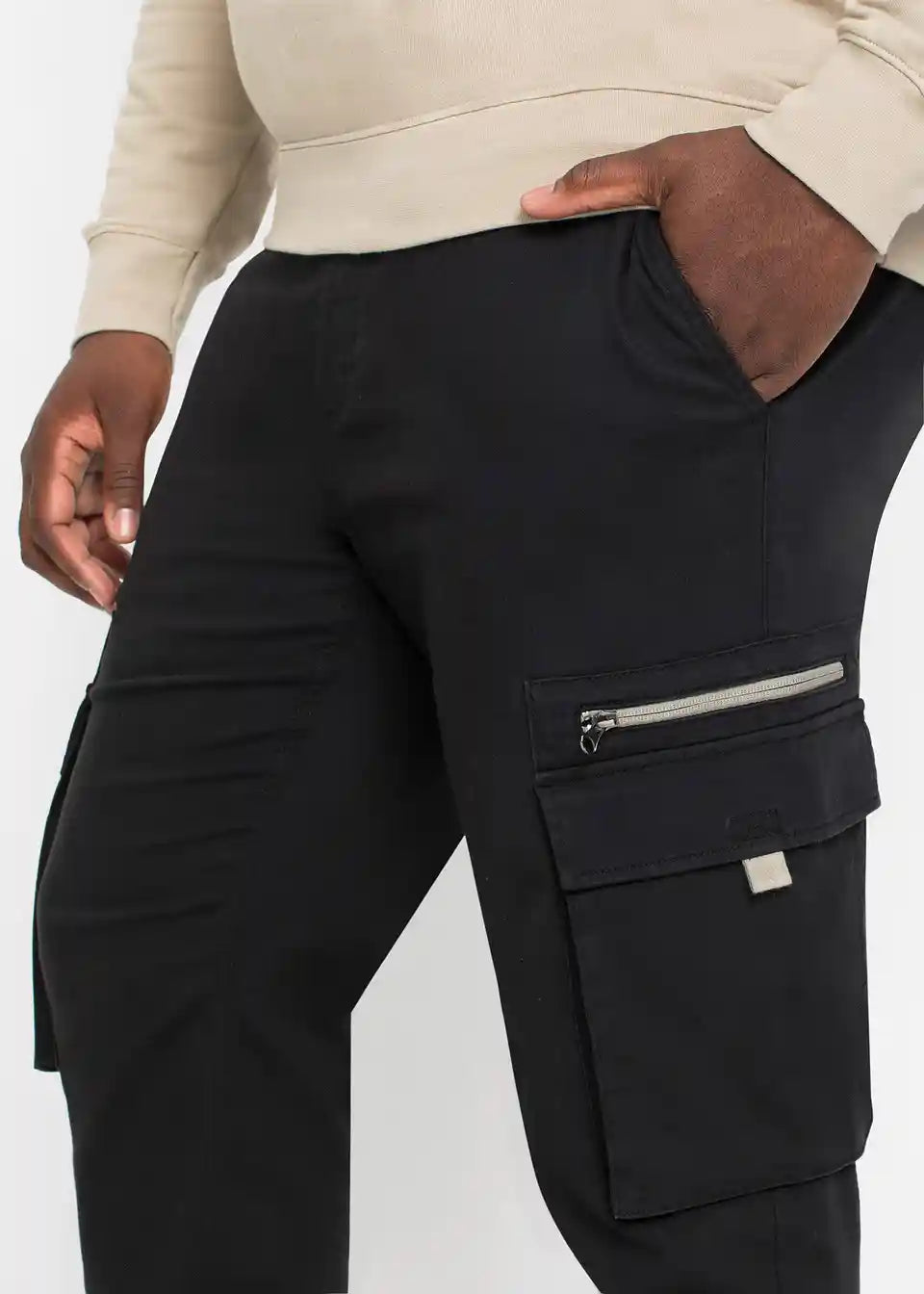 Stretch hlače brez zapenjanja s cargo žepi v klasičnem kroju