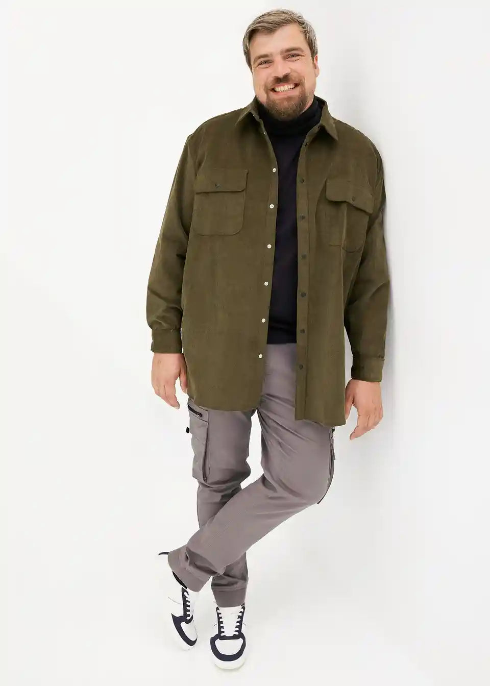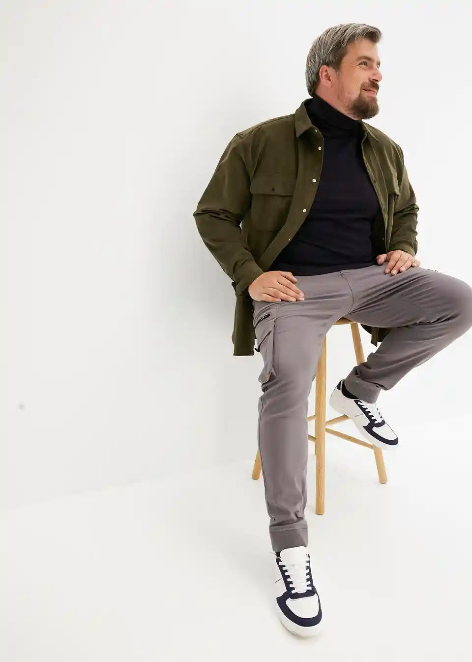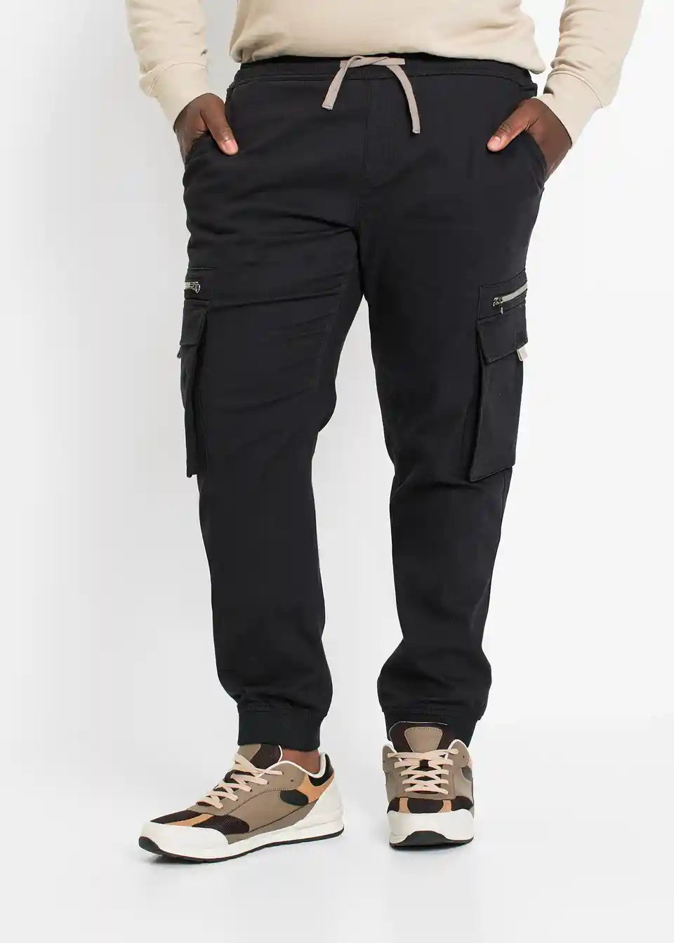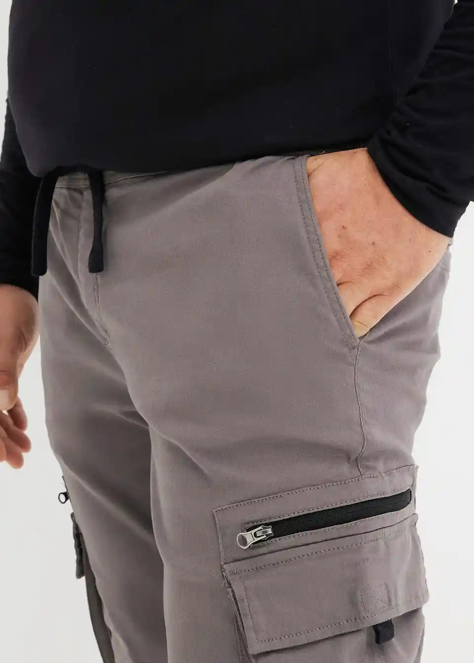 Stretch hlače brez zapenjanja s cargo žepi v klasičnem kroju