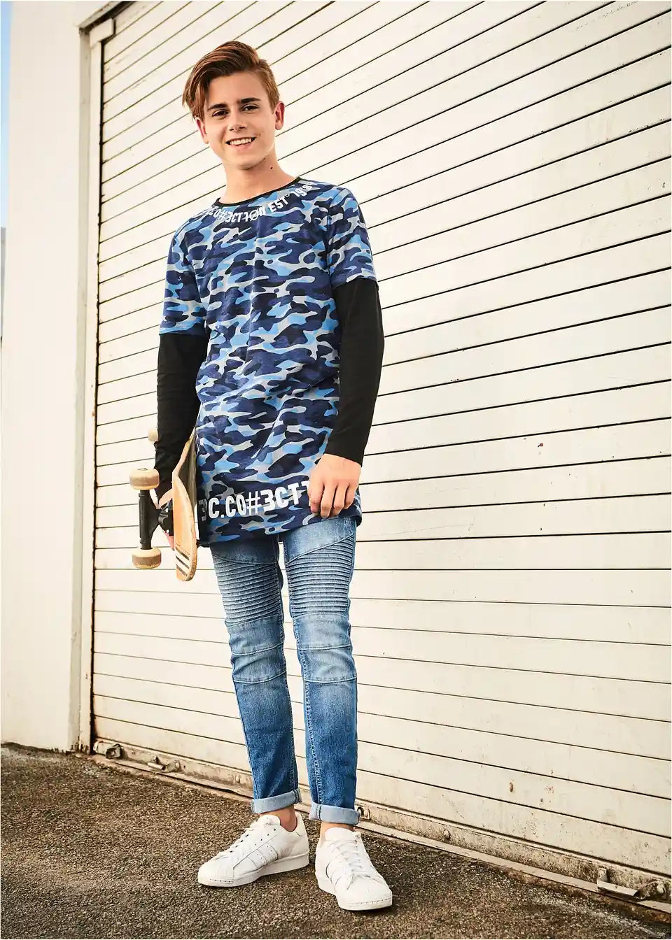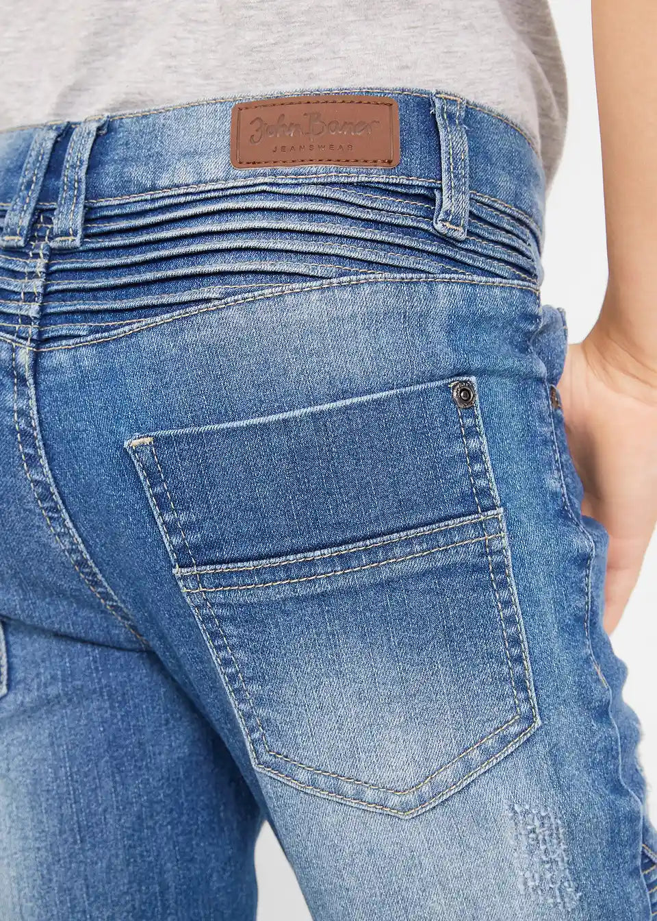 Naj gre za prosti čas ali šolo: Te raztegljive kavbojke Skinny Fit v 5-žepnem slogu od John Baner prepričajo s svojim raztegljivim materialom in sproščenim videzom. Šivi na stegnih in deljeni šivi na kolenih naredijo kavbojke za fante pravi privlačen kos. Z moderno obdelavo in majhnimi obrabnimi učinki nastane trendovski videz rabljenega (Used-Look). Pas je mogoče individualno prilagoditi v vseh velikostih.