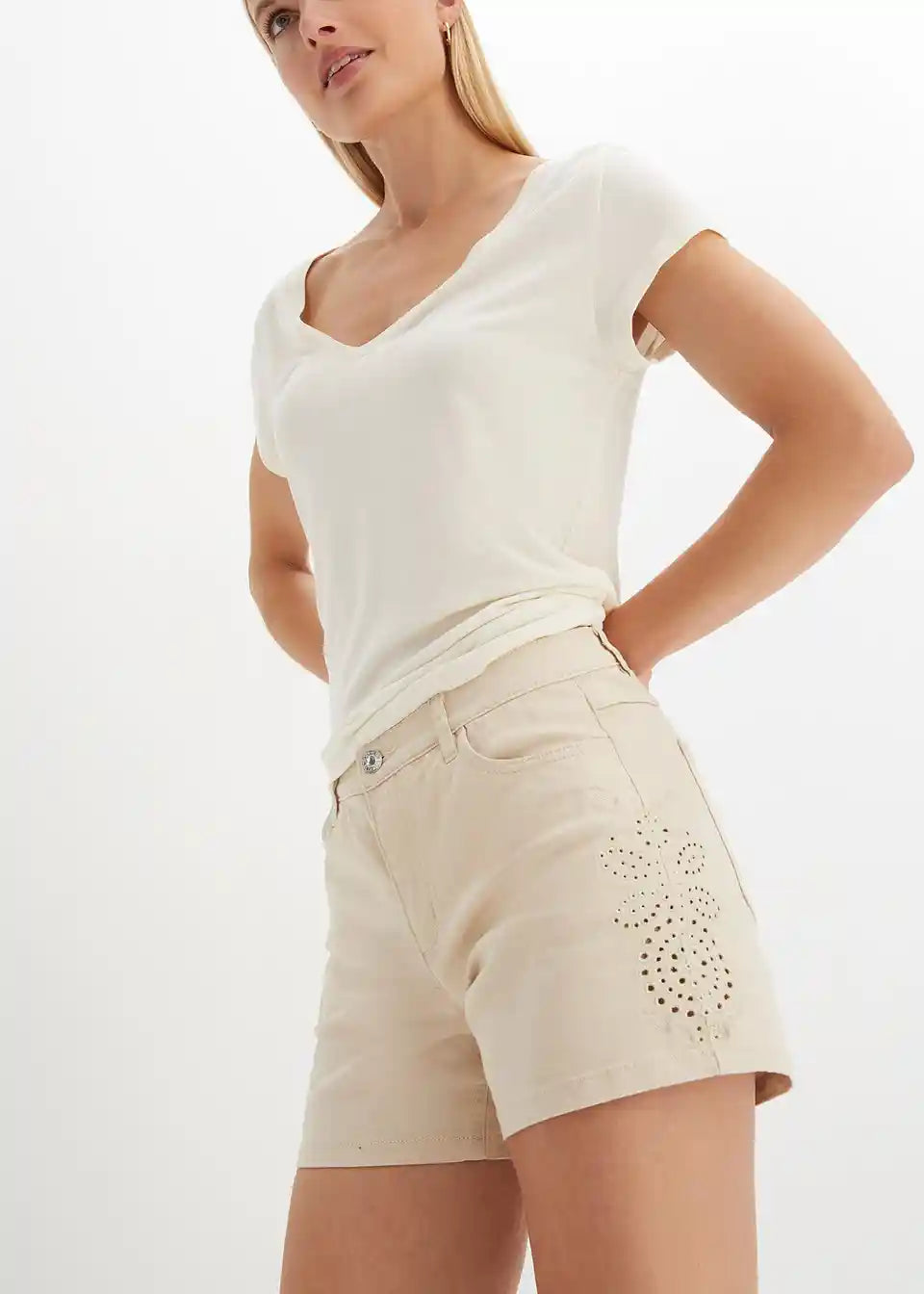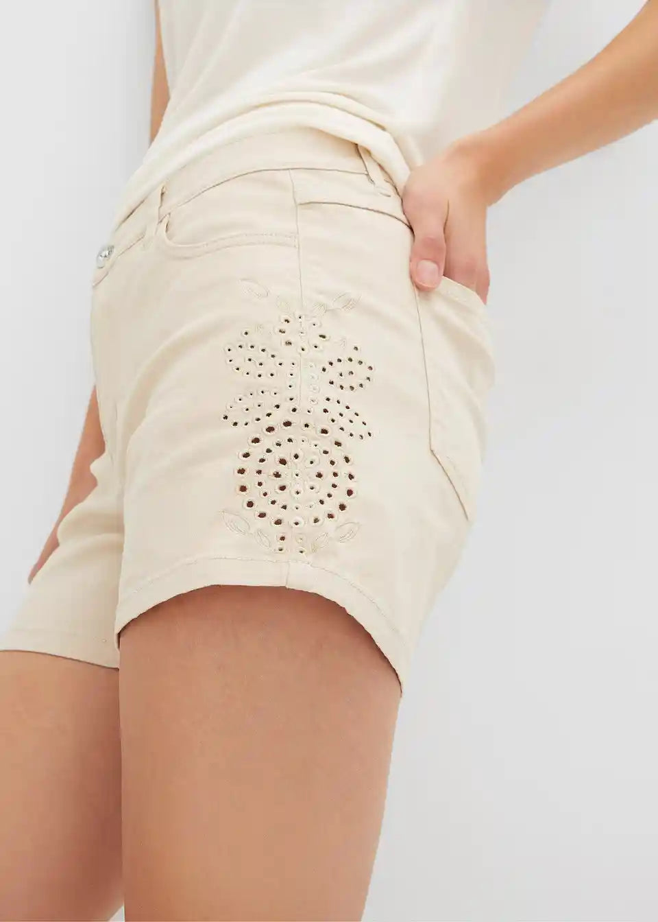 Moderne kratke hlače z visokokakovostnim luknjičastim vezenjem