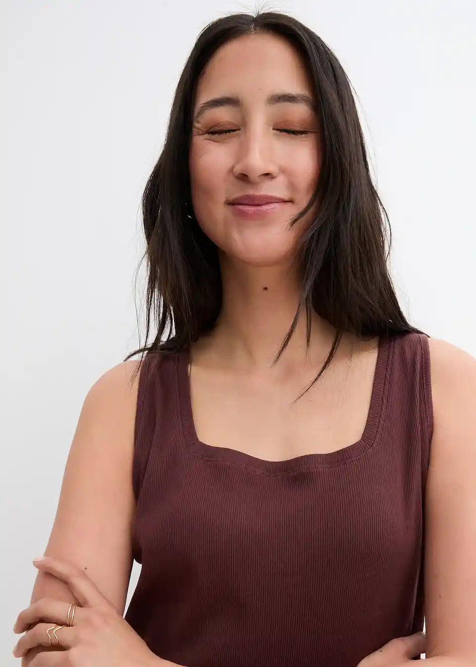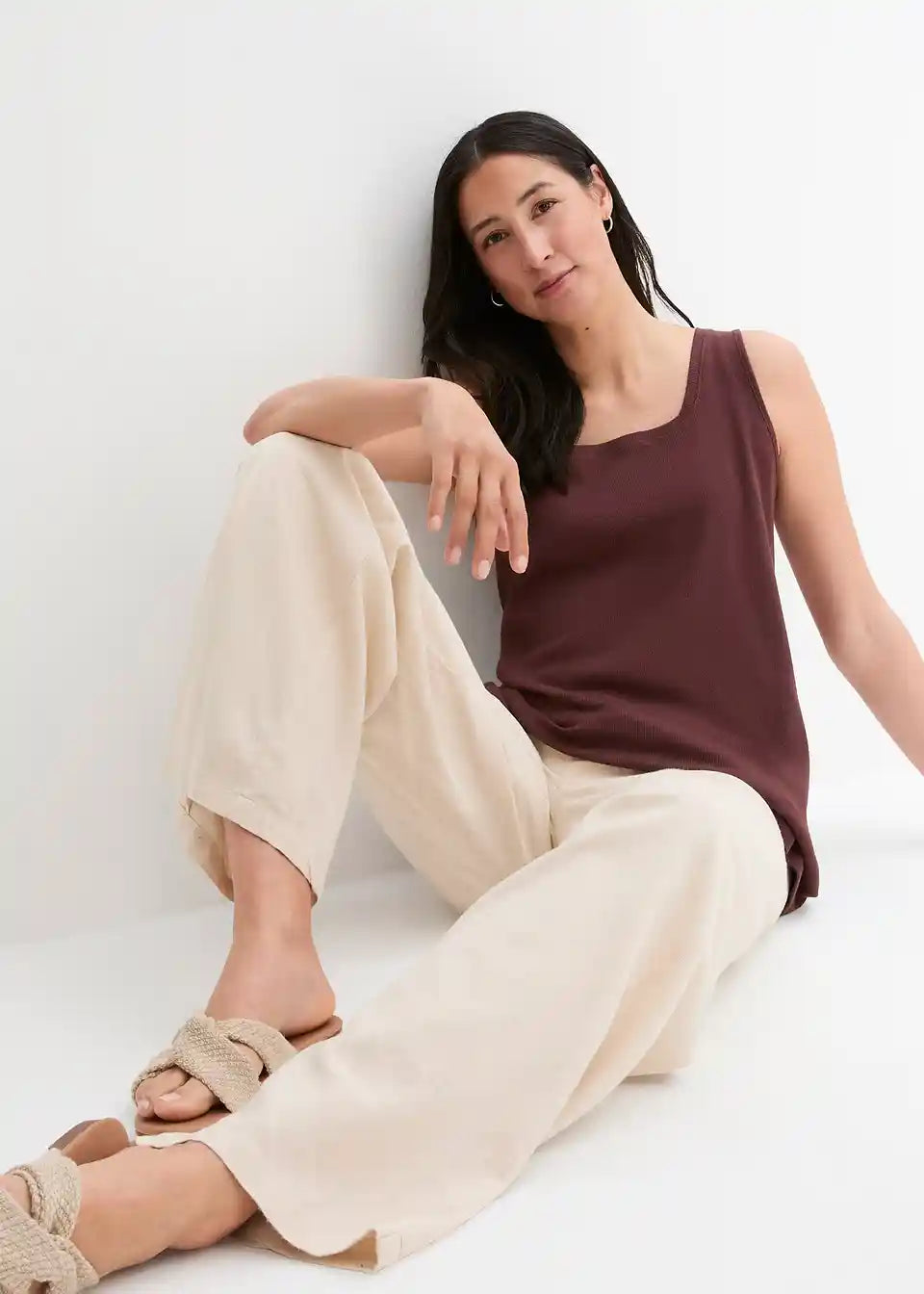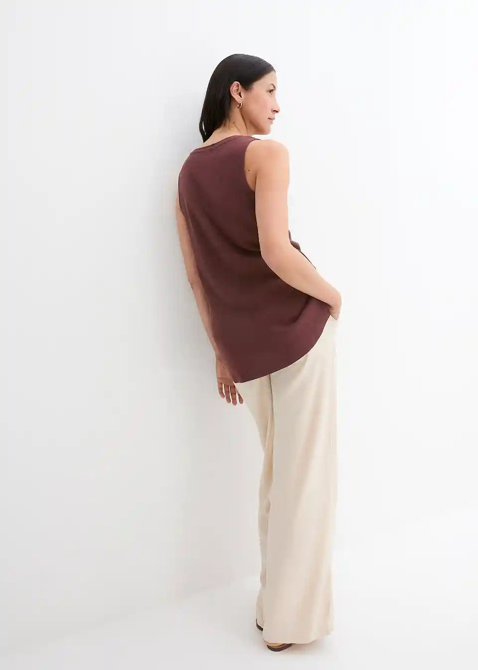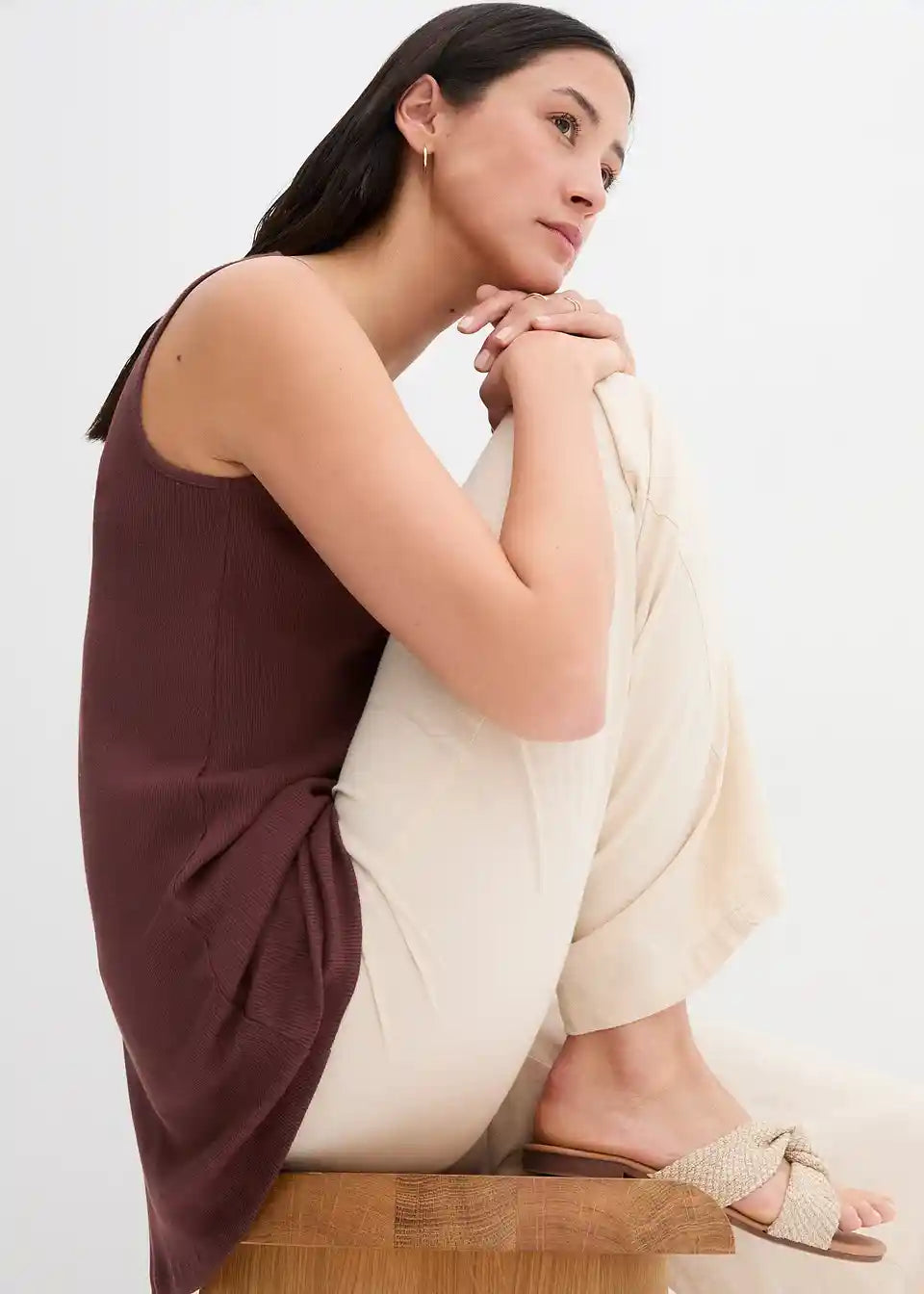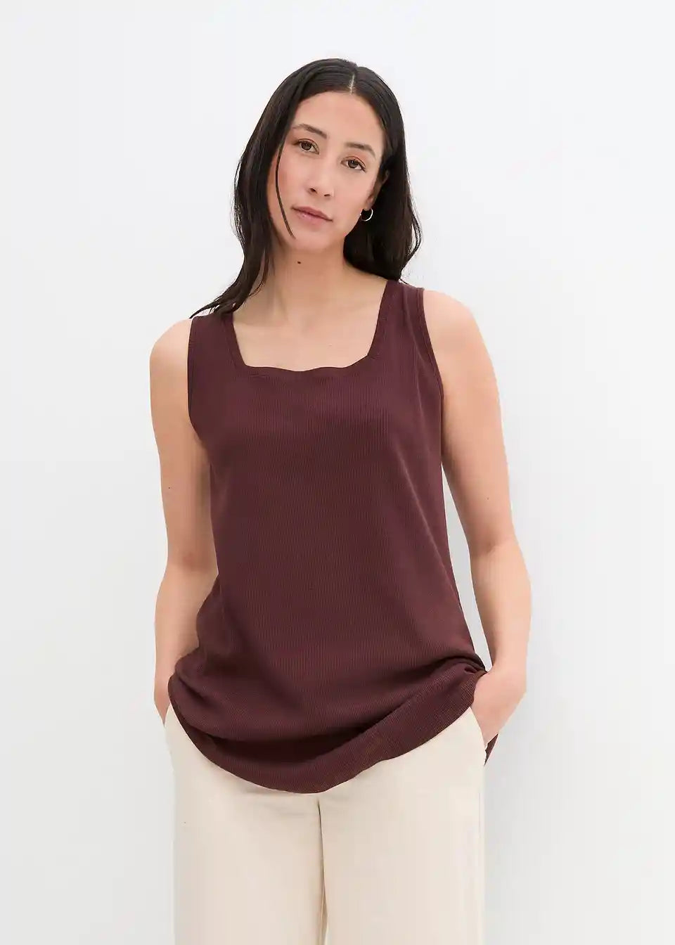 Rebrast bombažen dolg top s kvadratnim izrezom