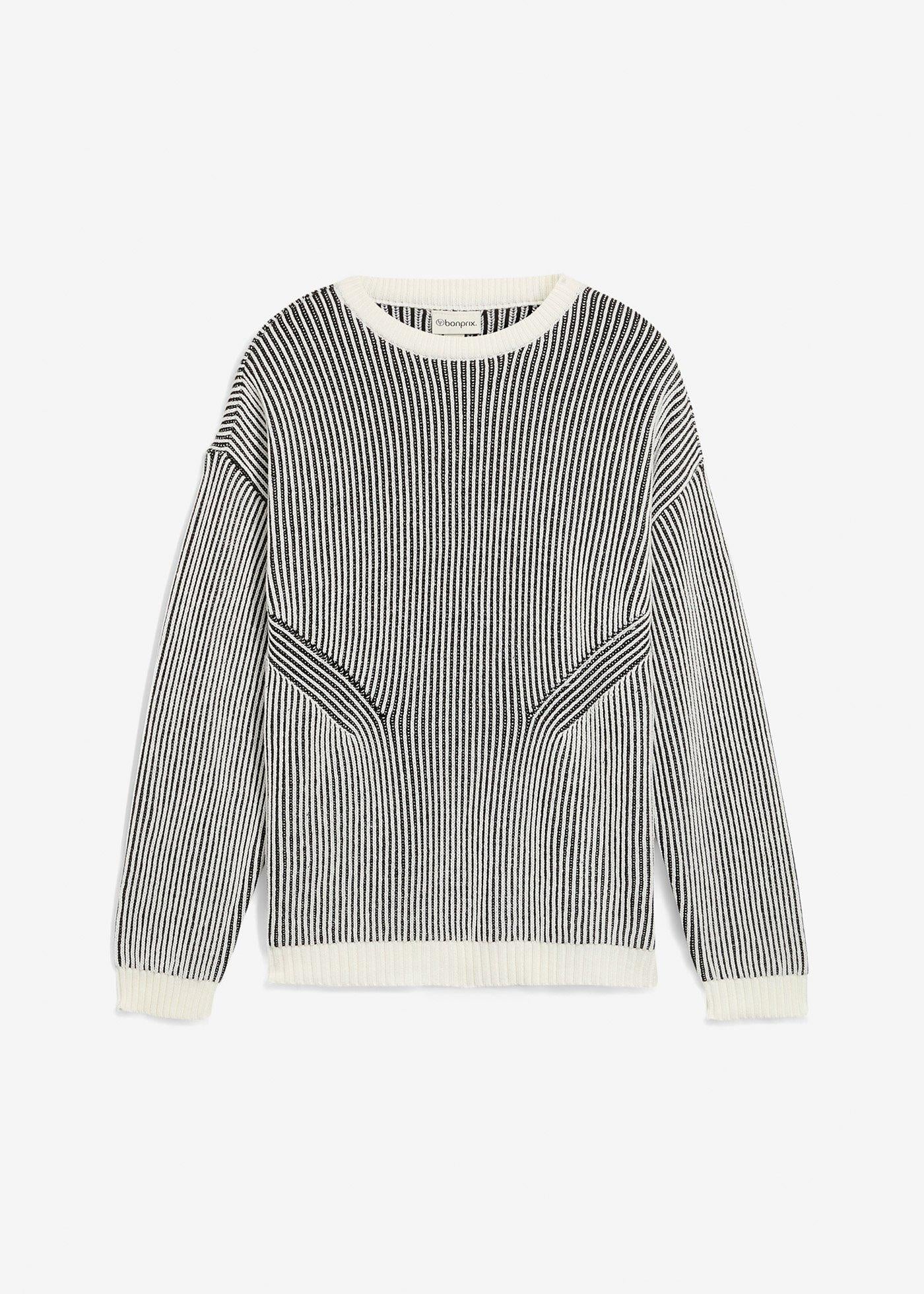 Rebrast pulover iz bombažne mešanice v udobnem kroju
