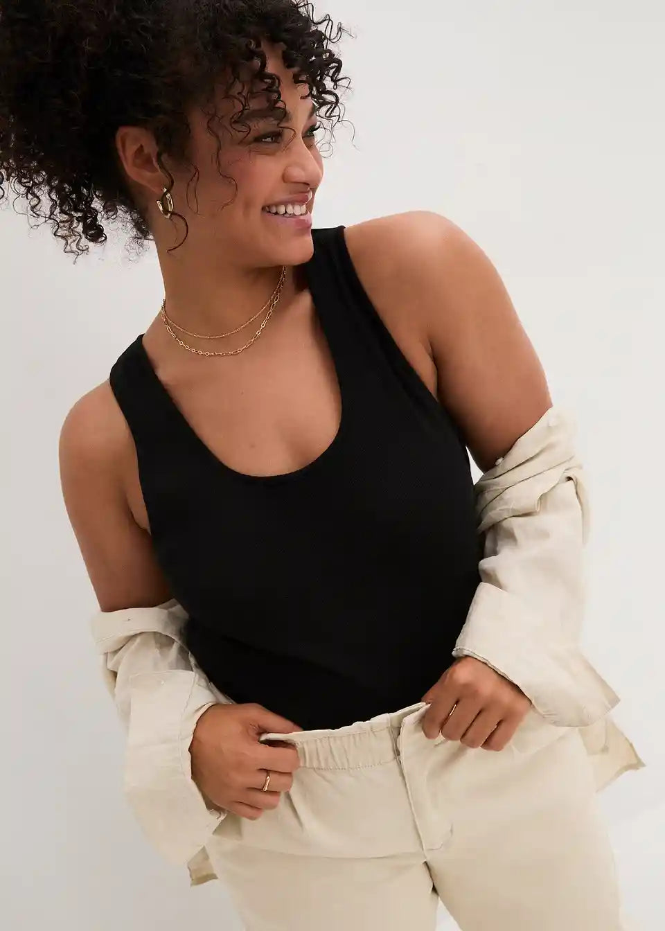 Nezapleten rebrast zgornji del z okroglim izrezom