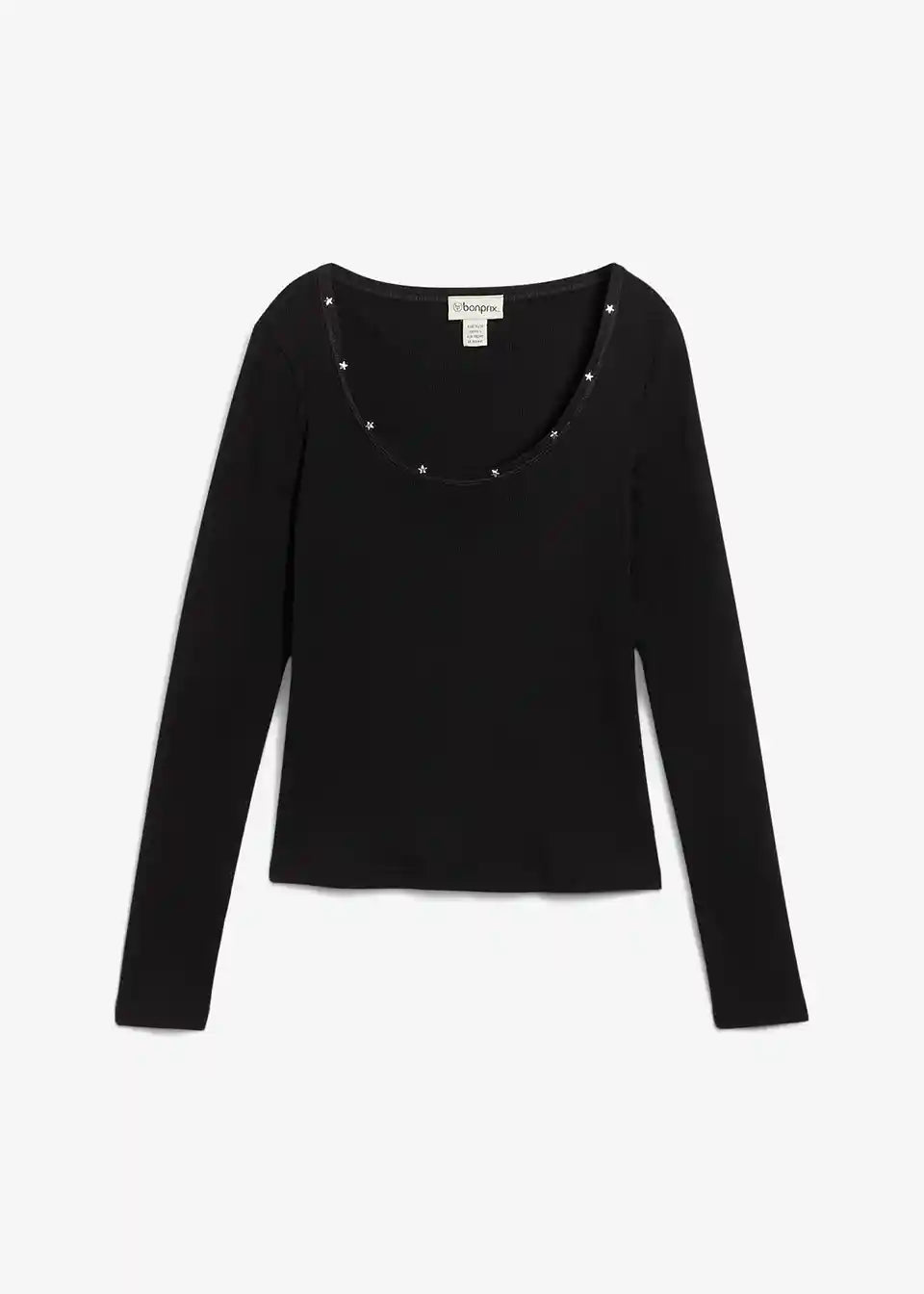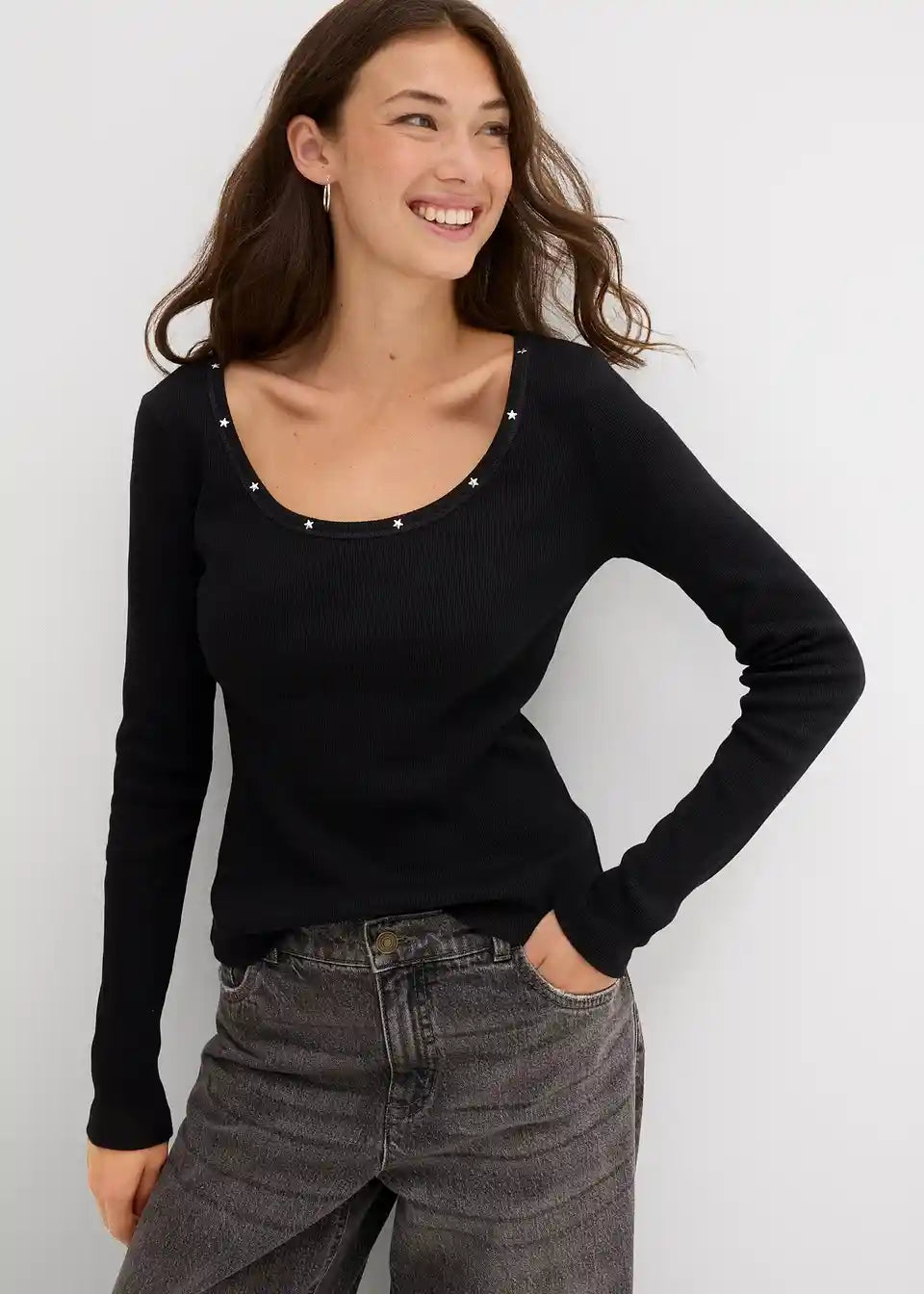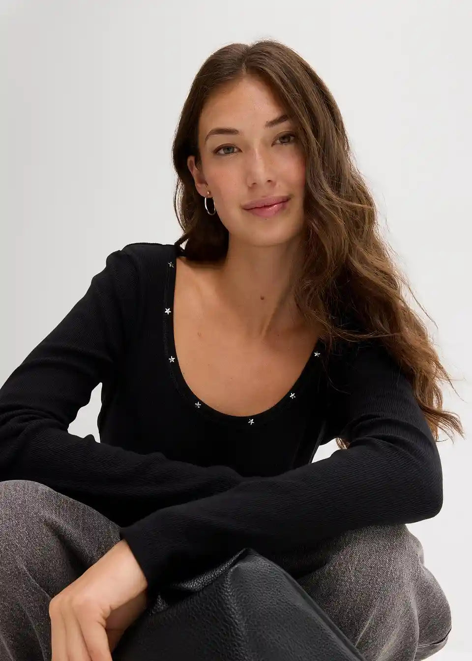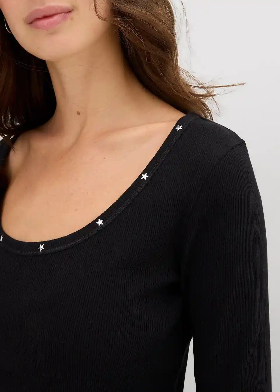 Moderna rebrasta majica z dolgimi rokavi in zakovicami
