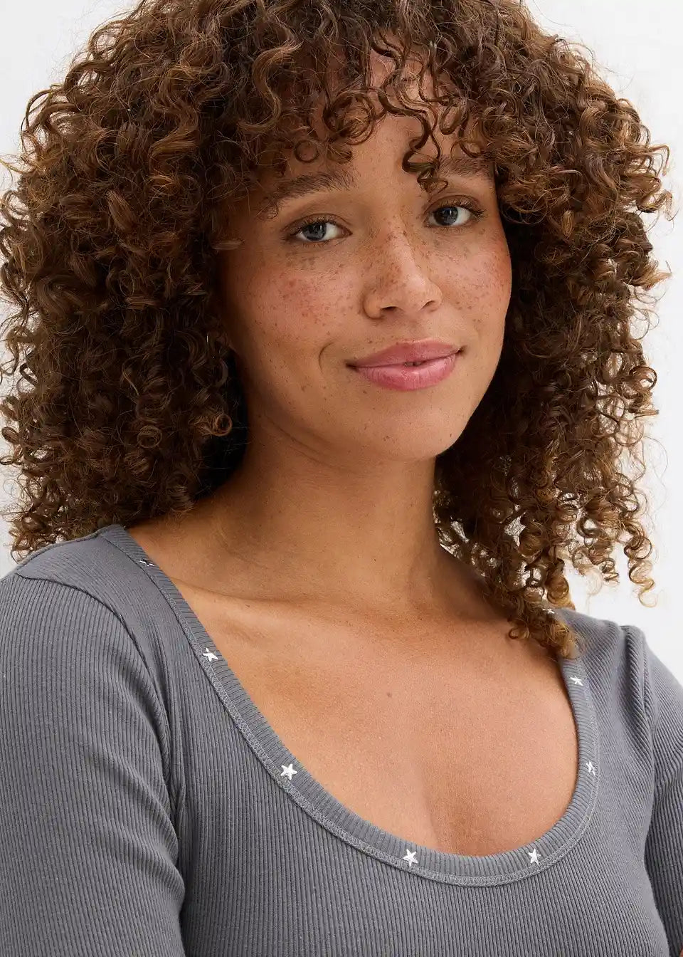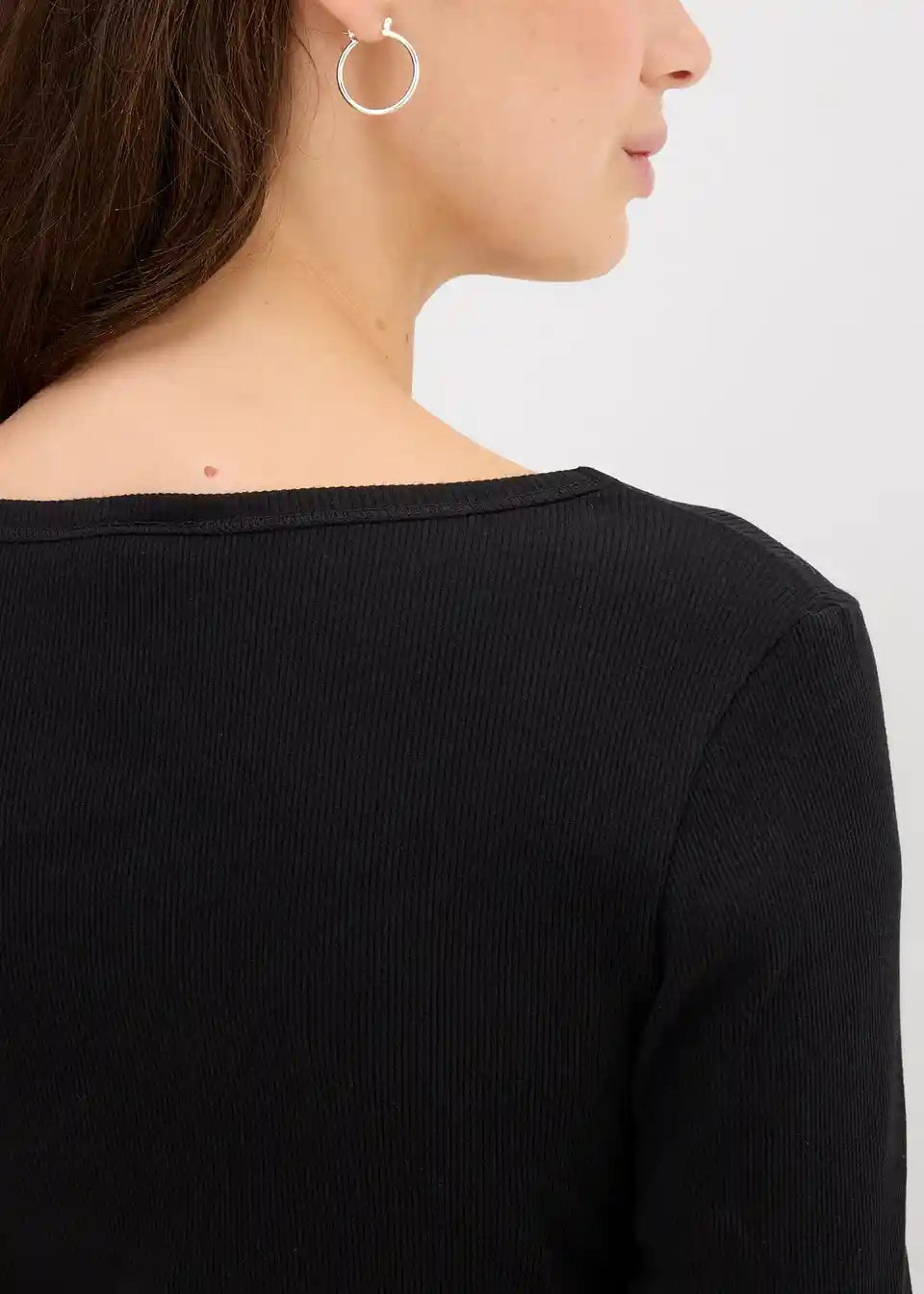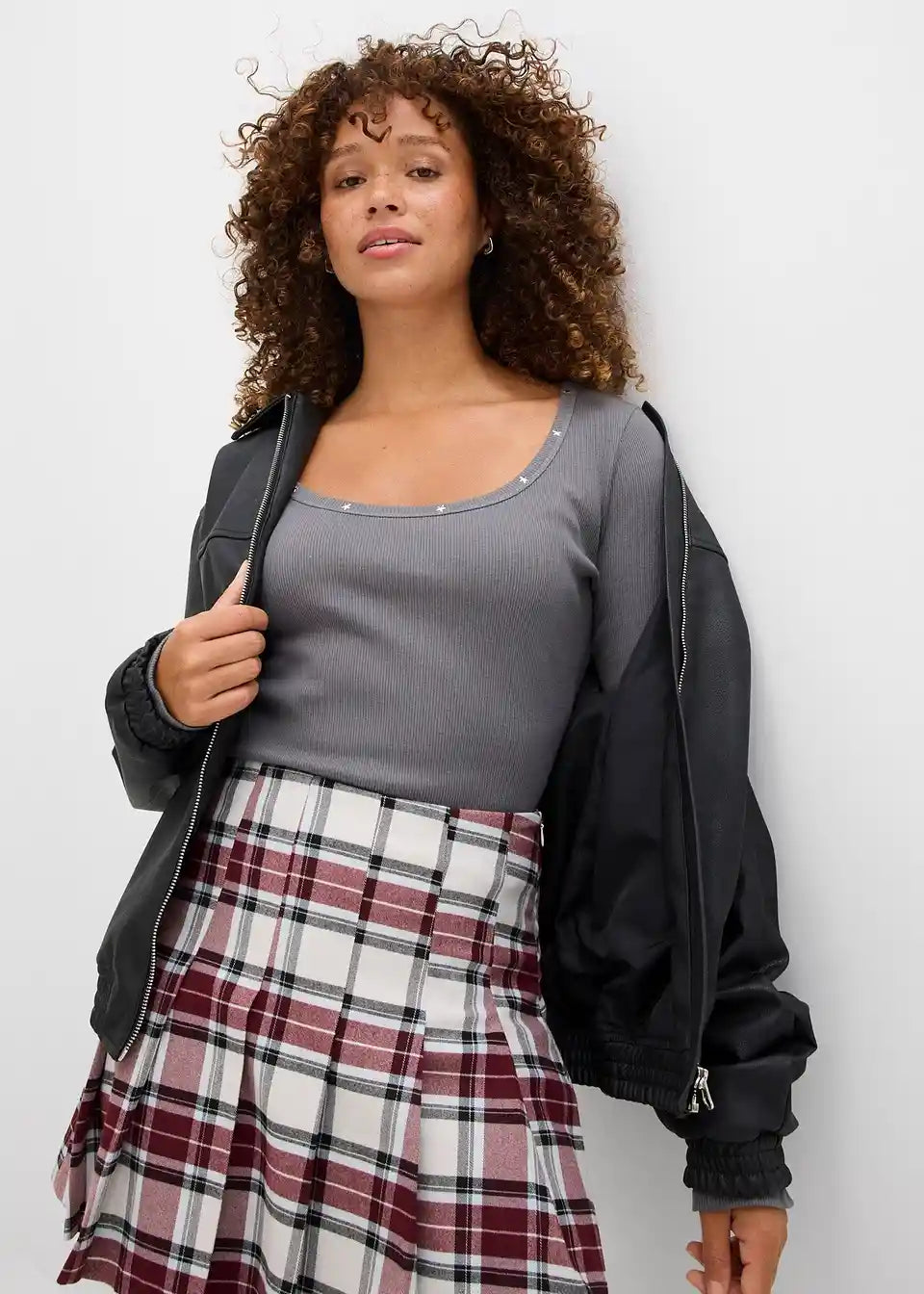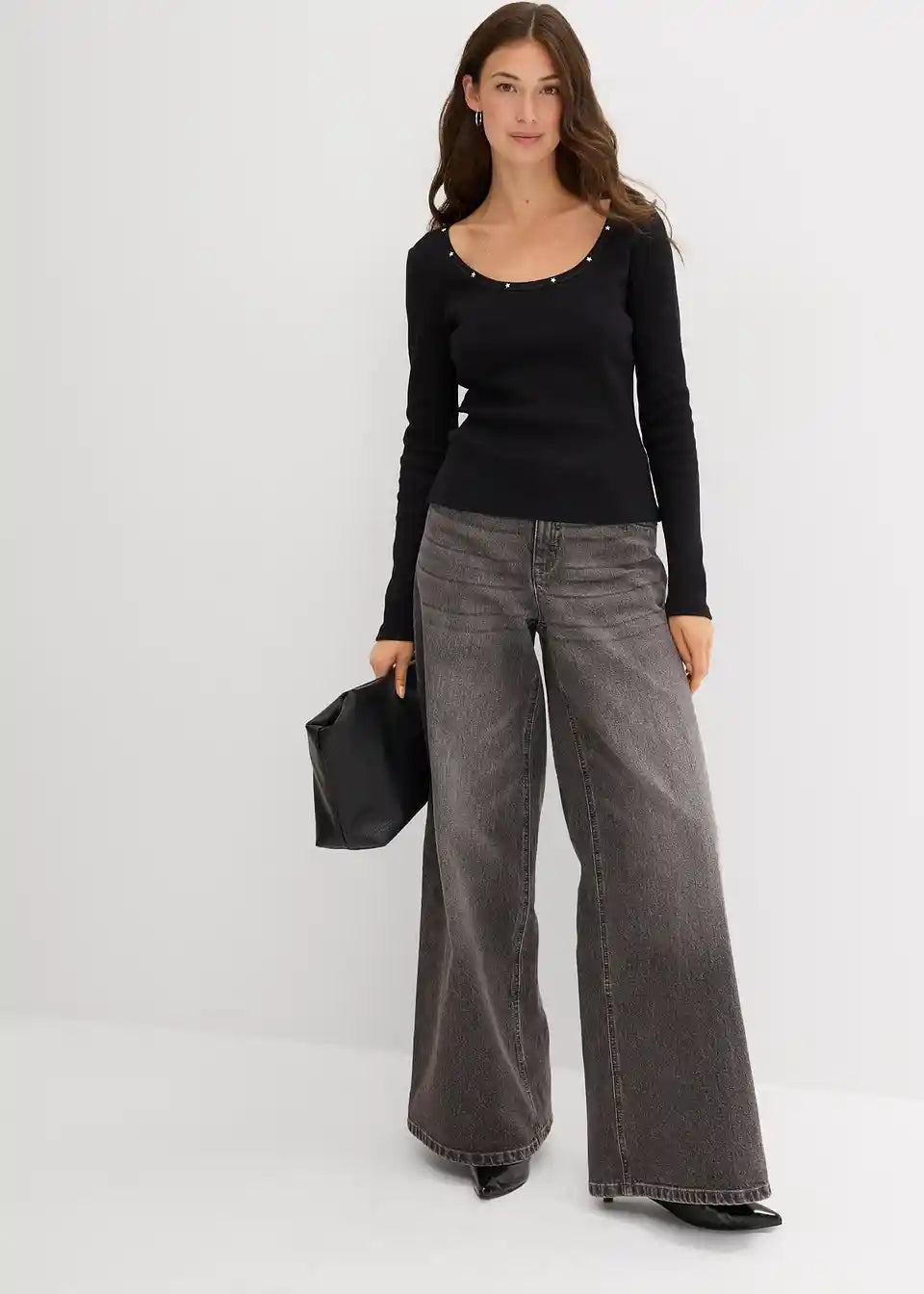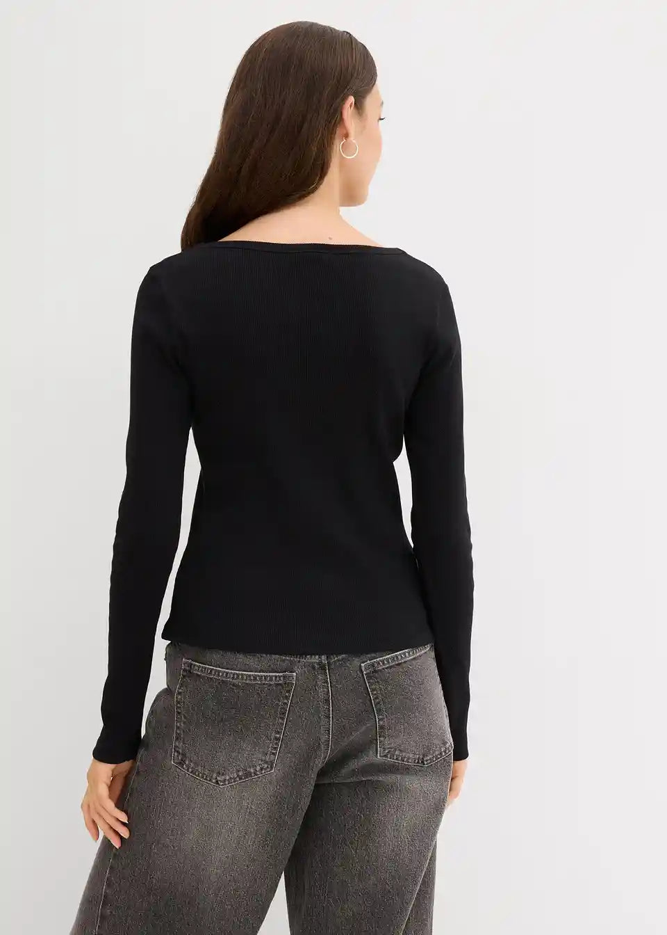 Moderna rebrasta majica z dolgimi rokavi in zakovicami
