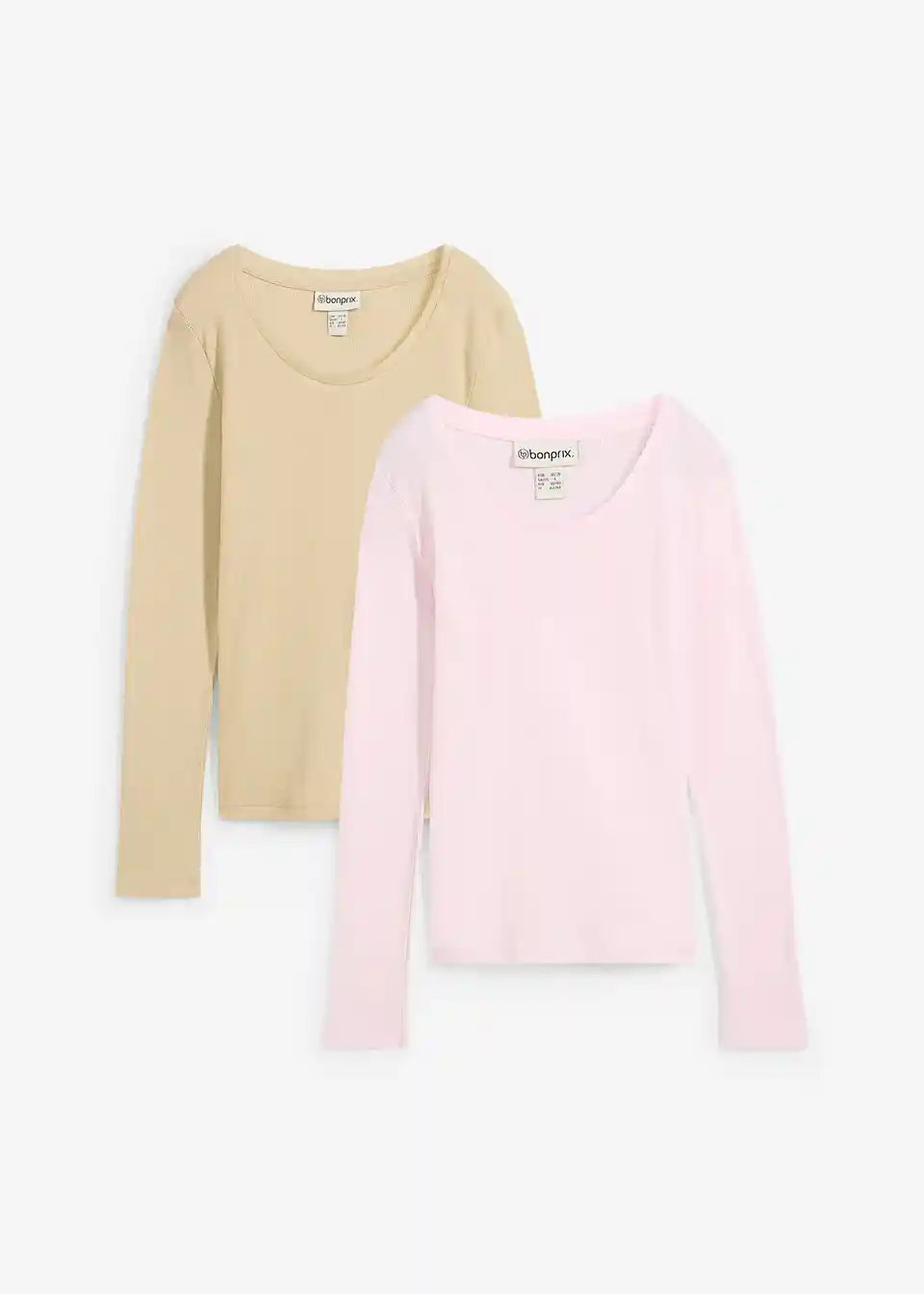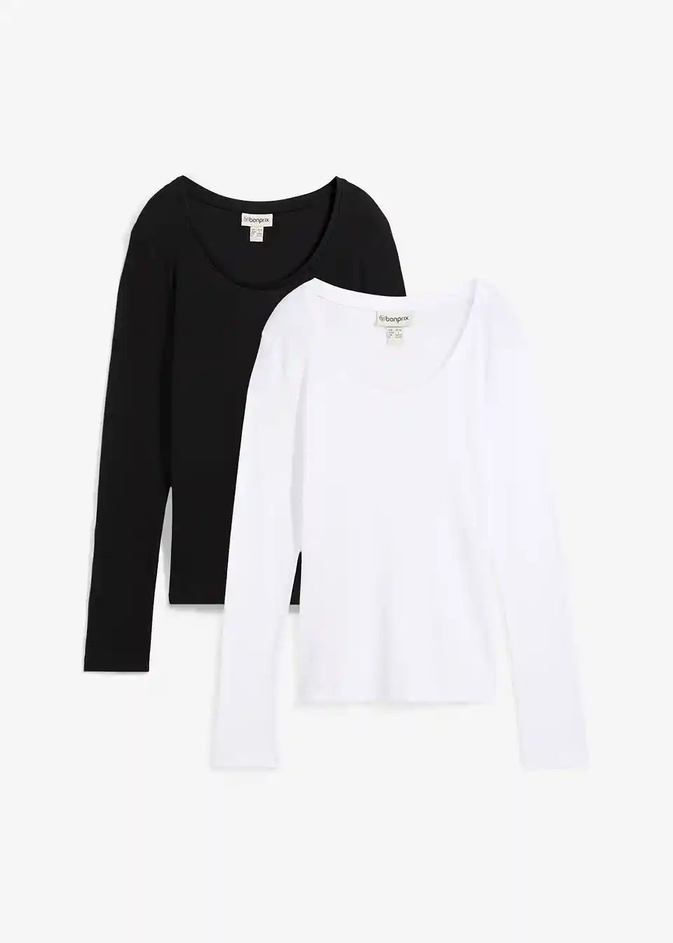 Vsestransko kombinirljiva rebrasta majica z organskim bombažem (2 kosa v paketu)
