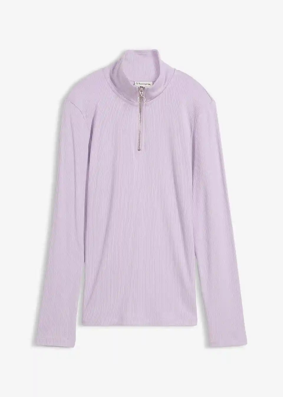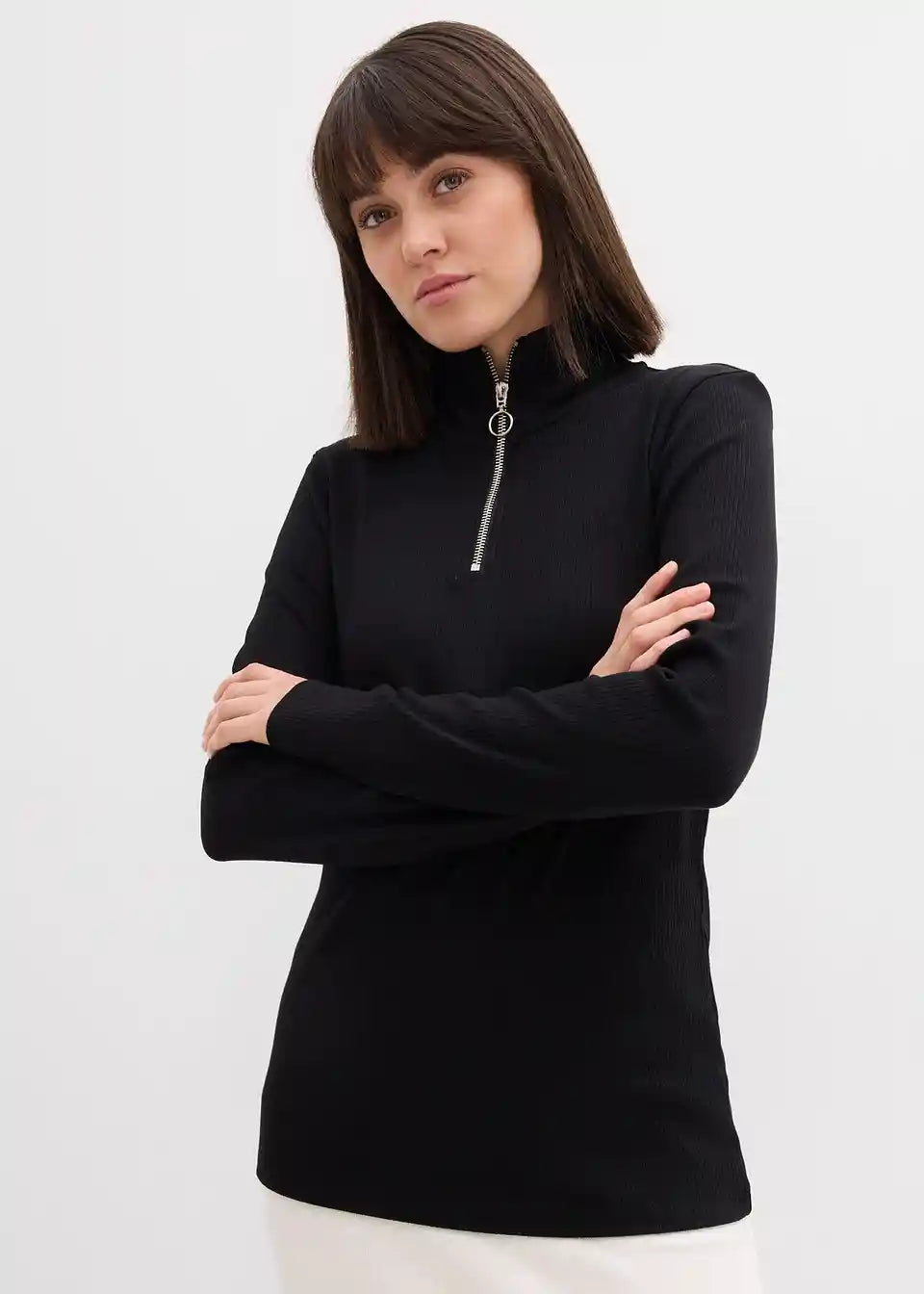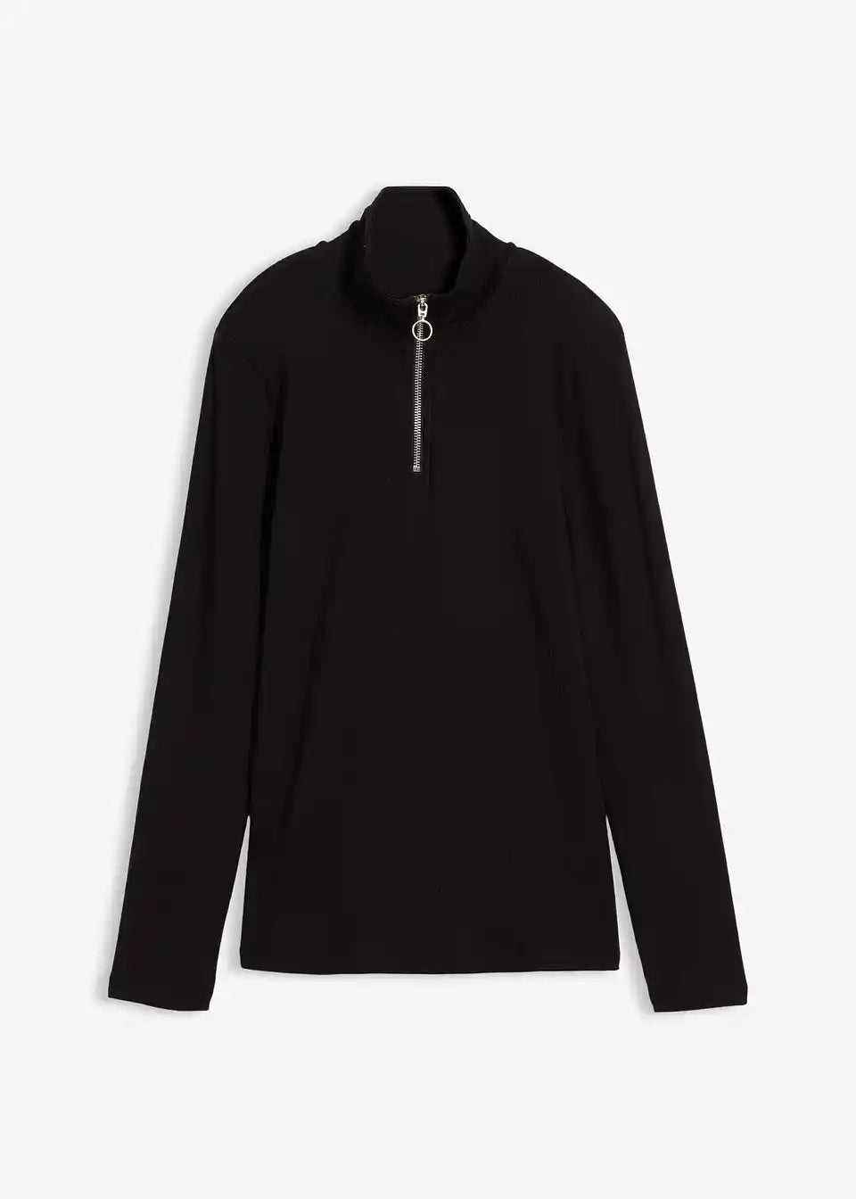 Oprijeta rebrasta majica iz mehke viskozne mešanice z zadrgo