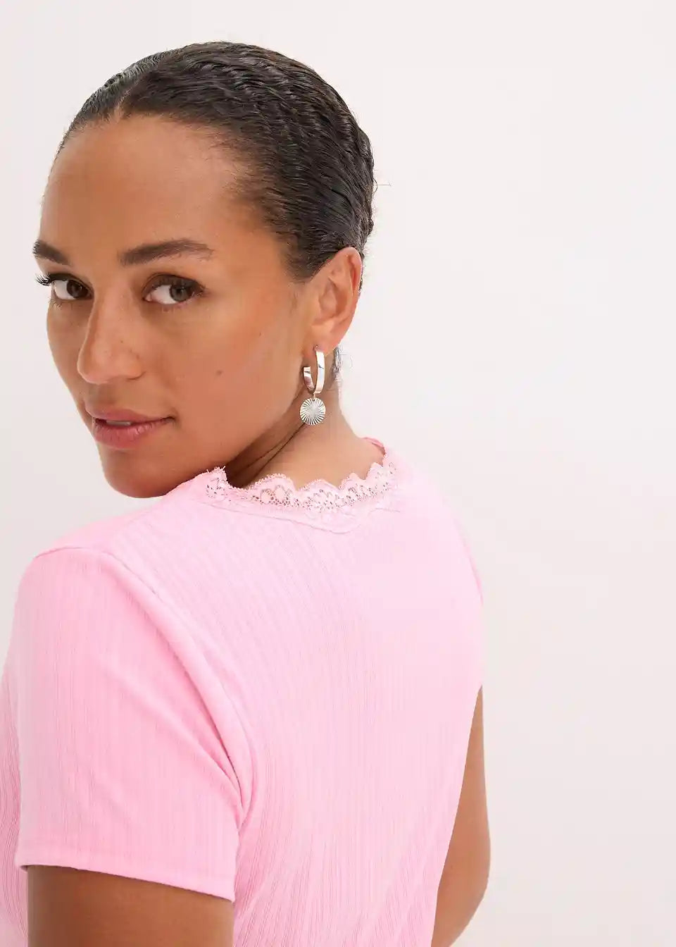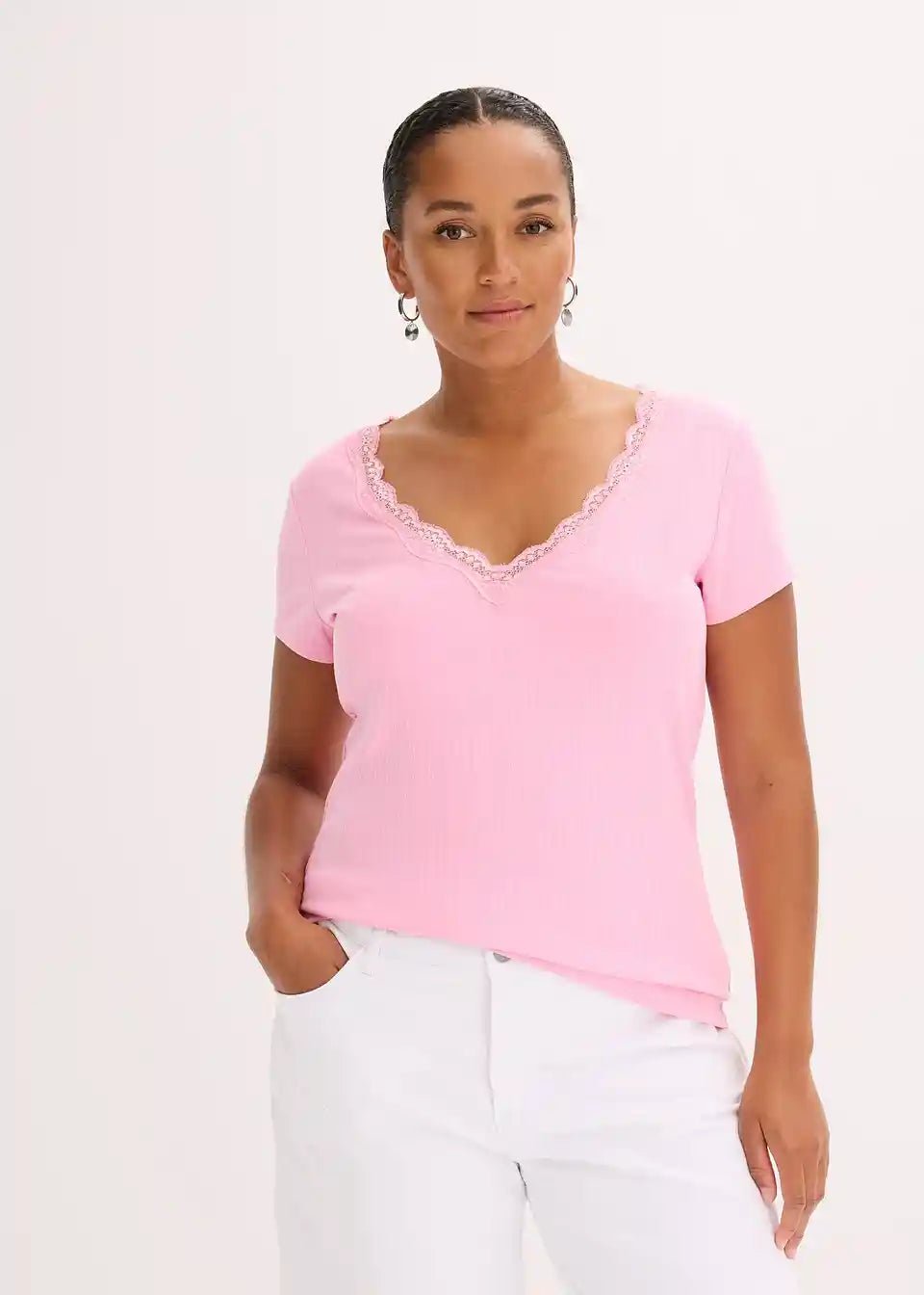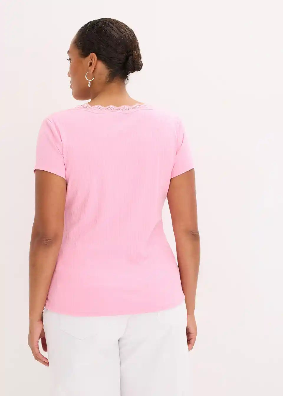 Rebrasta majica s čipkastim detajlom v oprijetem kroju