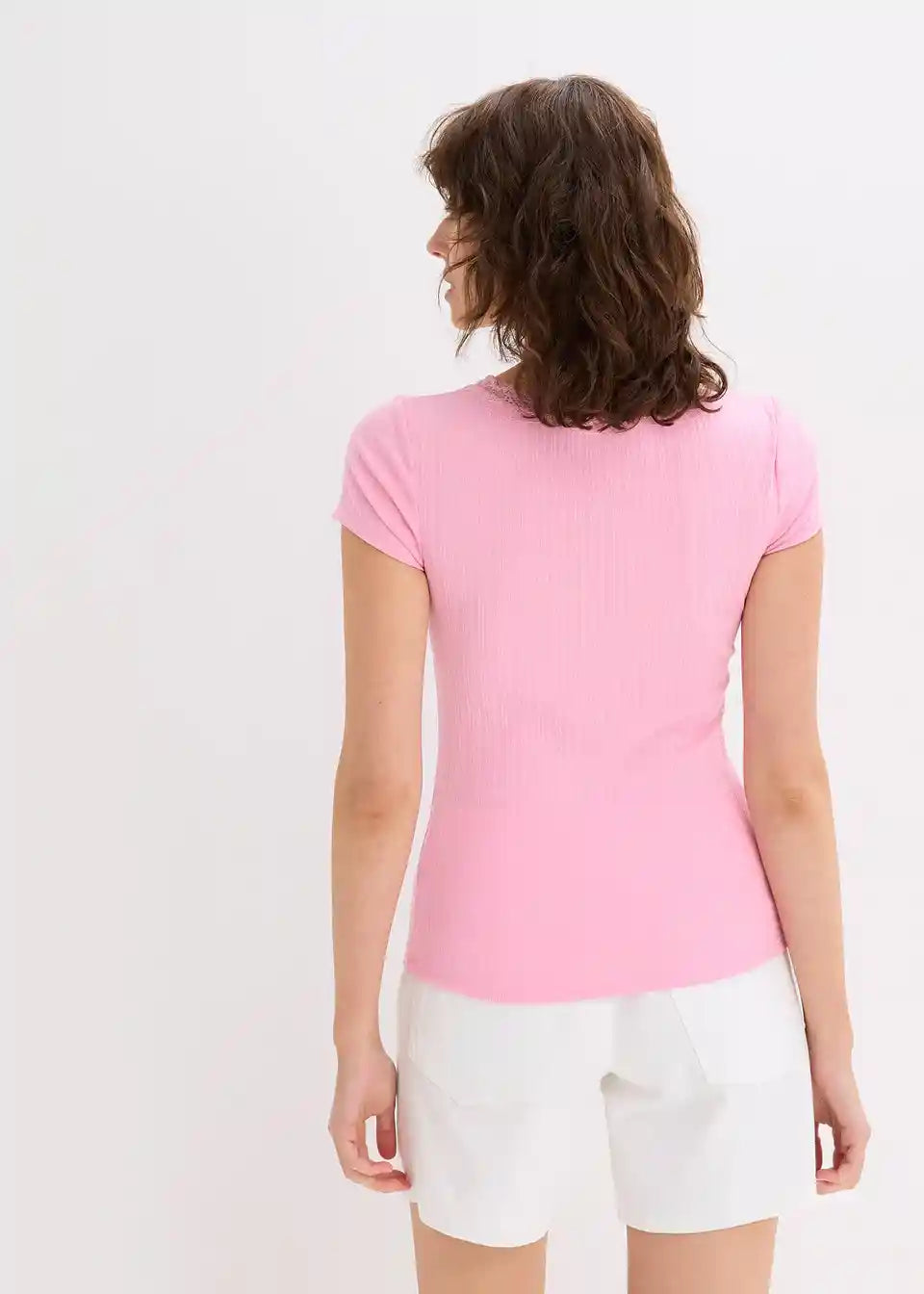 Rebrasta majica s čipkastim detajlom v Slim-Fit kroju