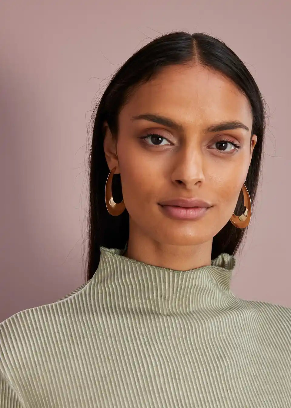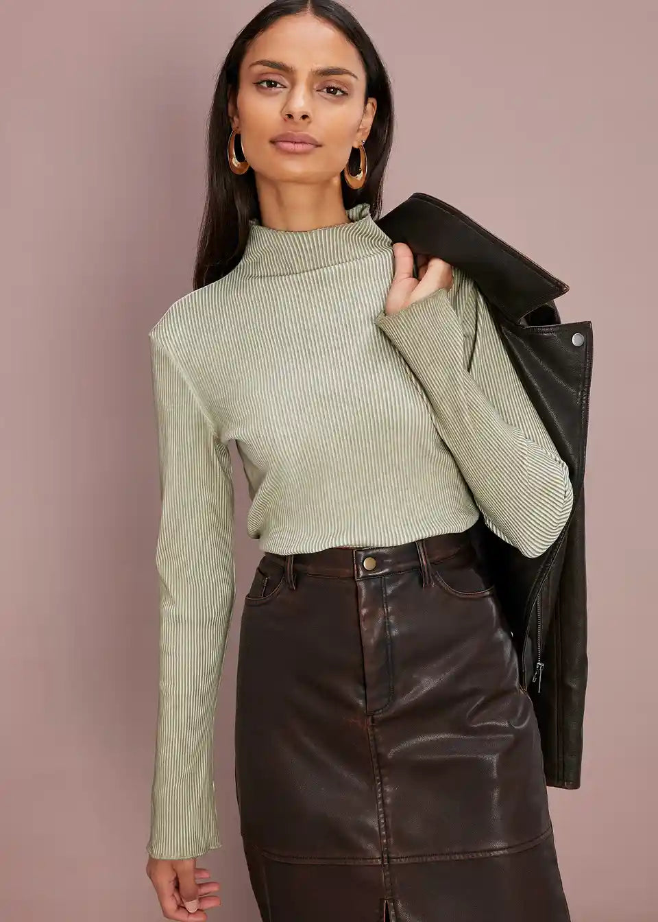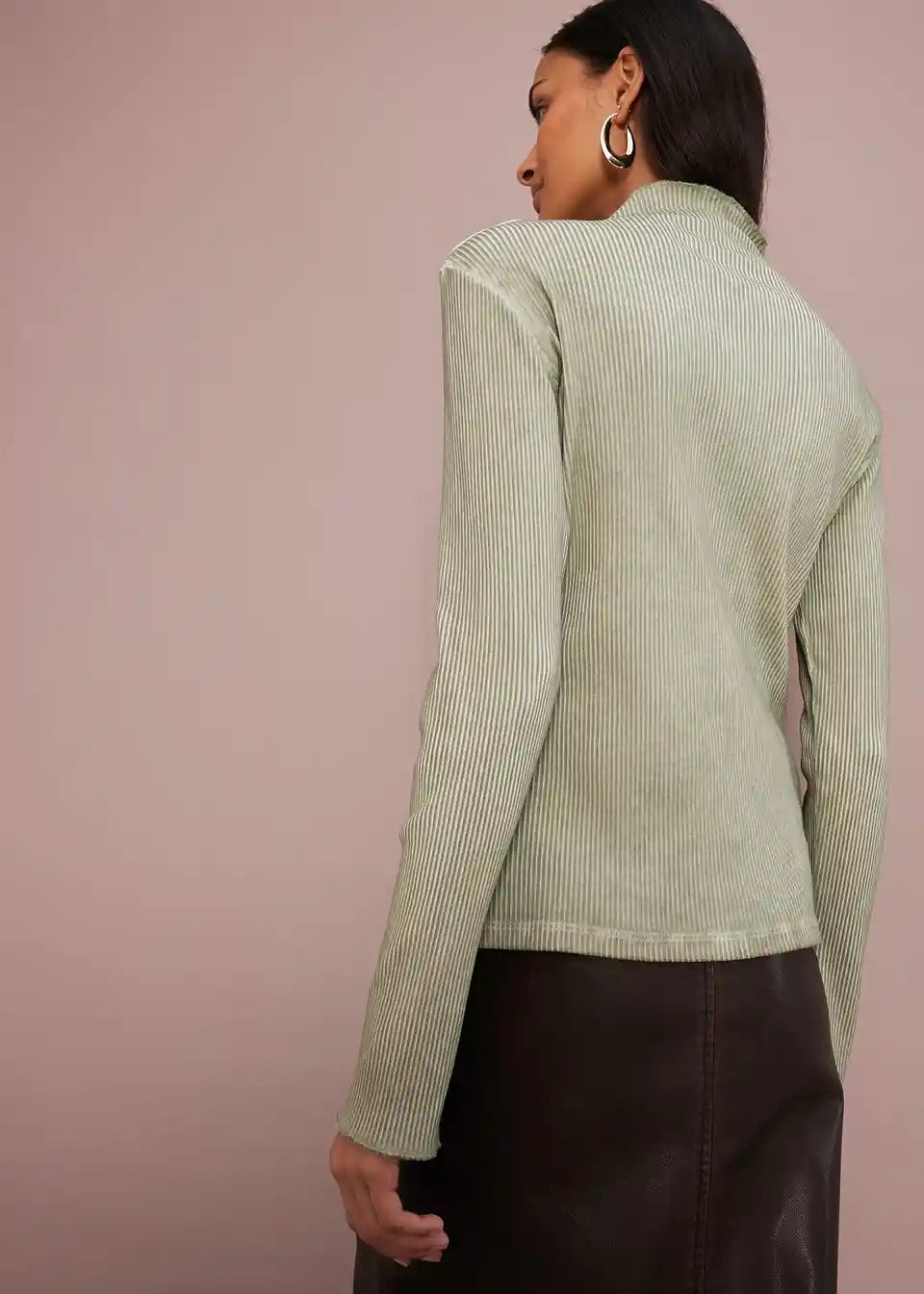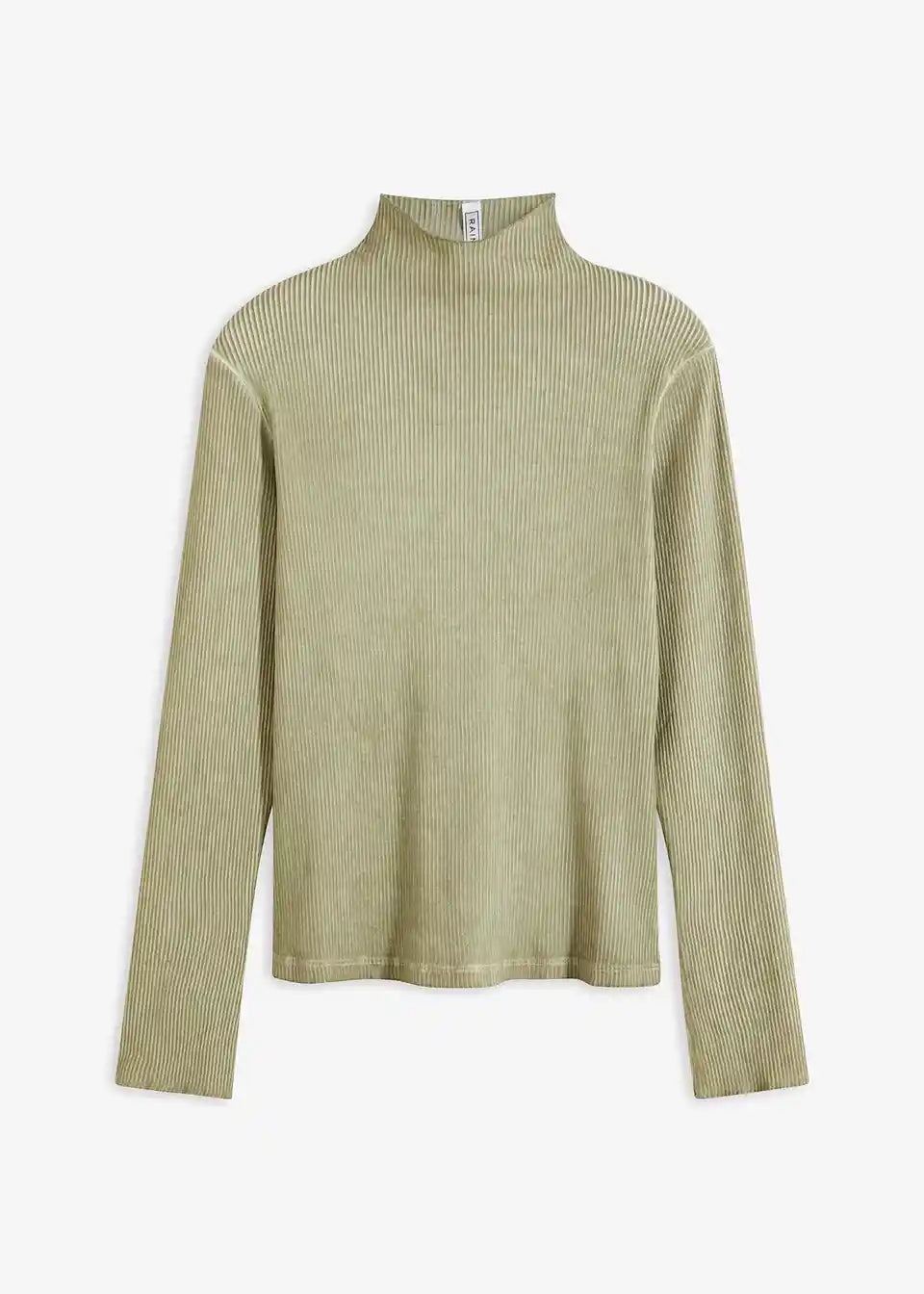 Majica z dolgimi rokavi in visokim ovratnikom iz rebraste tkanine