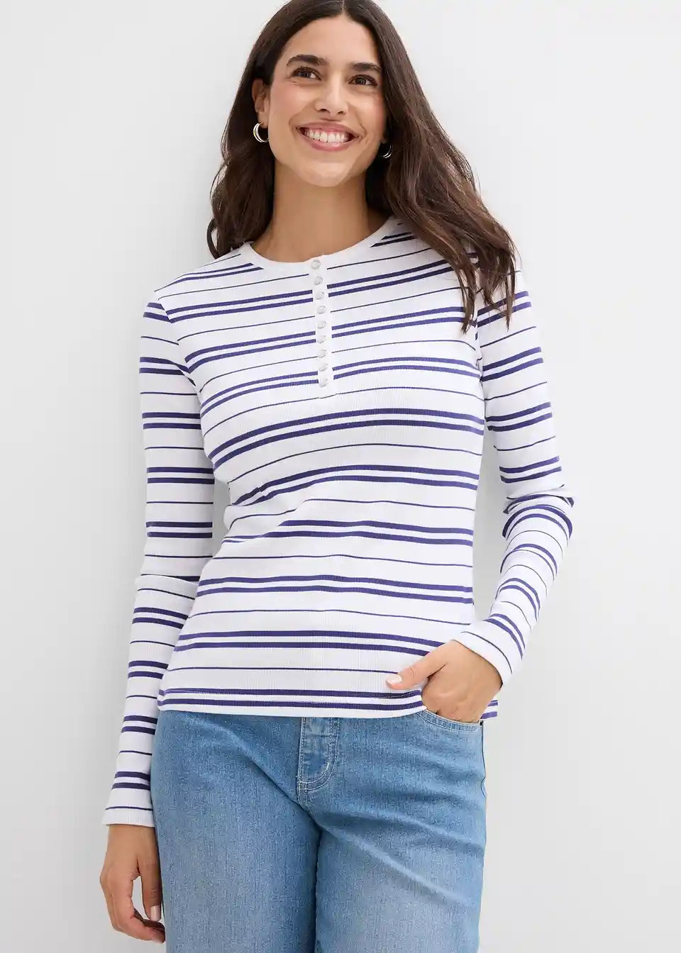 Modno črtasta majica z dolgimi rokavi iz mešanice z deležem ekološkega bombaža