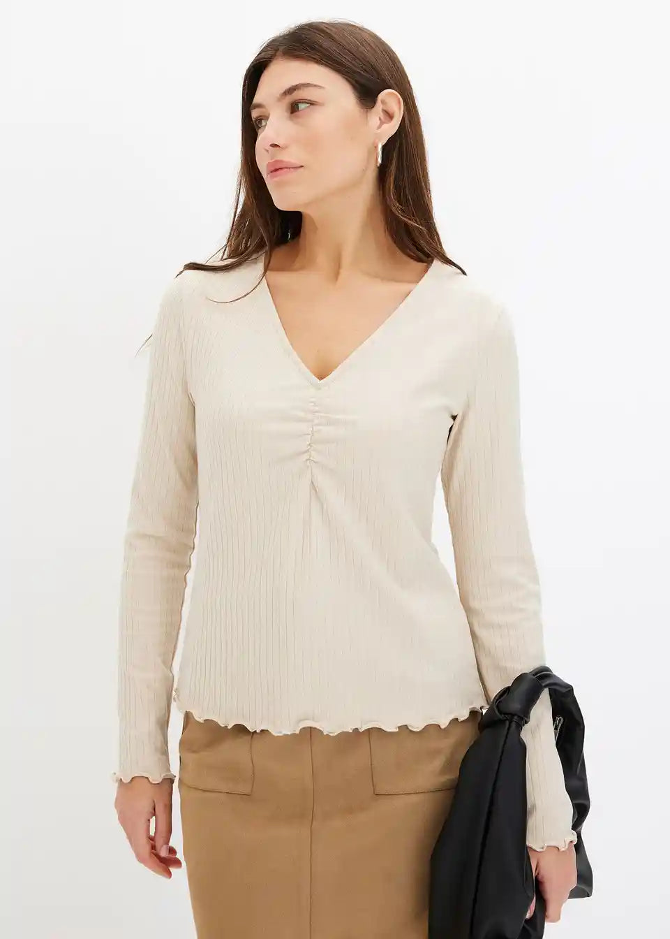 Rebrasta majica z V-izrezom
