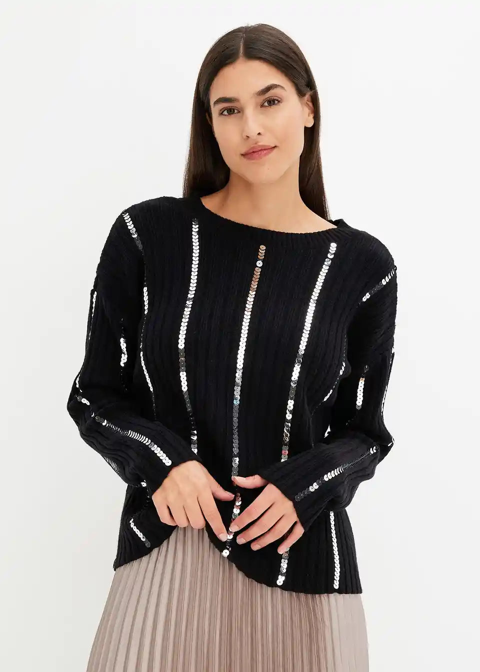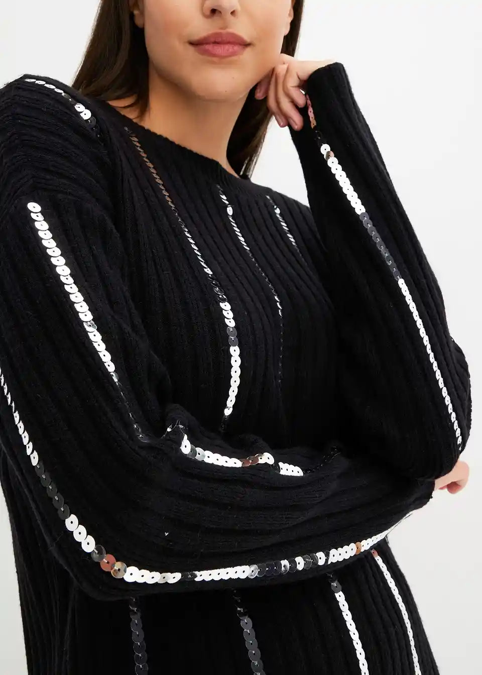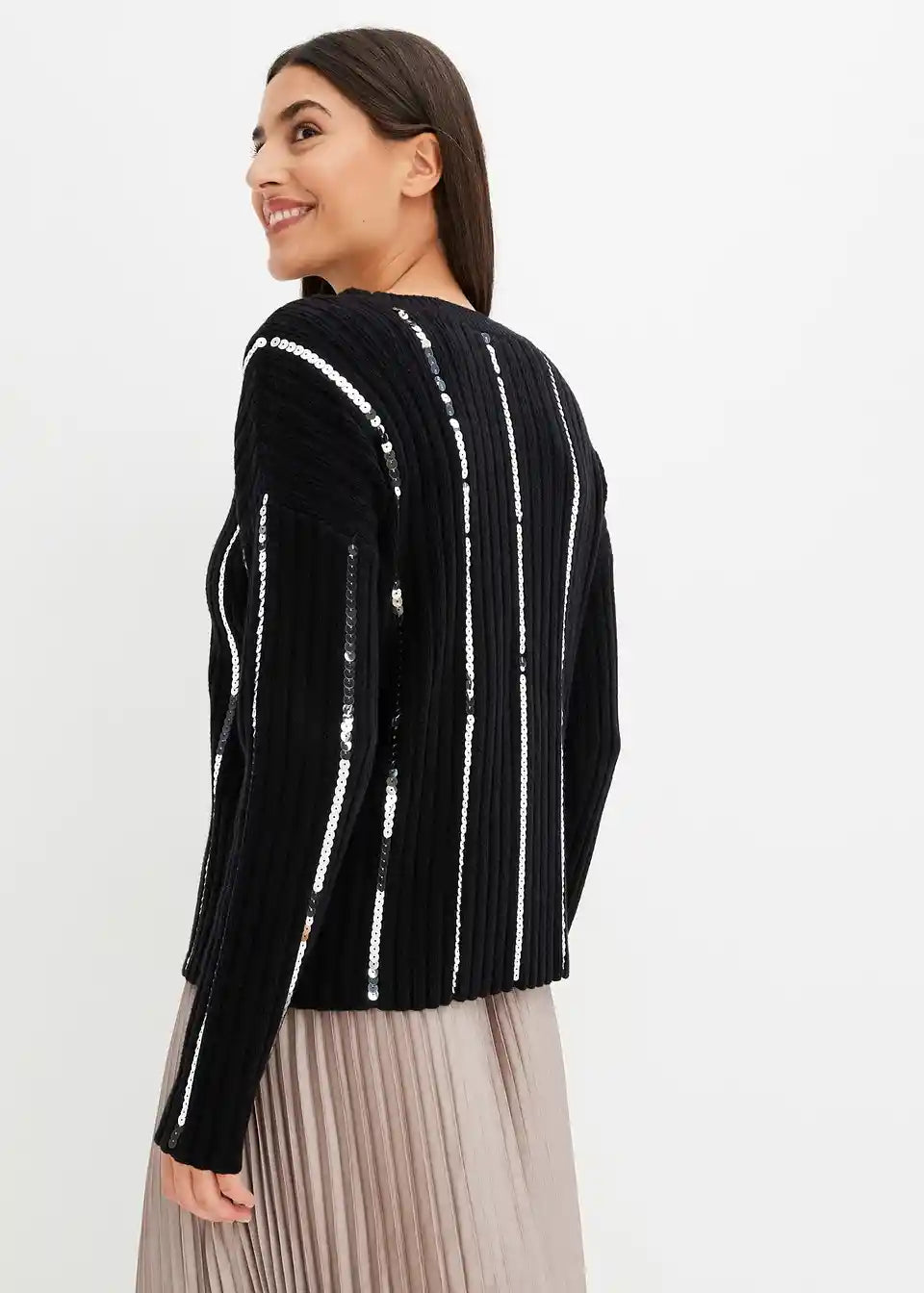 klasičen pulover z bleščečimi črtkami