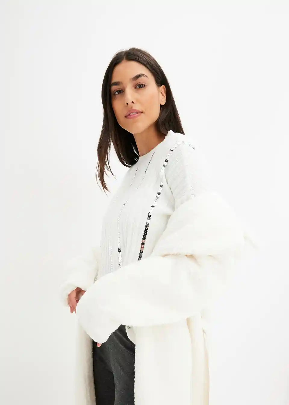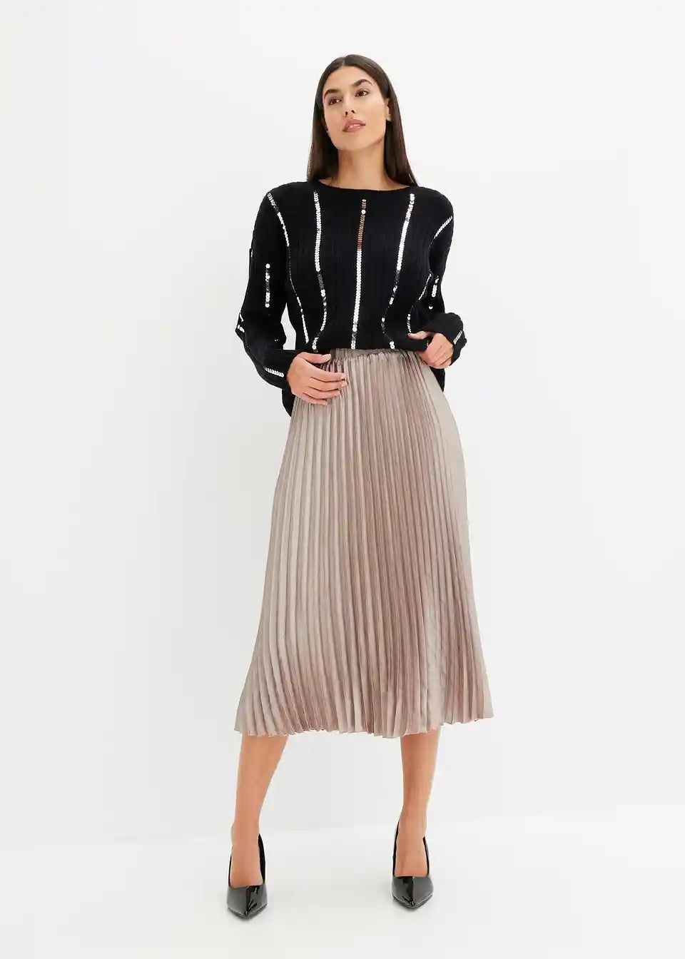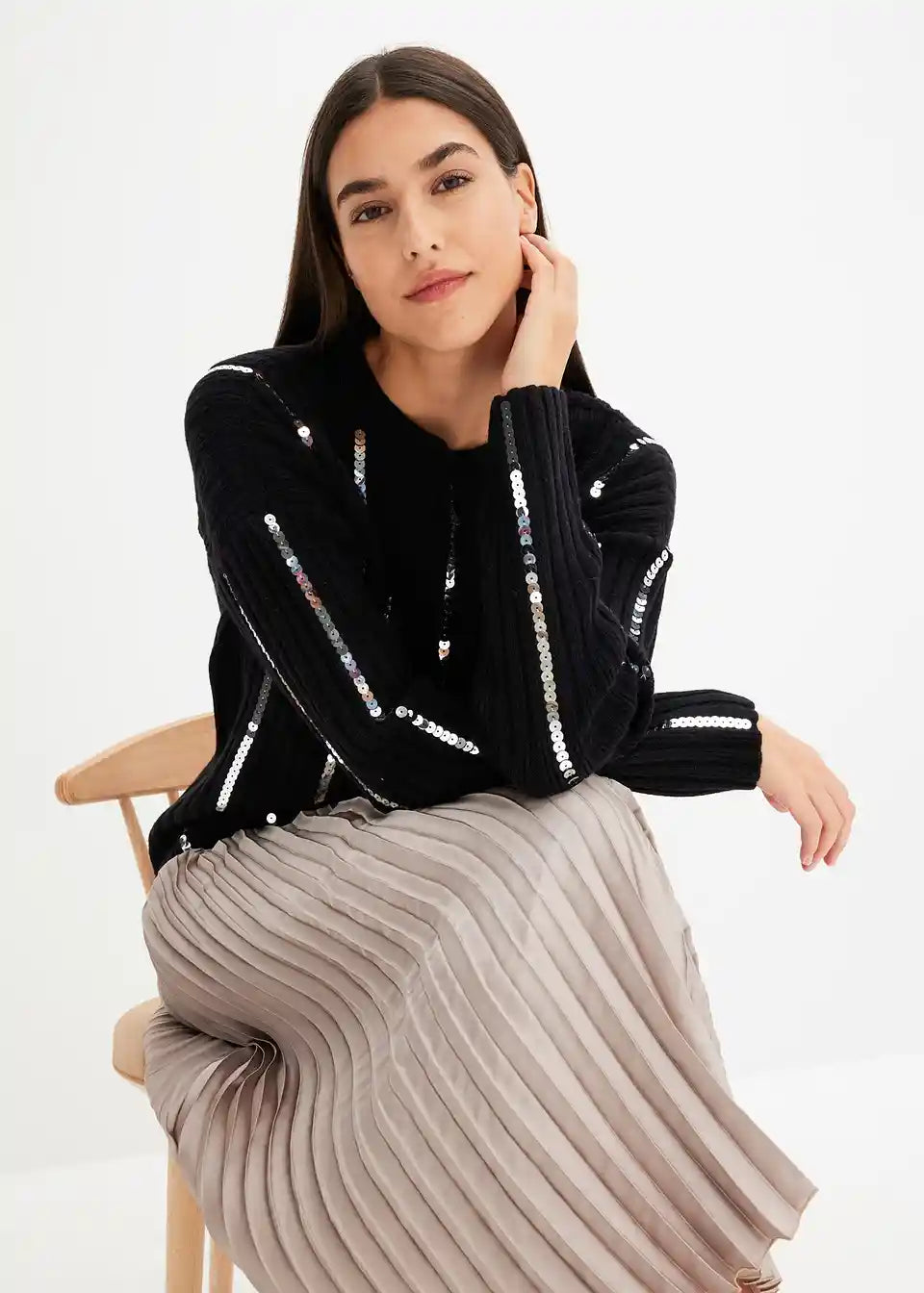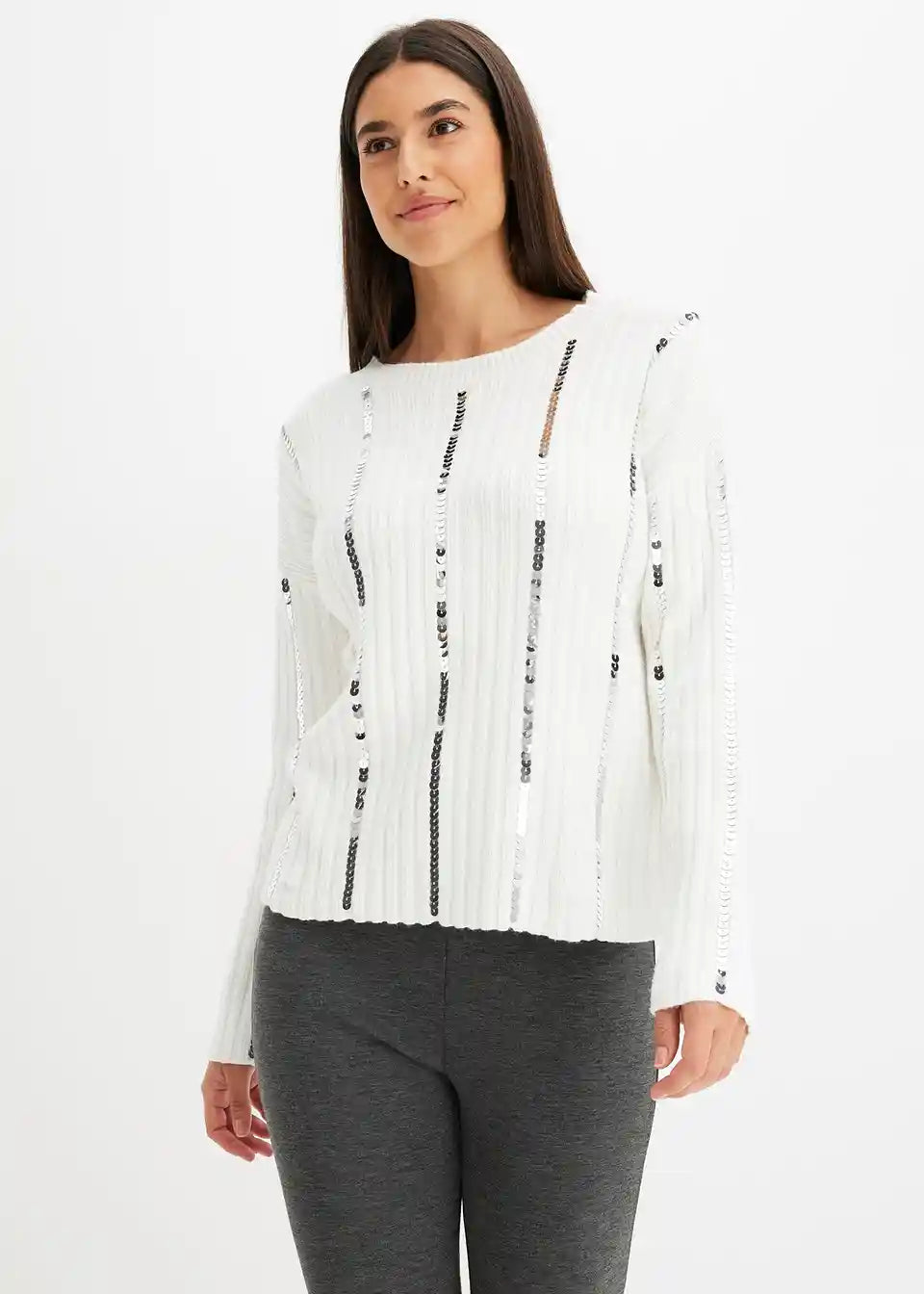 klasičen pulover z bleščečimi črtkami