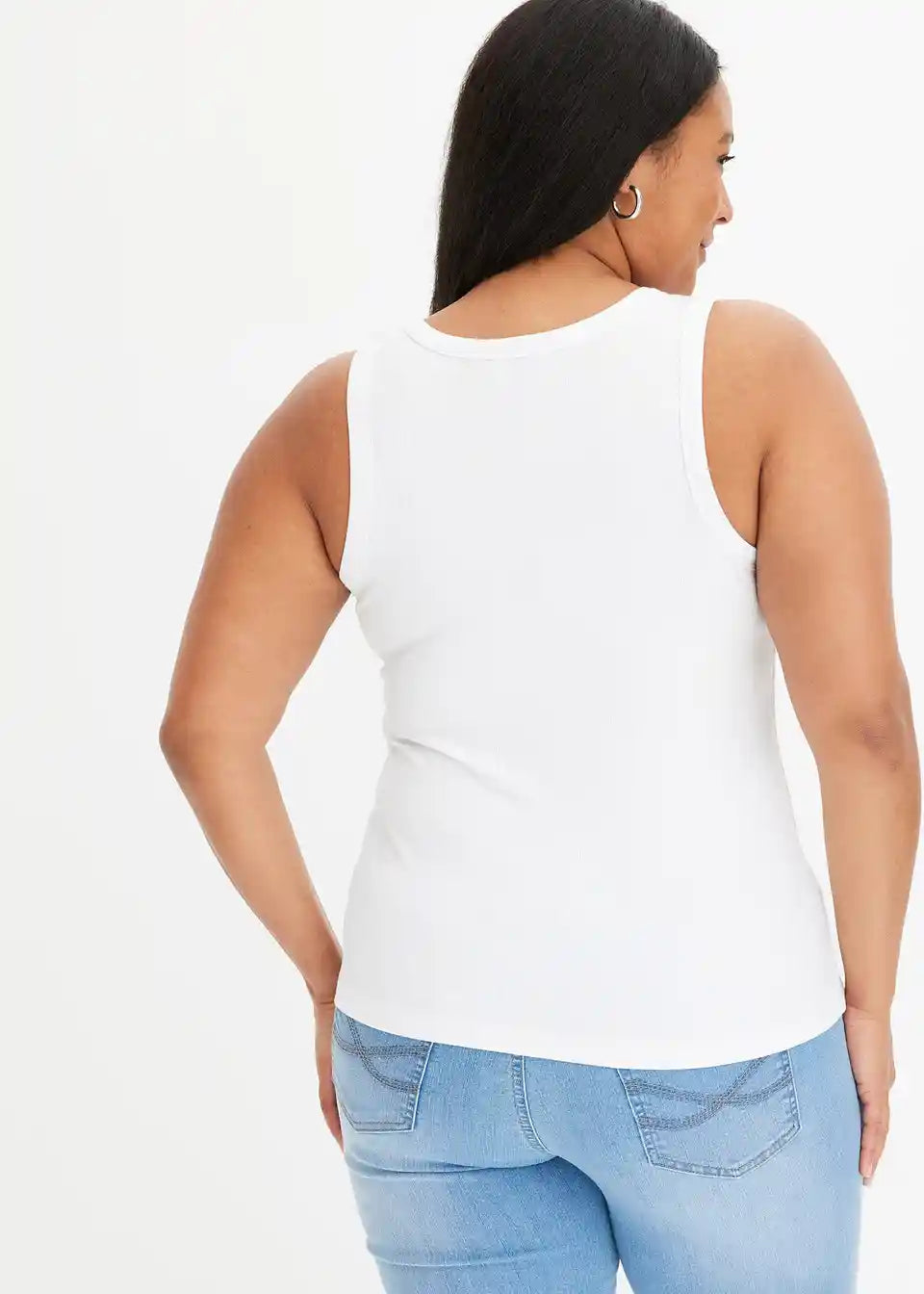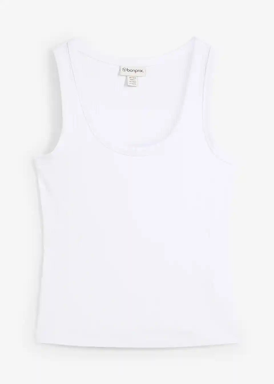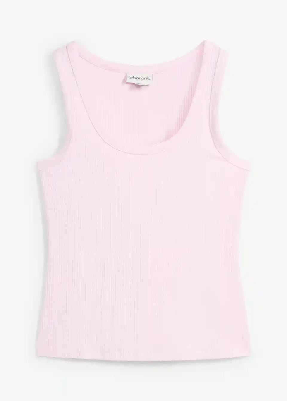 Fina majica na naramnice s širokimi rebrastimi črtami in globljim hrbtnim izrezom