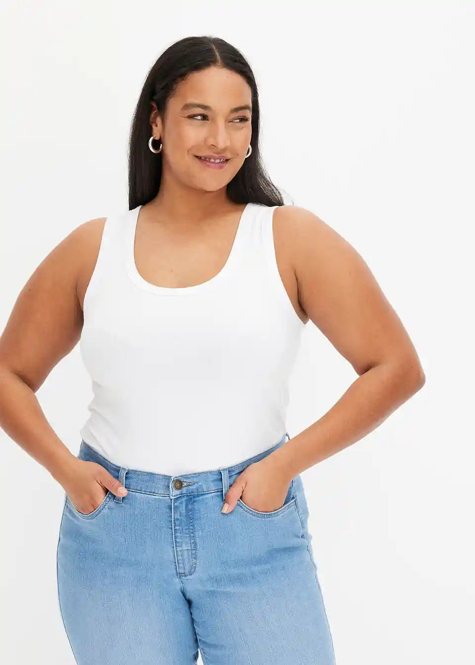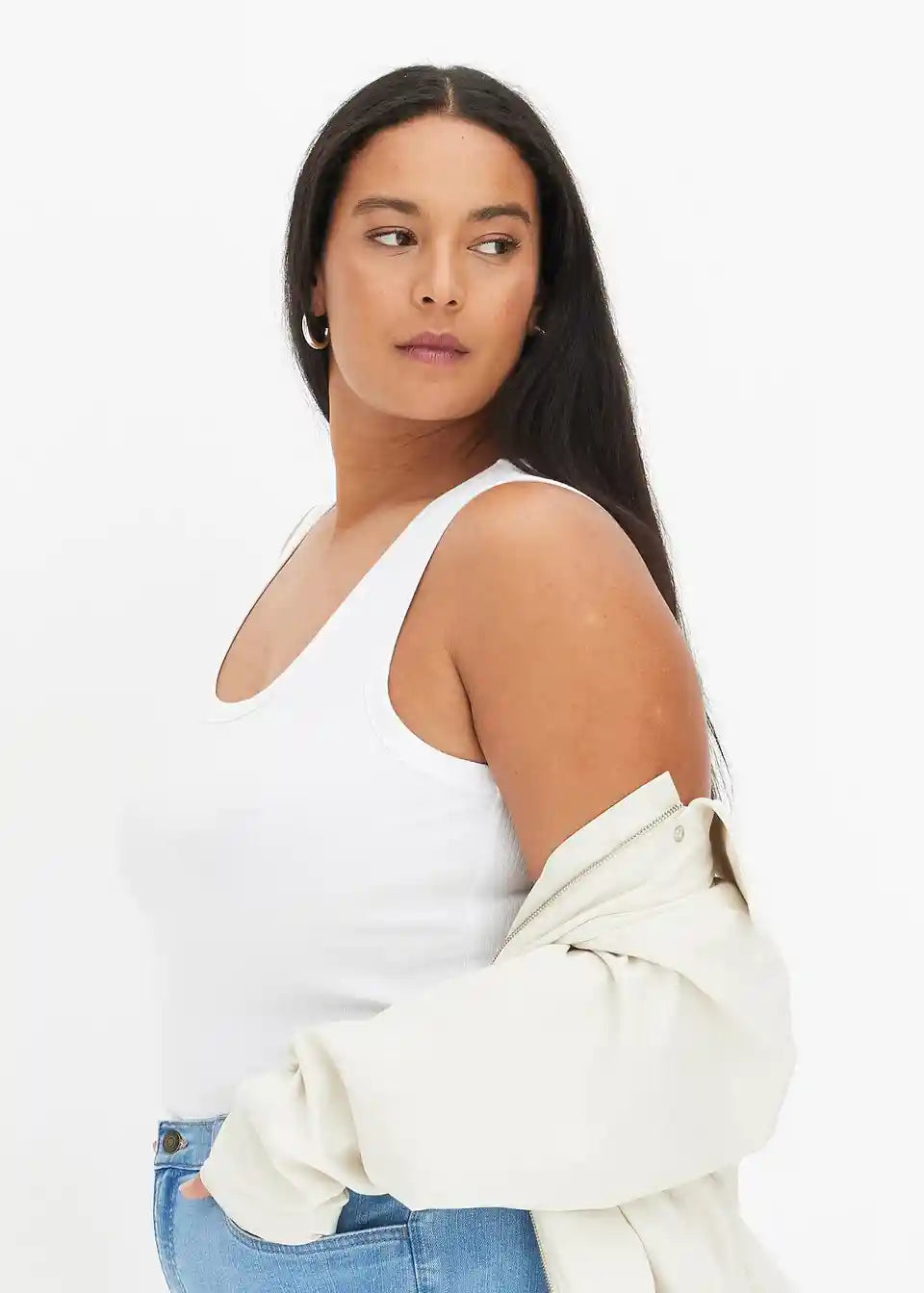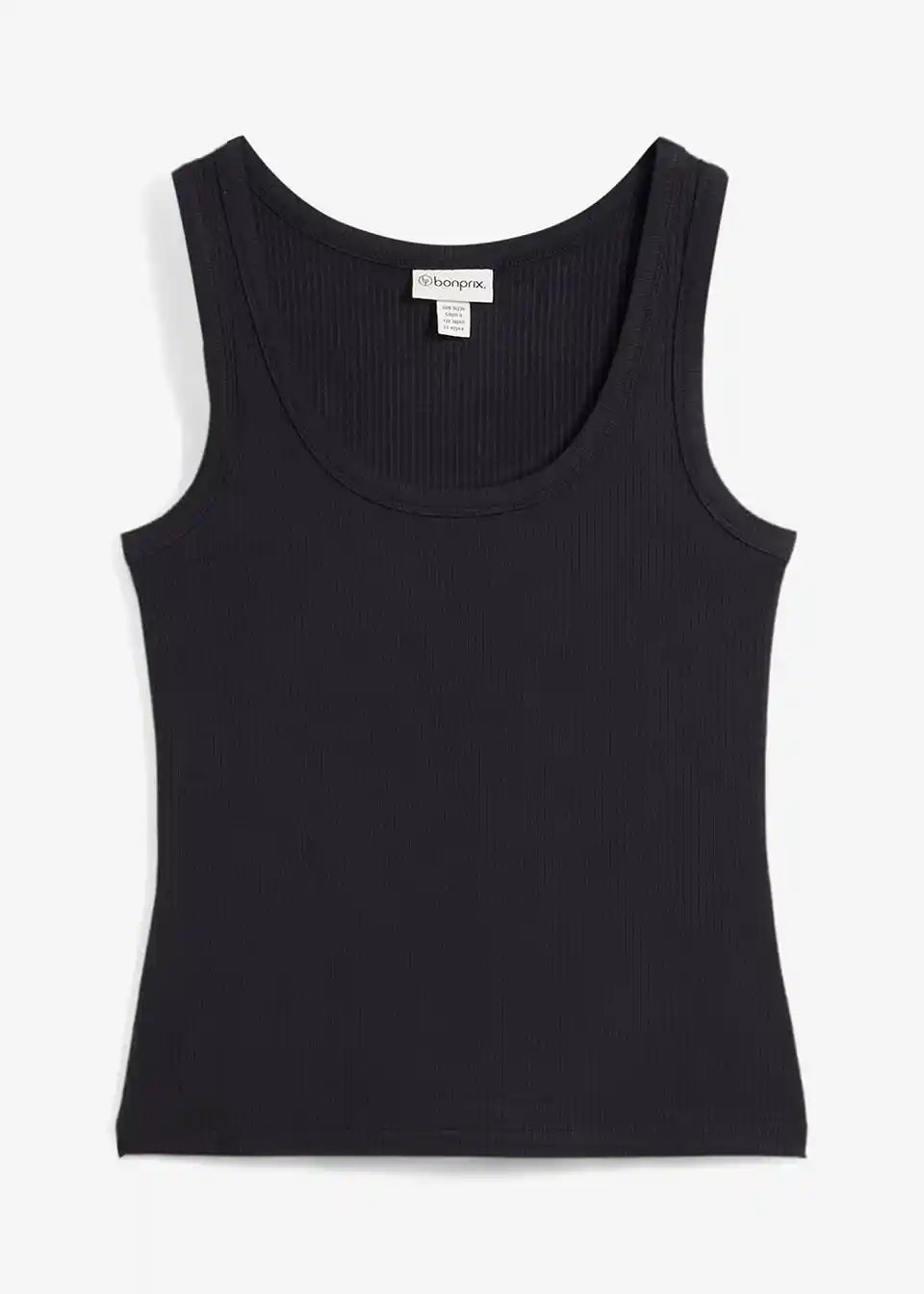 Fina majica na naramnice s širokimi rebrastimi črtami in globljim hrbtnim izrezom