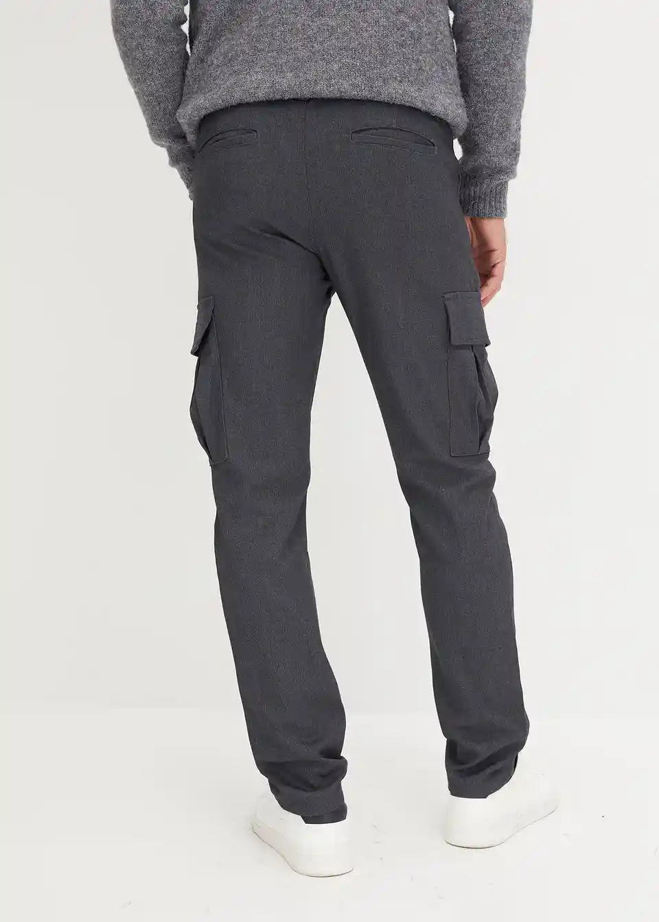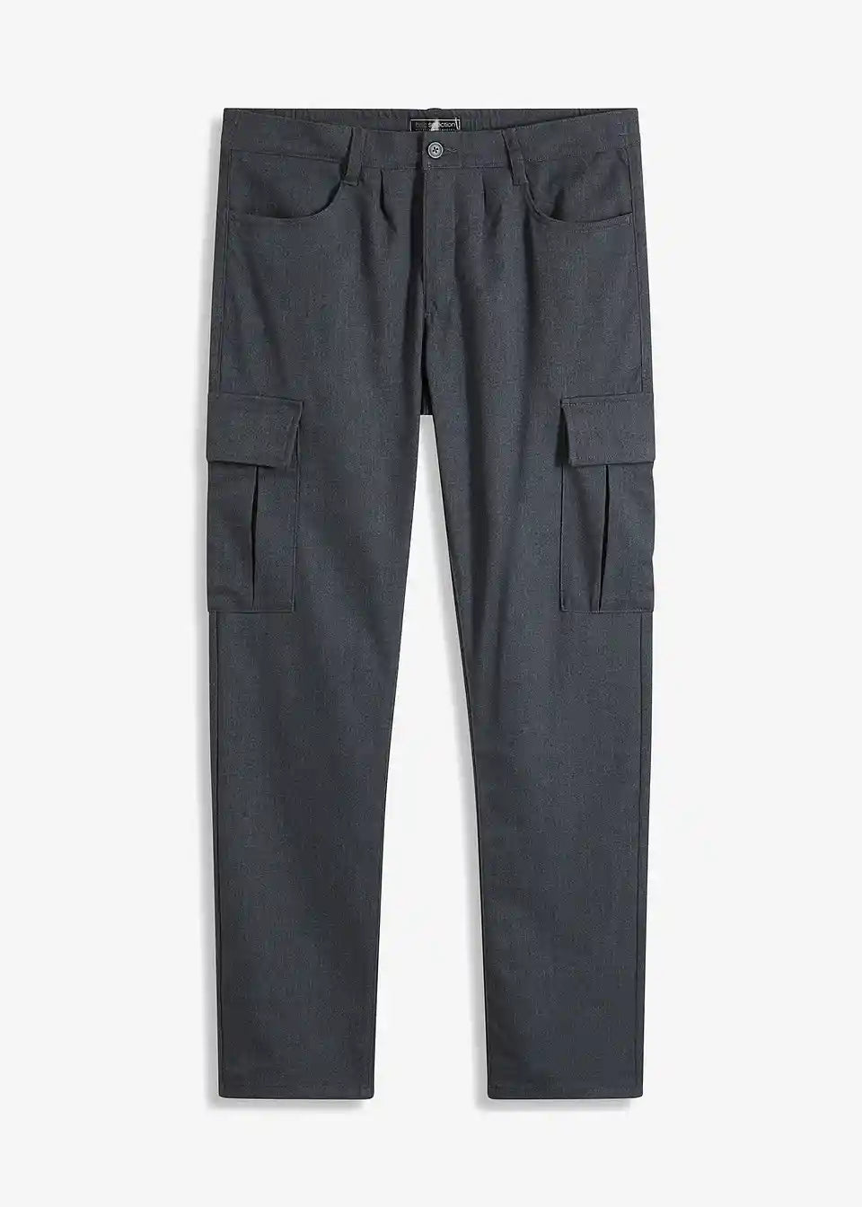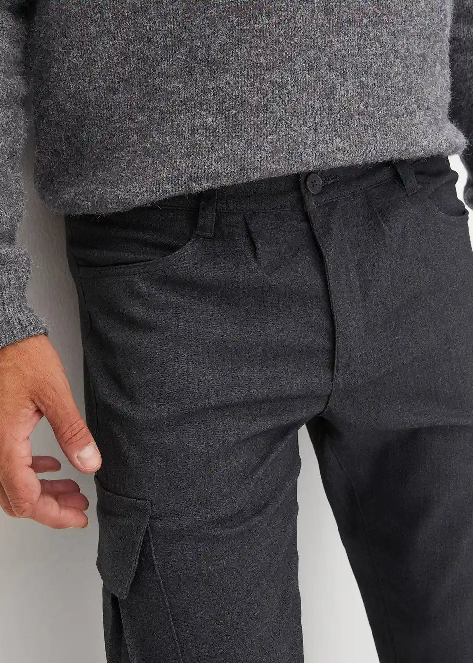 Klasične hlače iz flanele s cargo žepi in gubo v pasu v ravnem kroju