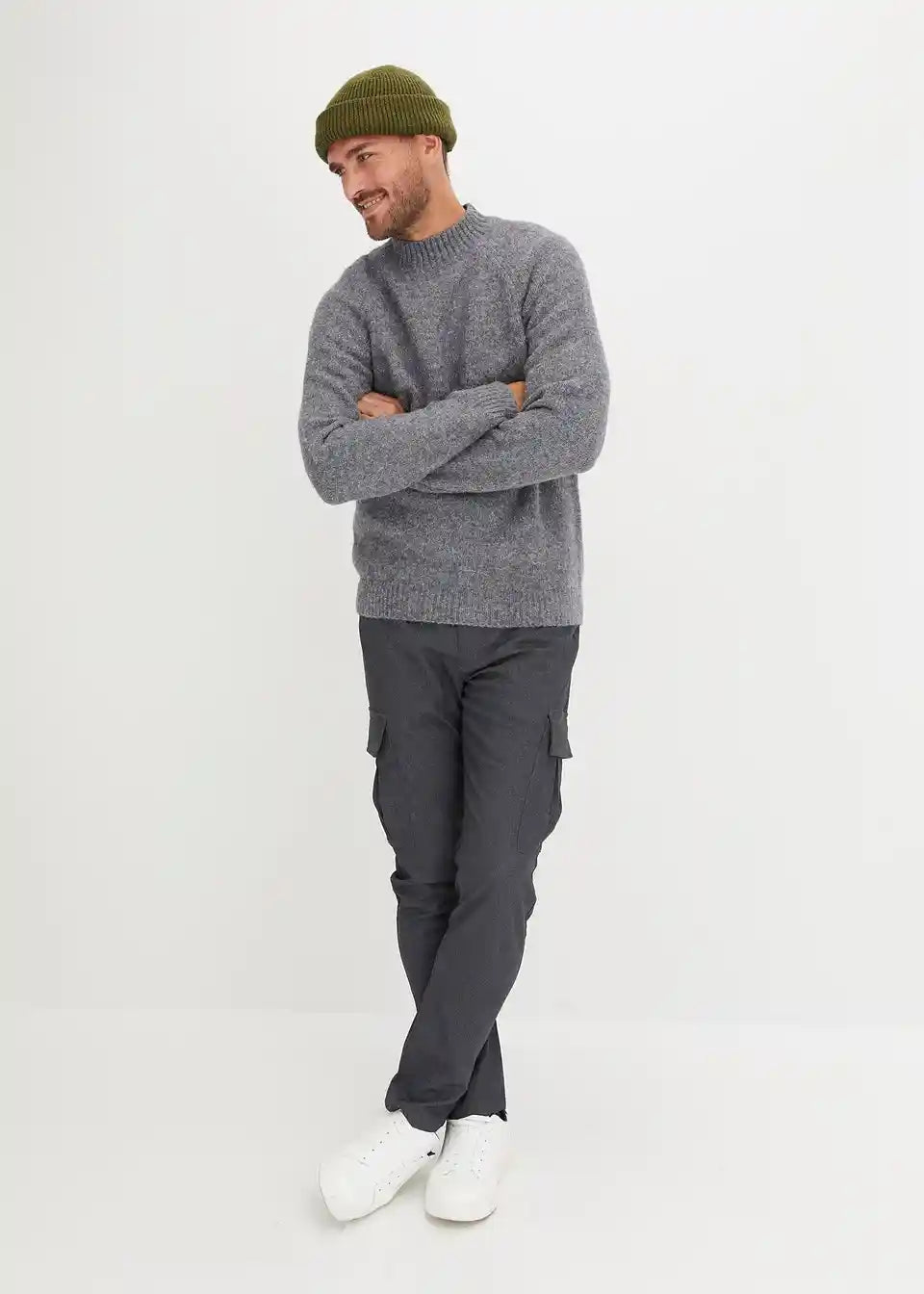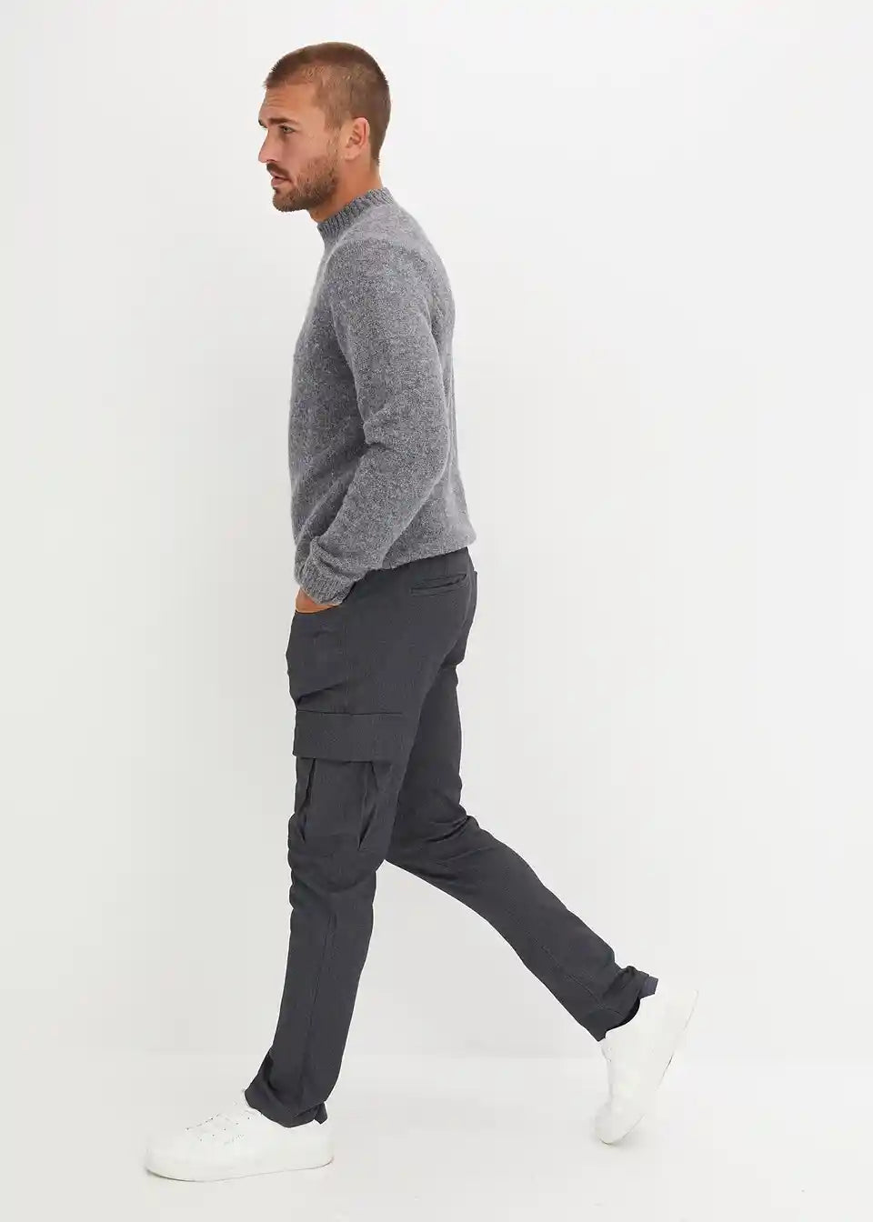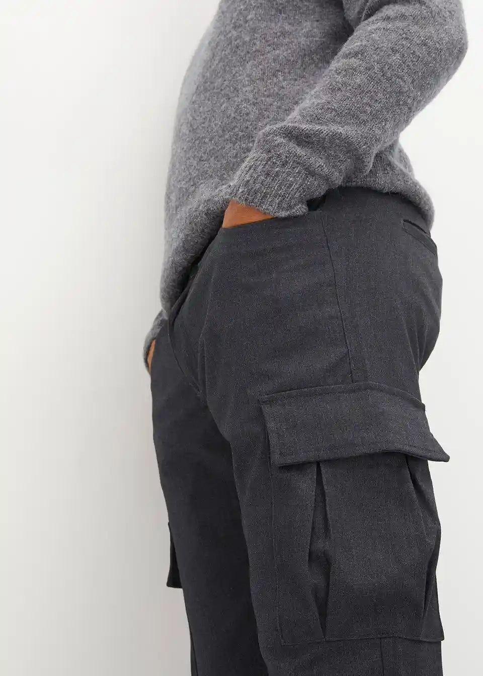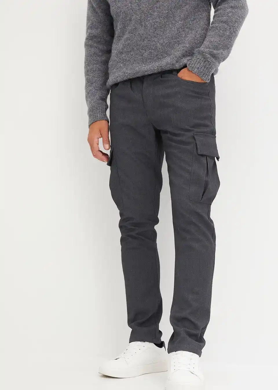 Klasične hlače iz flanele s cargo žepi in gubo v pasu v ravnem kroju