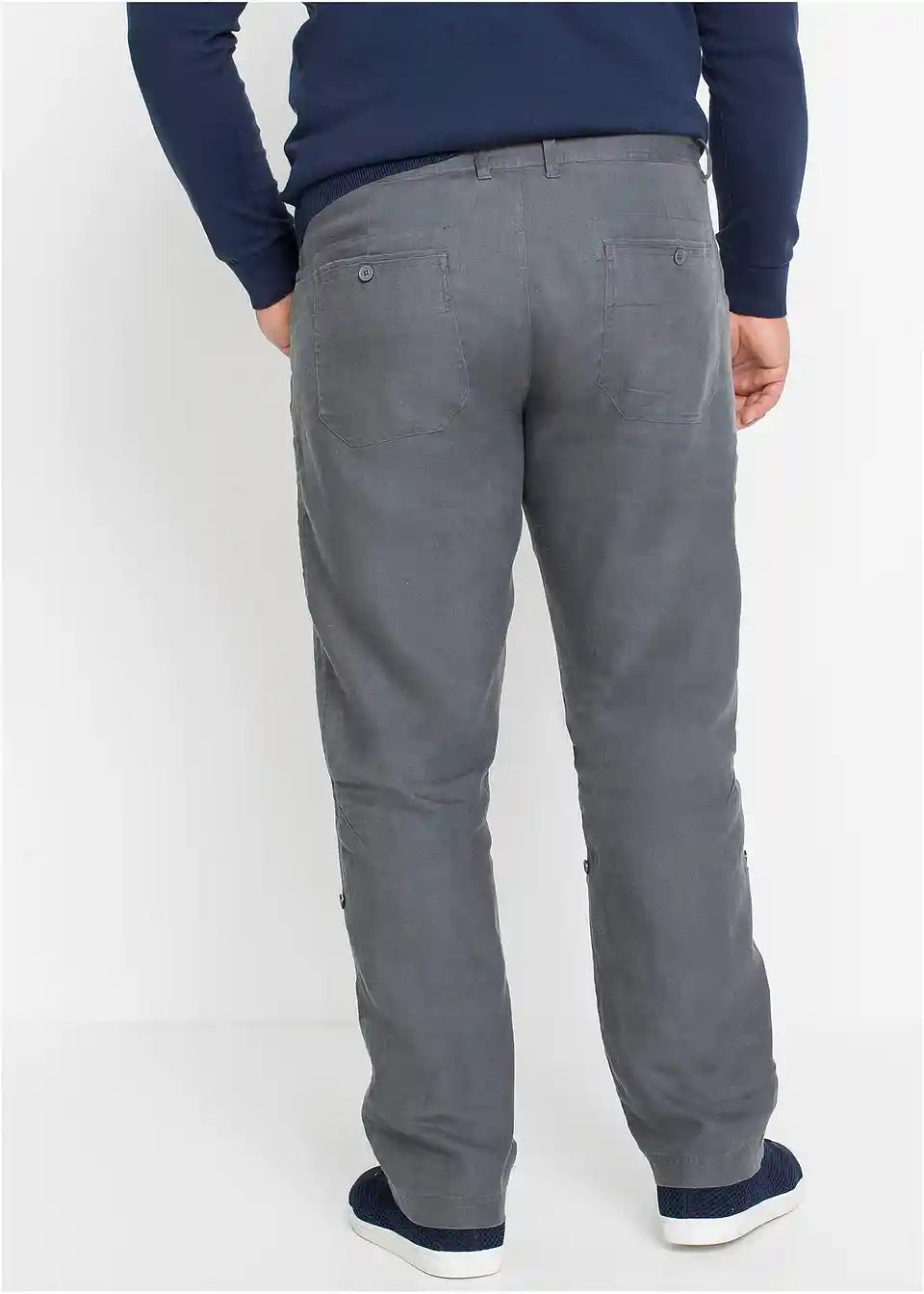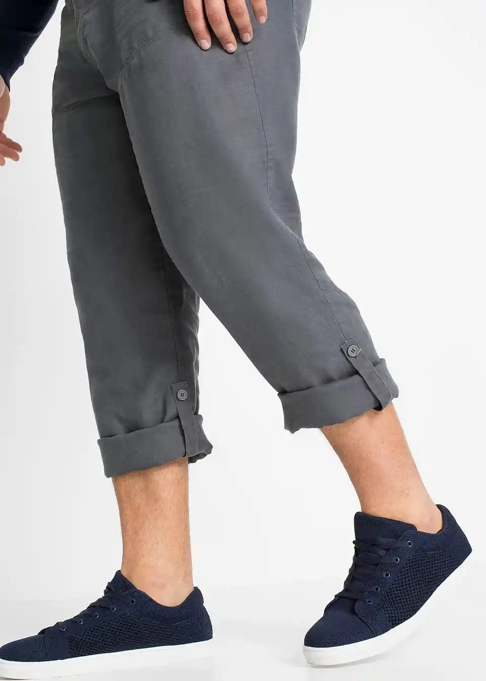 Zahvaljujoč skritim zankam na notranji strani te moške lanene hlače dobijo v trenutku novo podobo. Iz dolgega modela postanejo do kolen dolge hlače. Ravno krojene hlače znamke bpc selection navdušujejo s prijetno kakovostjo materiala in značilno strukturo tkanine za lan. Tako za sproščen videz s polo majico in sandali kot tudi za nekoliko bolj eleganten izgled s čevlji, srajco in suknjičem: Lanene hlače so osnovni kos za sodobnega moškega.