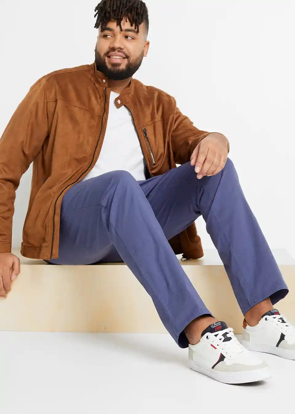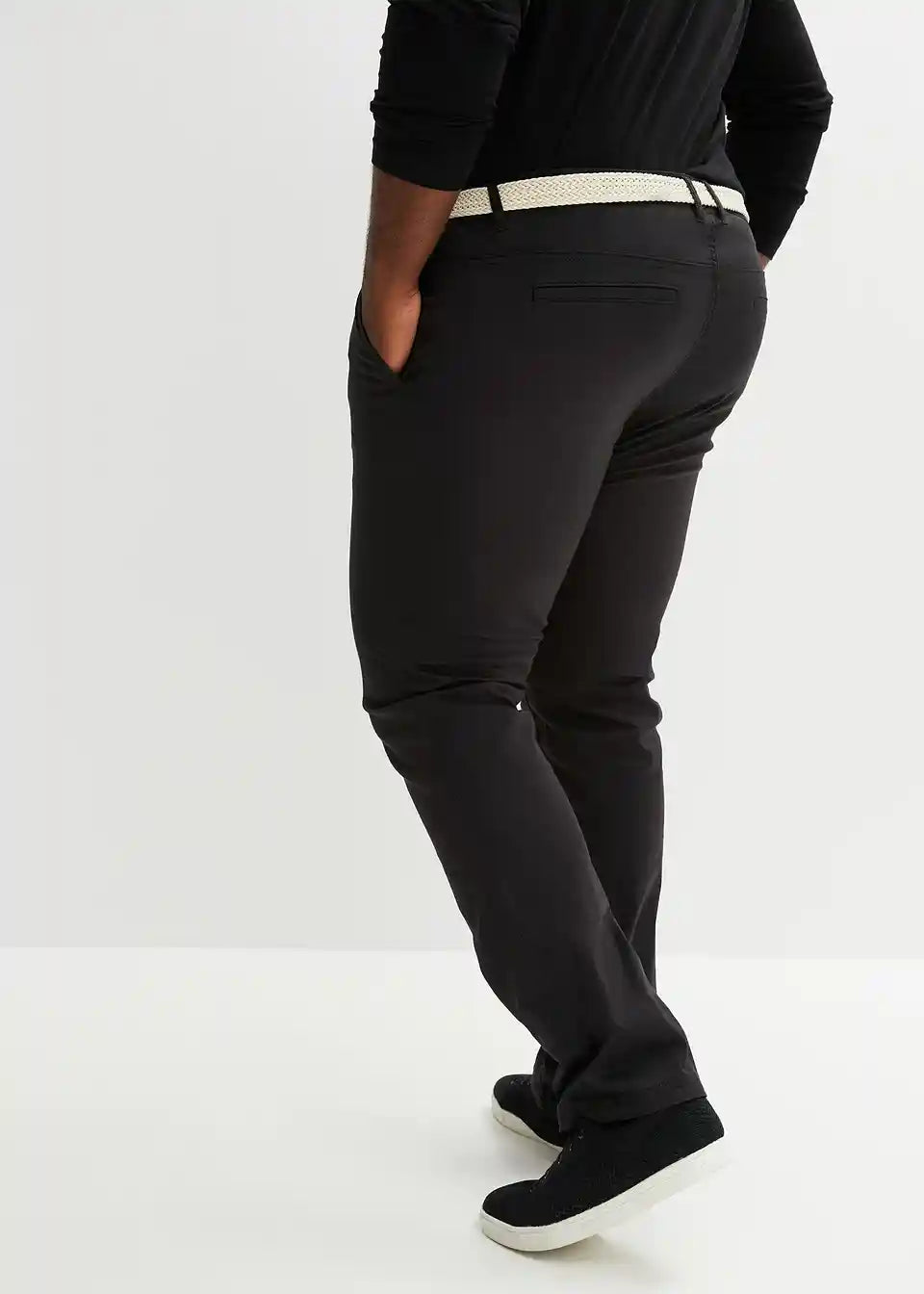 Klasične stretch chino hlače v udobnem kroju v ravnem kroju s pasom