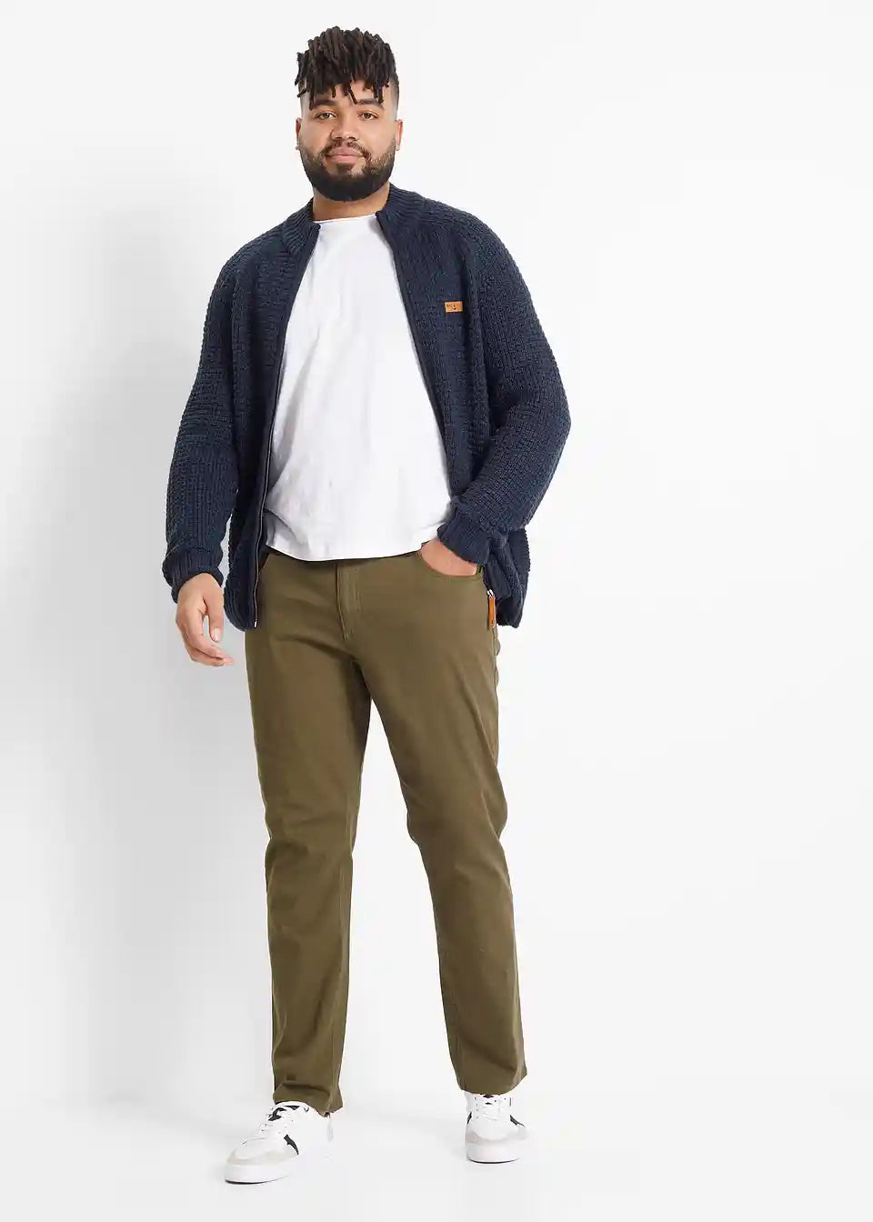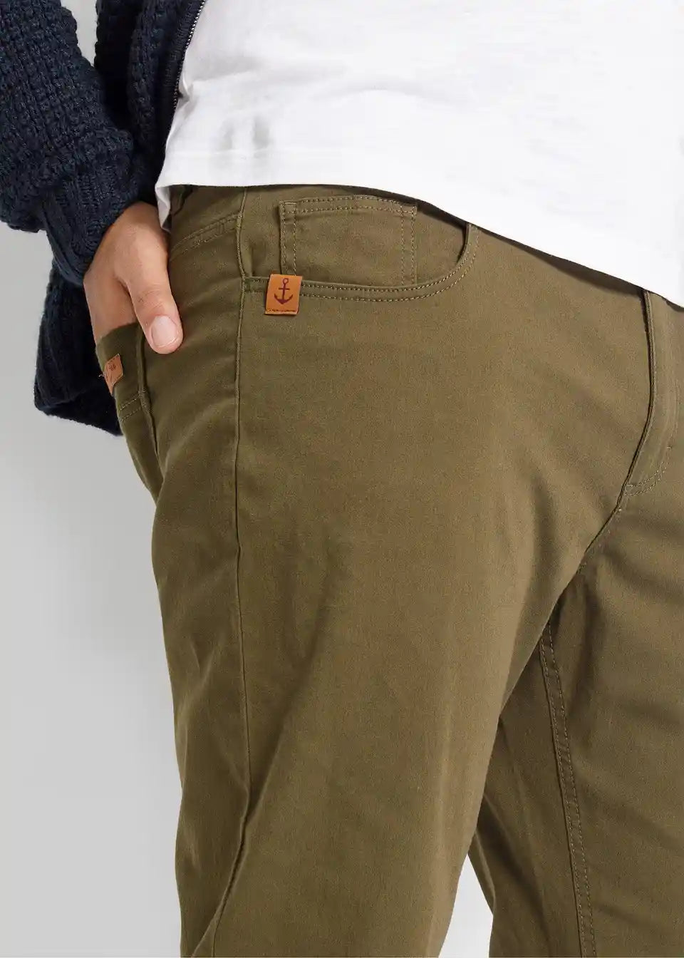 Stretch-hlače s čudovitimi PU-podrobnostmi, pralne v pralnem stroju