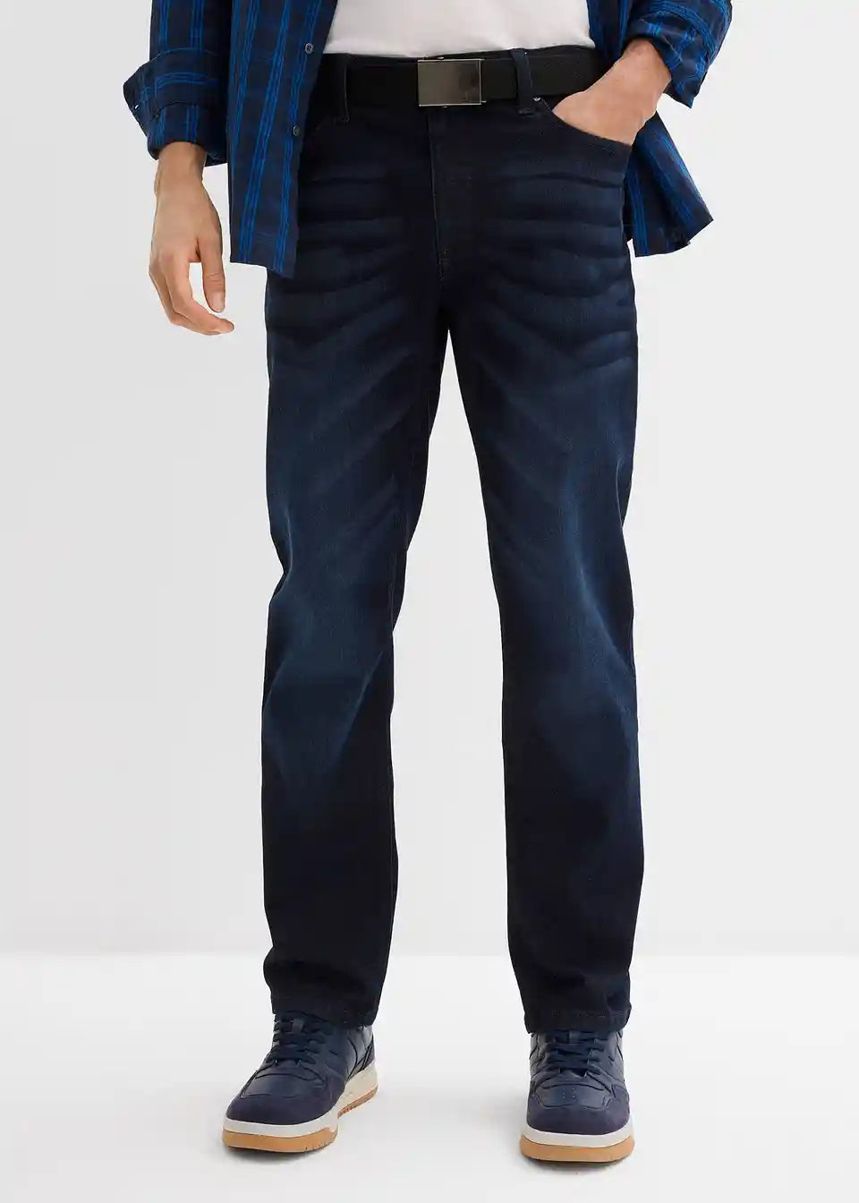 Klasične stretch kavbojke s pasom v ravnem kroju