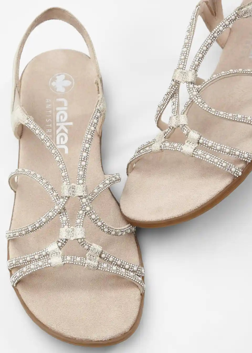 Svetleči Rieker sandali z biseri in bleščicami
