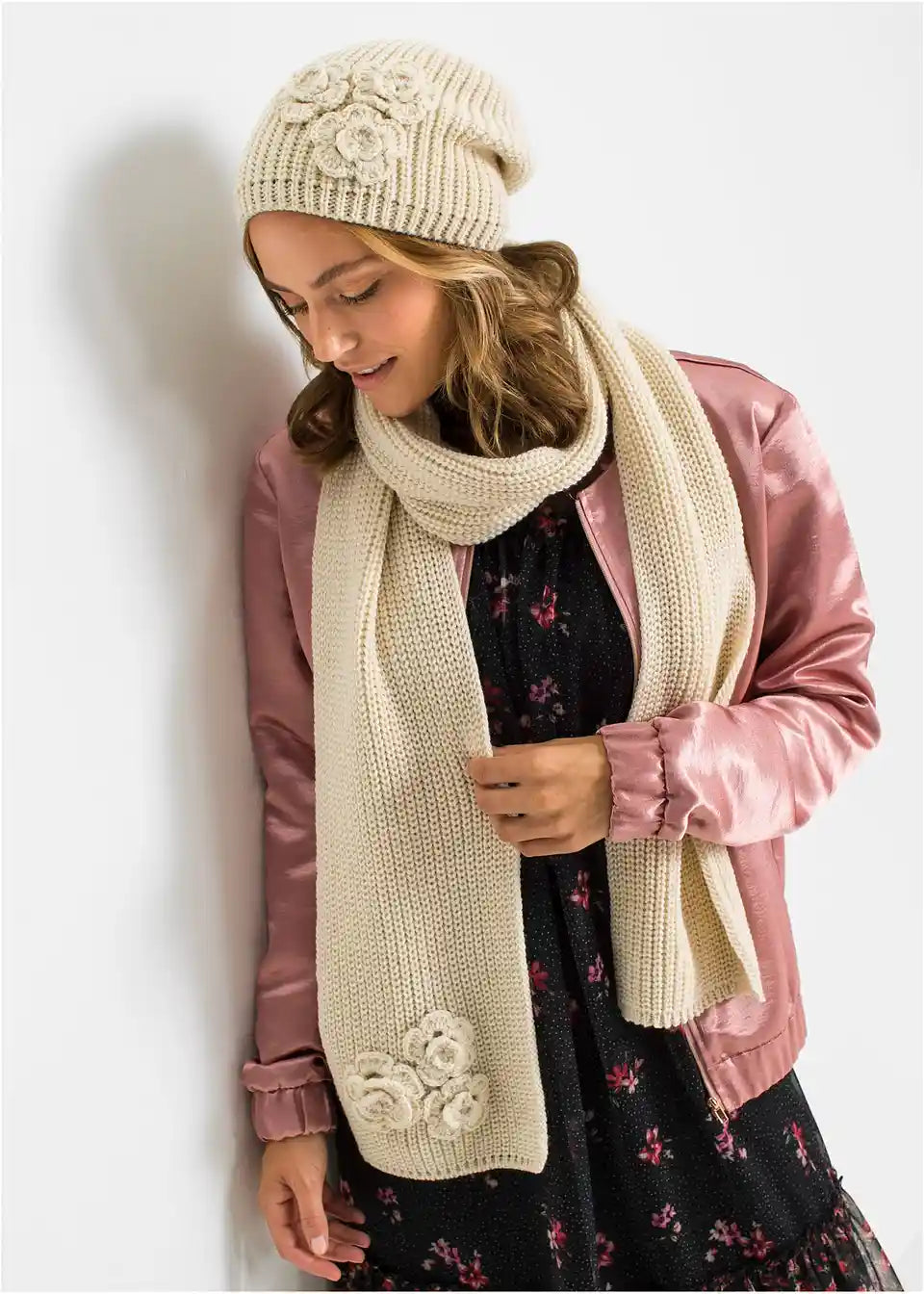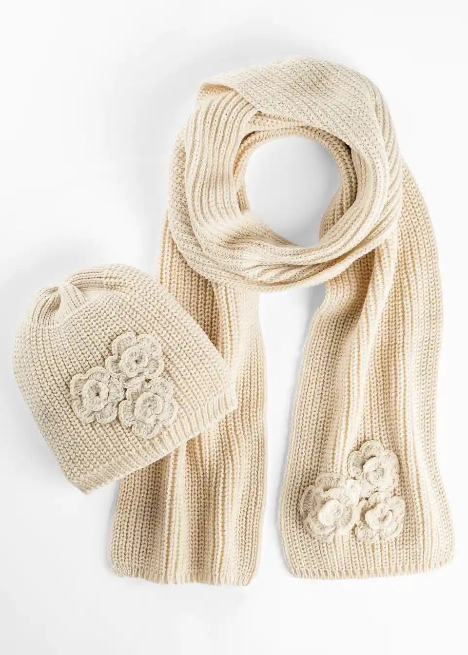 Ljubek pleten komplet (2-delni set) z aplikacijami rož