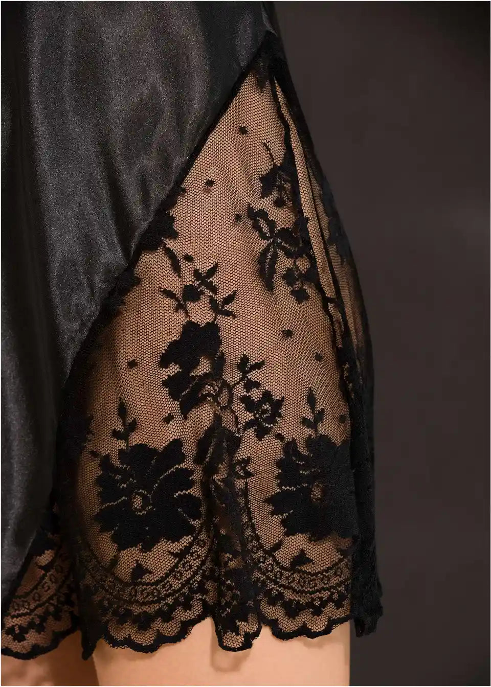 Ta očarljivo lep negliže vas očara z vezenjem cvetličnih motivov, ki so vstavljeni na območju prsi in stranskih delov, ter zaradi svoje prosojnosti zapeljivo razkriva silhueto. Svilnati material nežno obdaja vaše obline s svojim mehkim padcem in zagotavlja visok udobje pri nošenju.