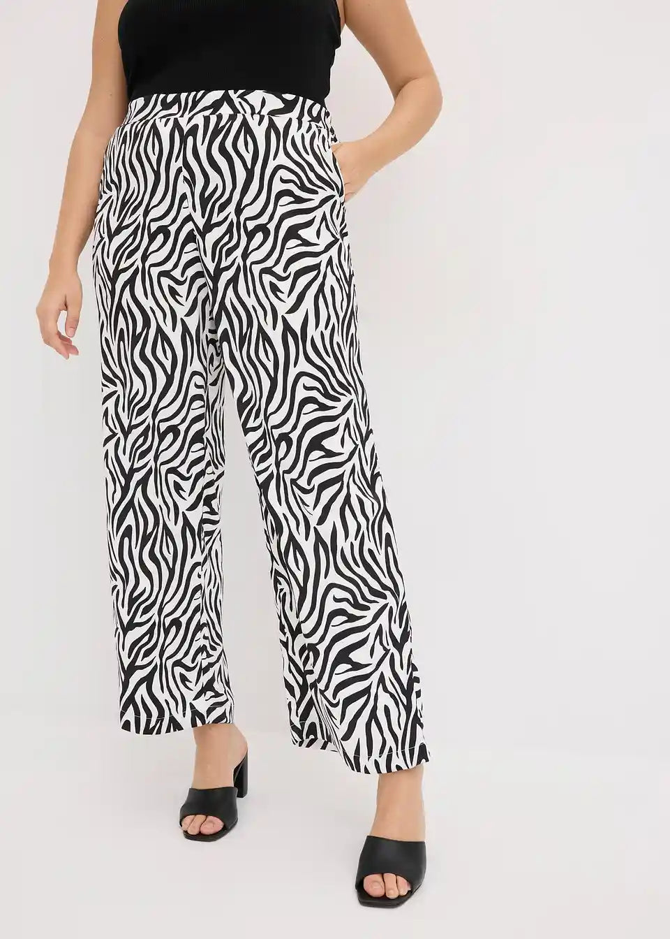 široko krojene palazzo hlače z modnim živalskim potiskom.