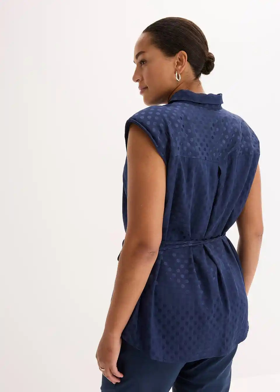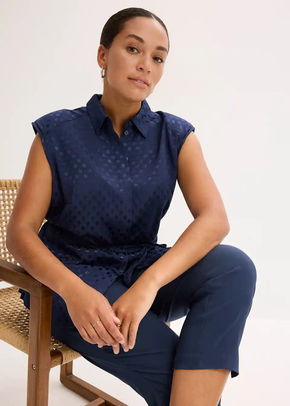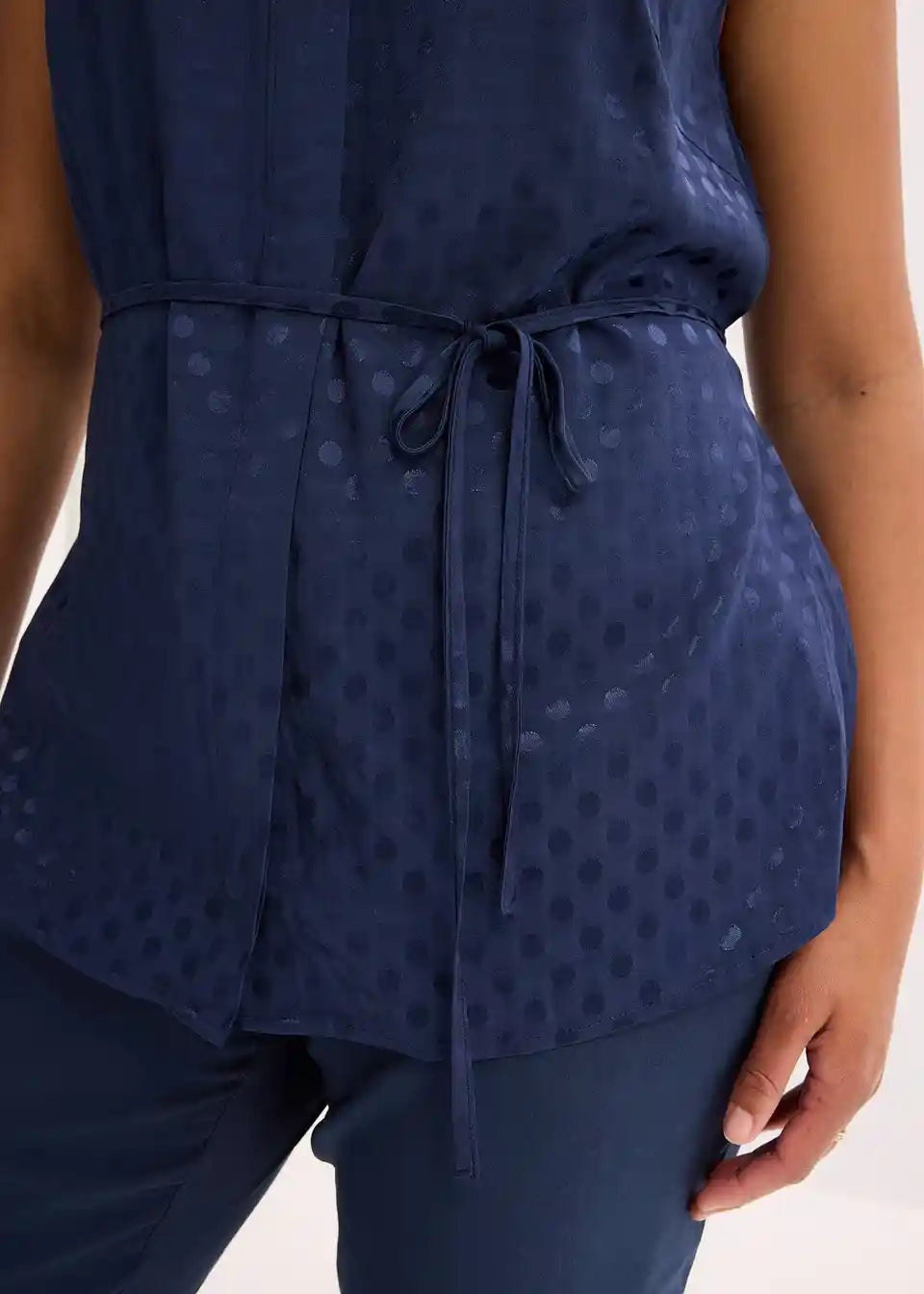 elegantna satenasta bluza z nežnim ovratnikom in vezalko