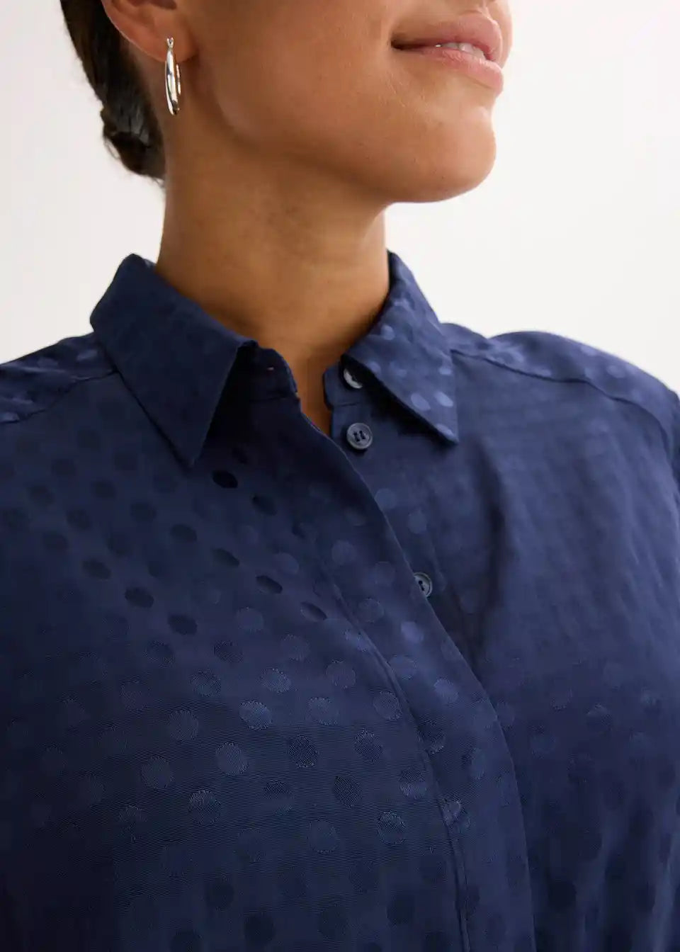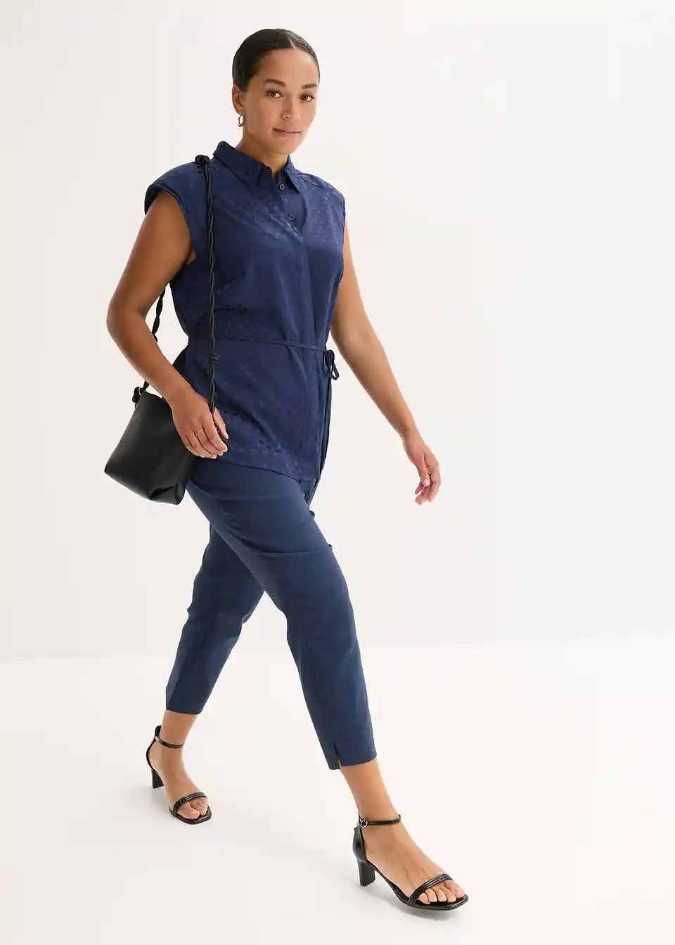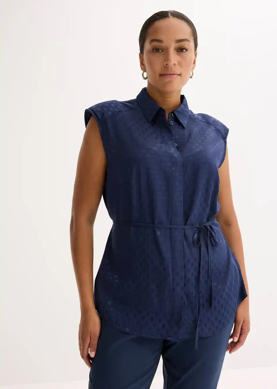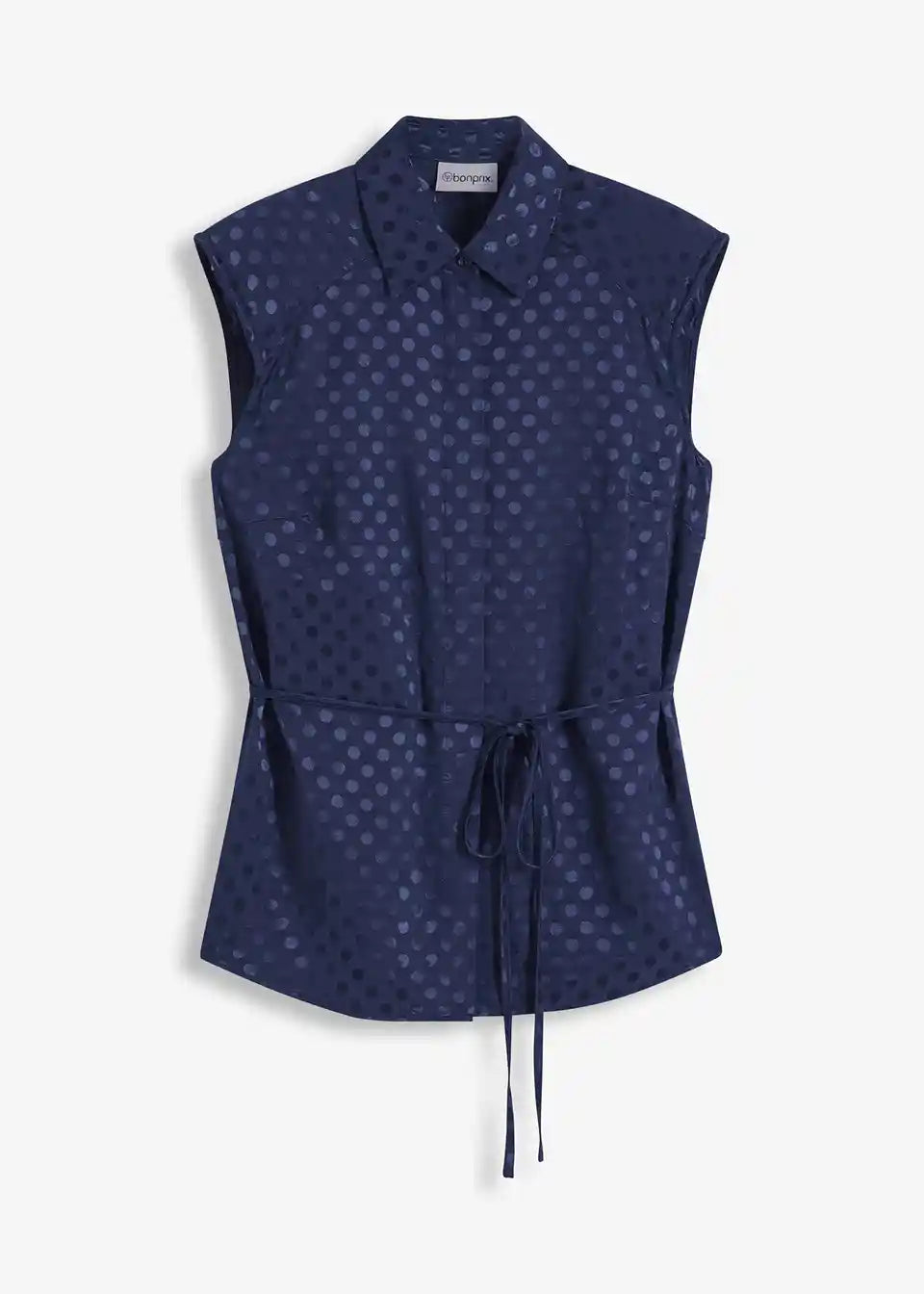 elegantna satenasta bluza z nežnim ovratnikom in vezalko