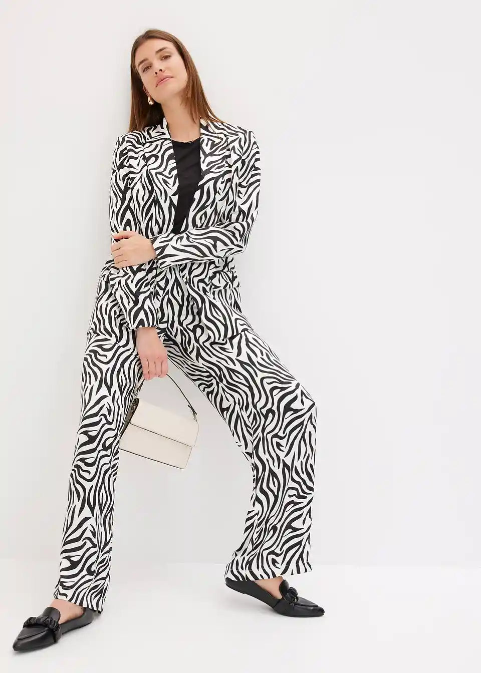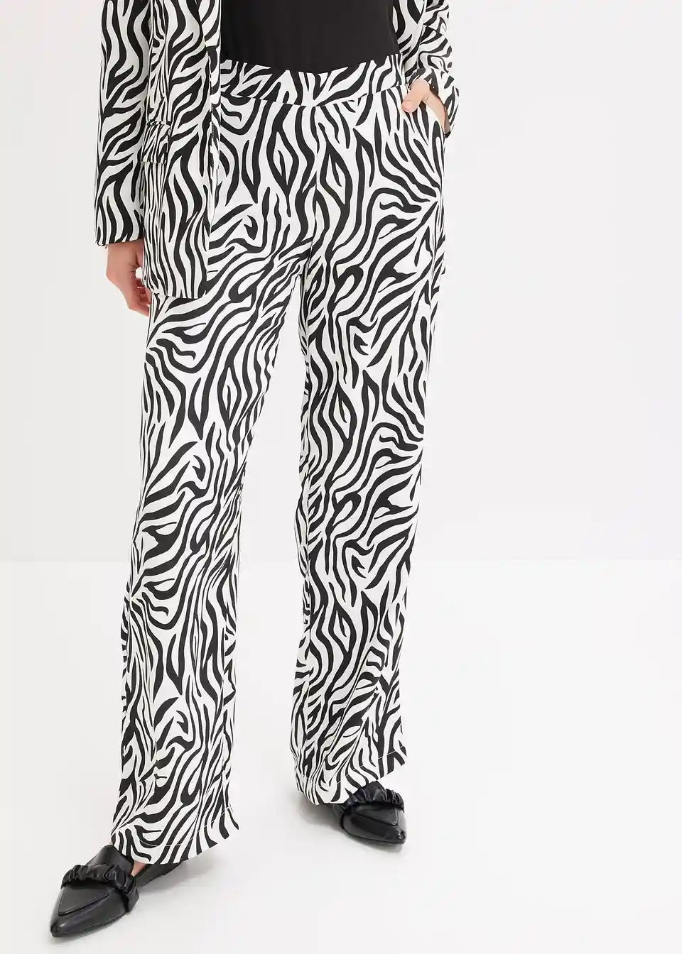 široko krojene Palazzo hlače z modnim živalskim potiskom.
