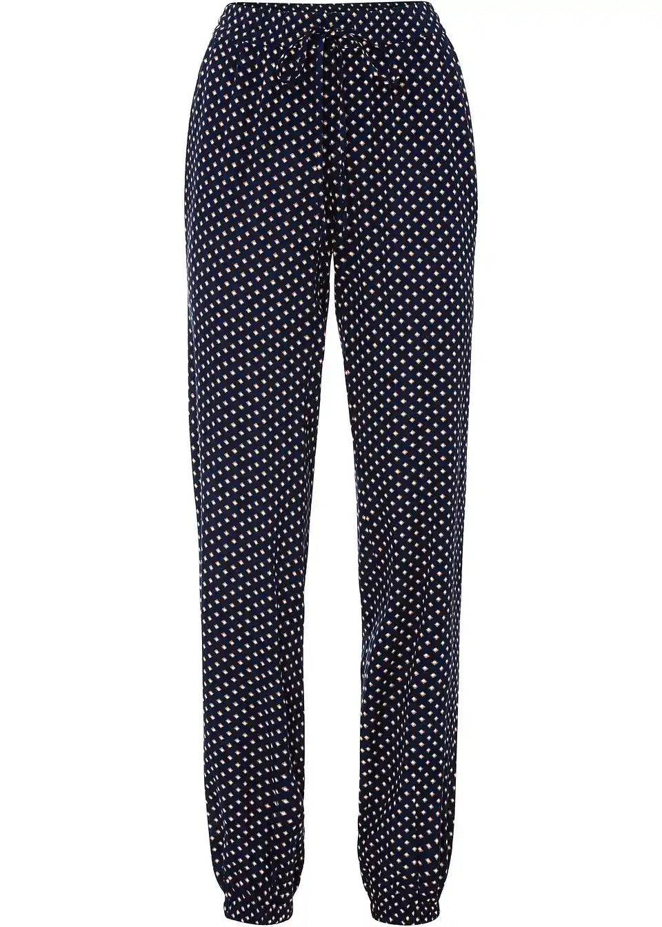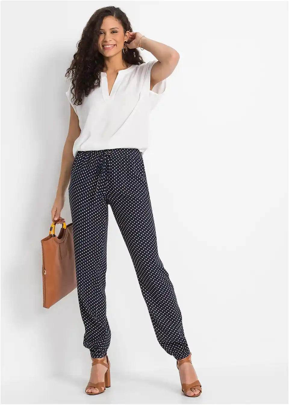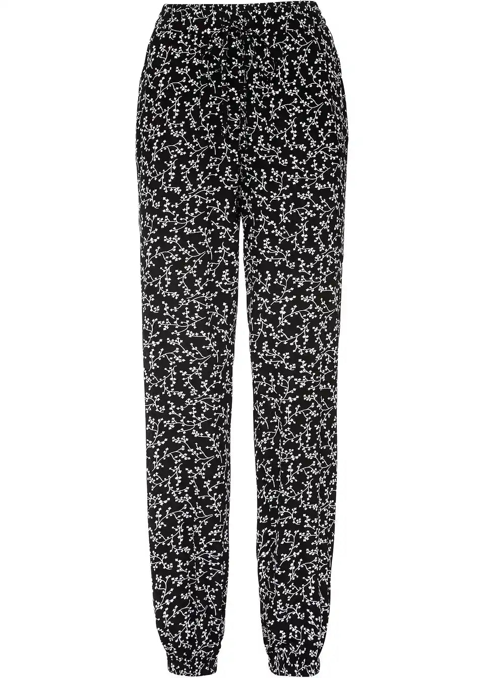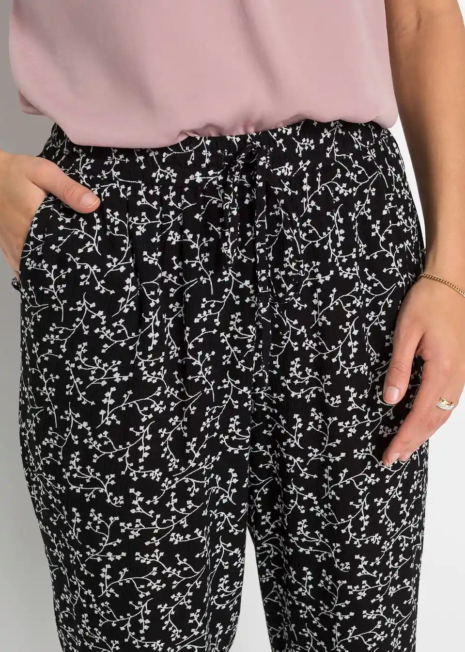 Moderne hlače znamke BODYFLIRT. Hlače z elastičnim pasom in elastiko na robu so opremljene z vezalko in žepi. Dolžina notranje hlačnice pri st. 38 je približno 81,5 cm.