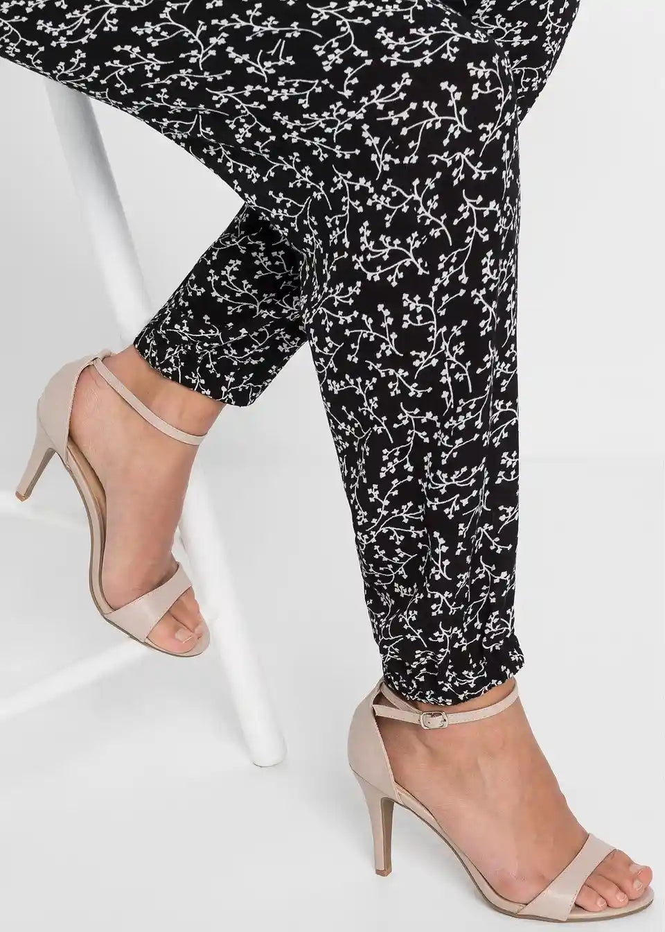 Posebnosti kroja:z elastičnimi všitki za večjo svobodo pri gibanju, z vpeljano elastiko v pasu z naborki, za udobje na stegnih