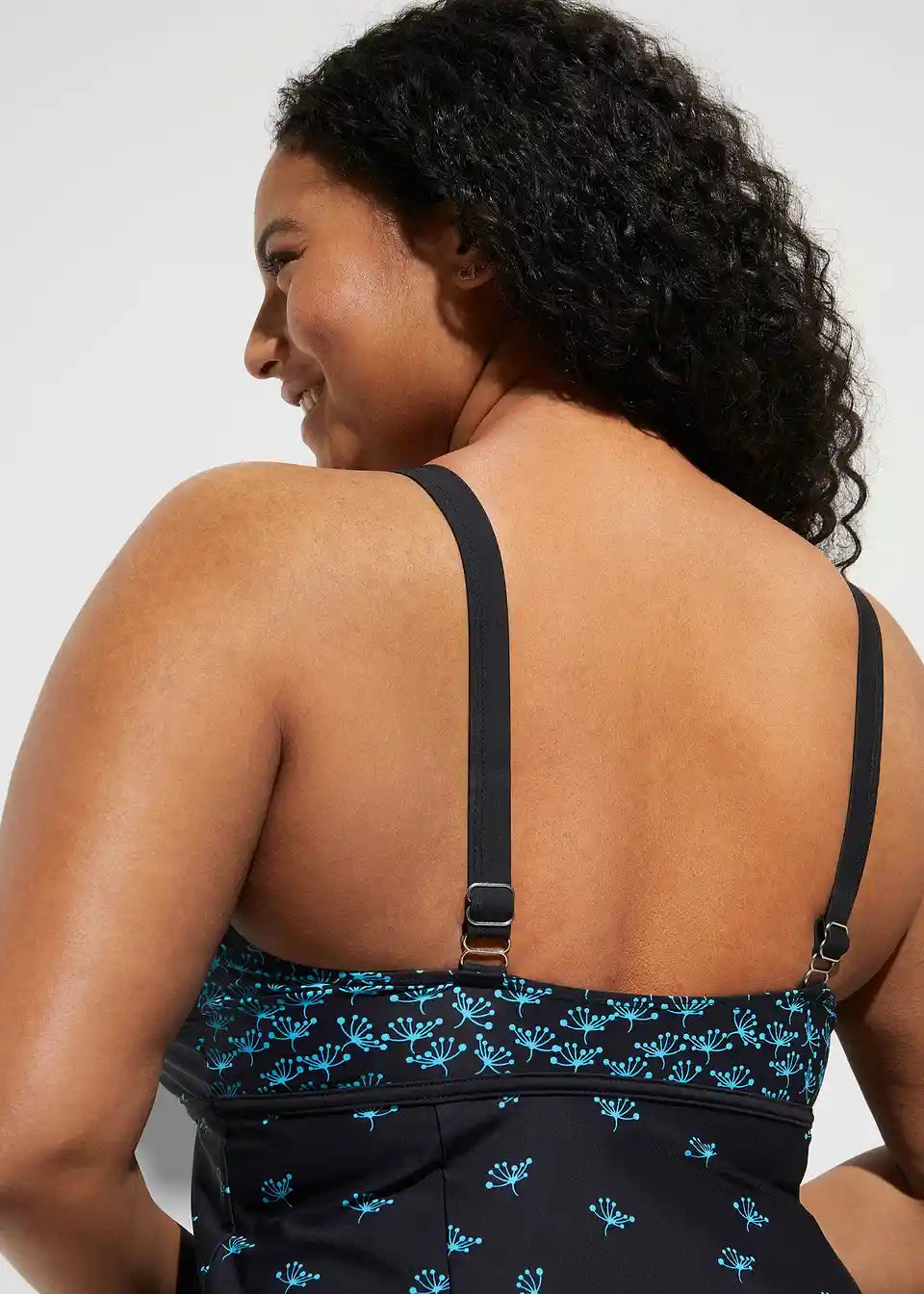 Detajli:s podlogo na prsih, oblikovalno podlogo, podprsno elastiko, nastavljivo širino in integriranimi kopalkami